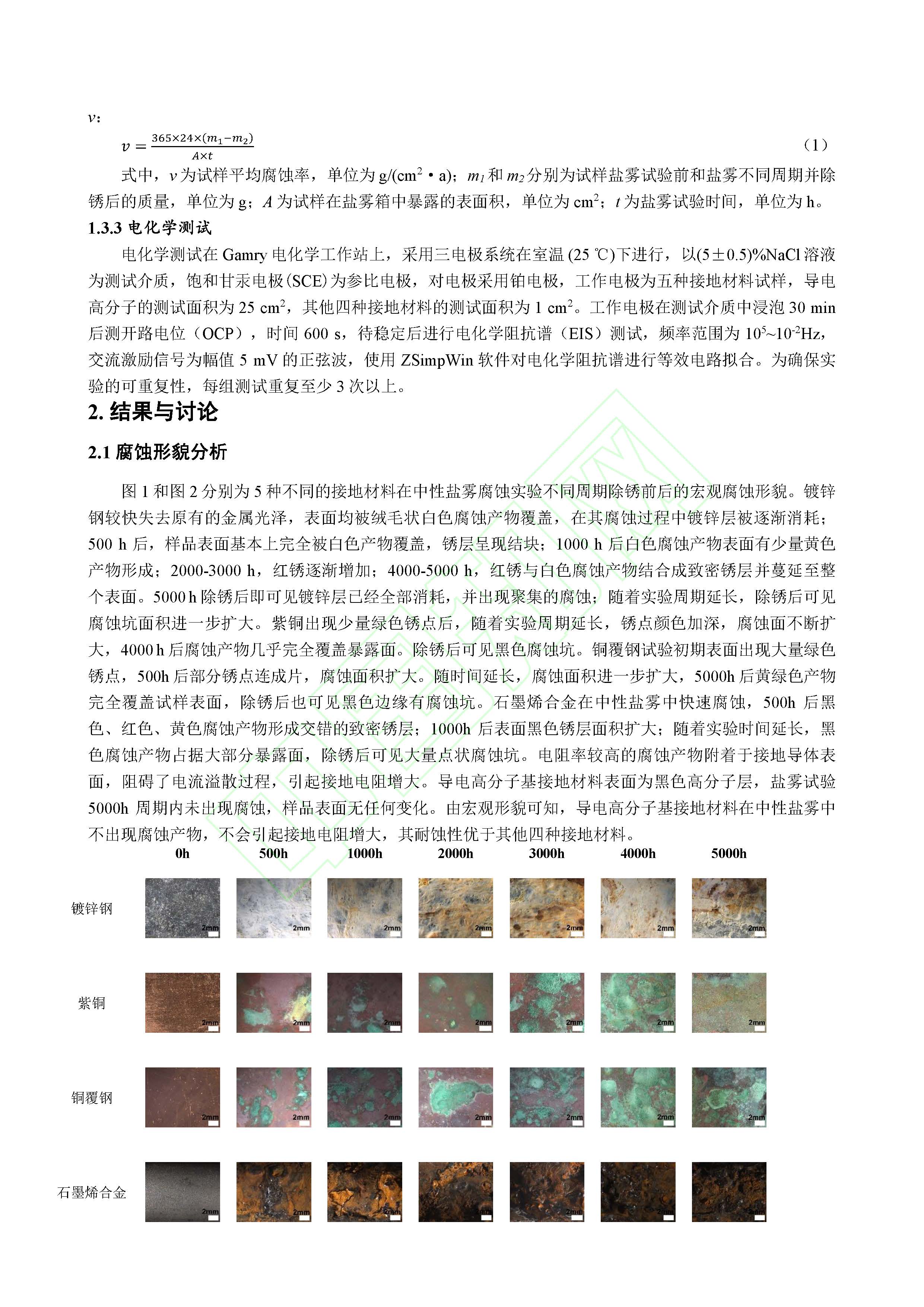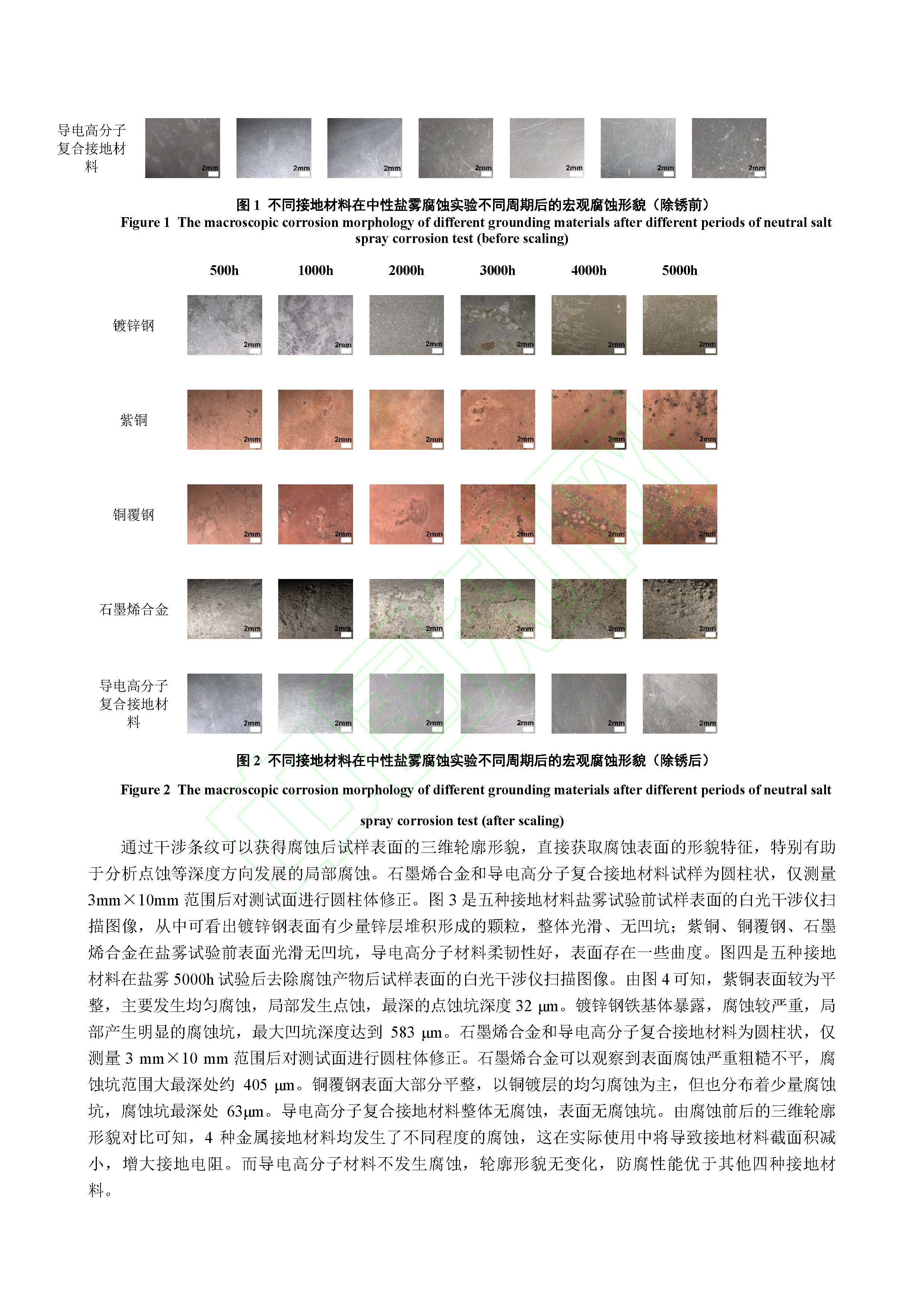 五种接地材料在中性盐雾环境中的长期腐蚀行为研究