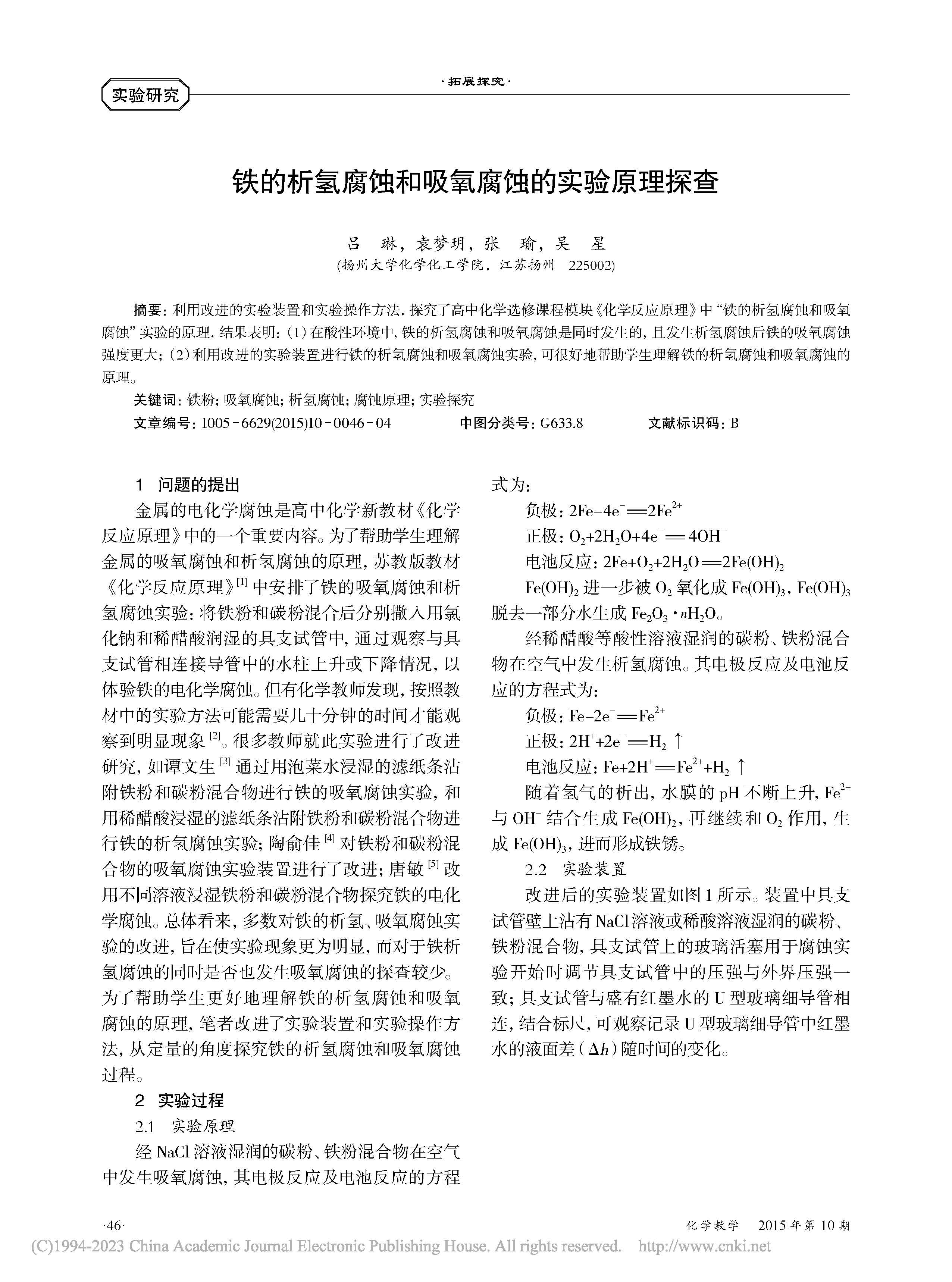 铁的析氢腐蚀和吸氧腐蚀的实验原理探查