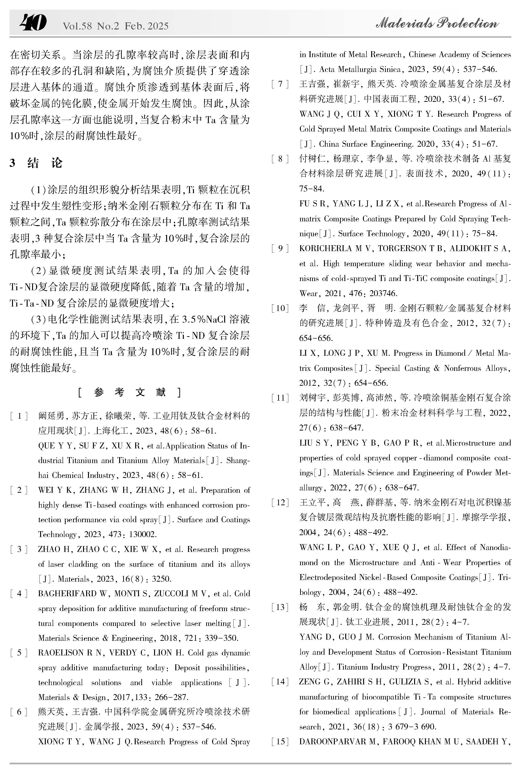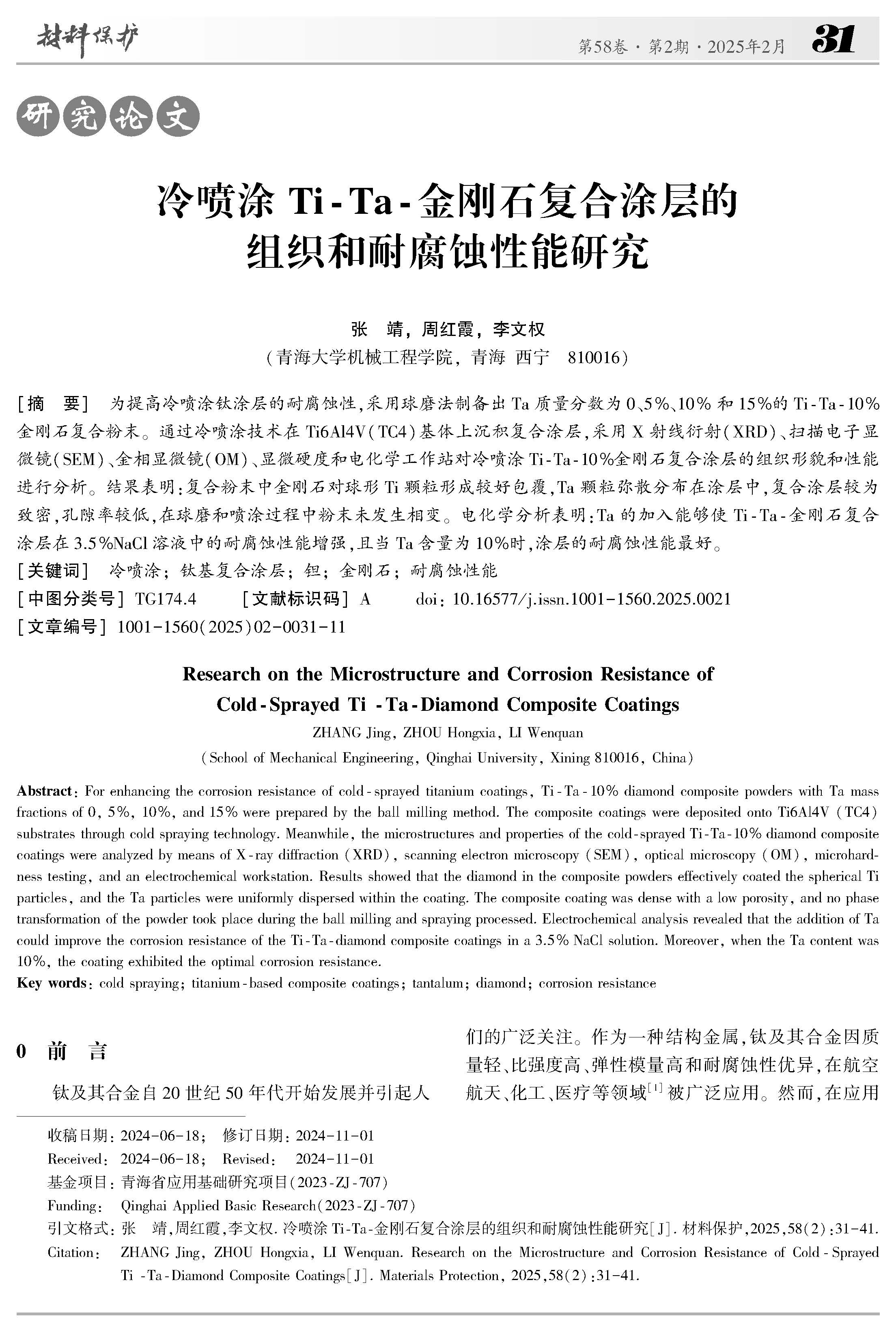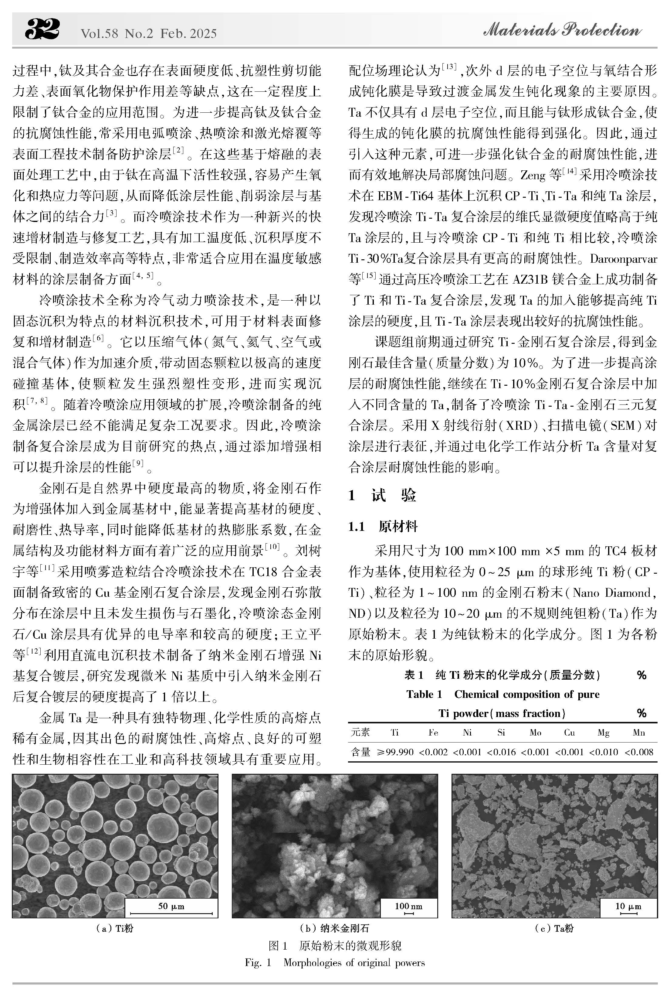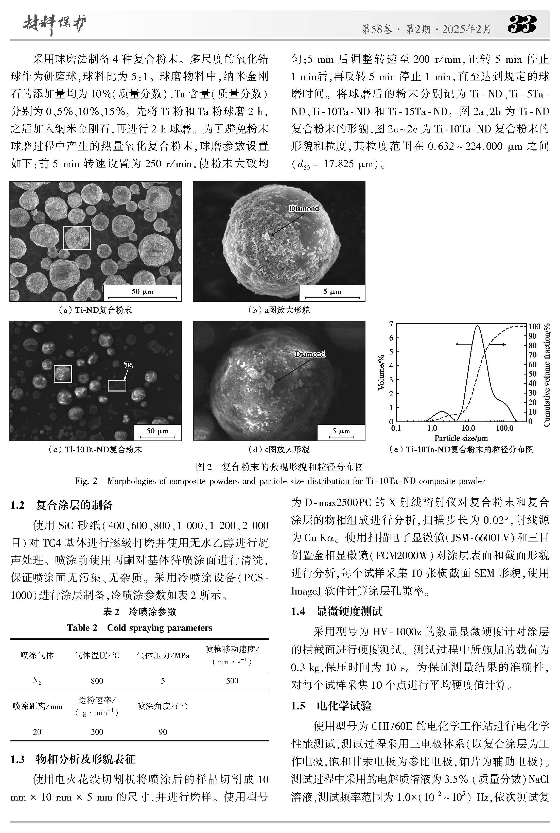 冷喷涂Ti-Ta-金刚石复合涂层的组织和耐腐蚀性能研究