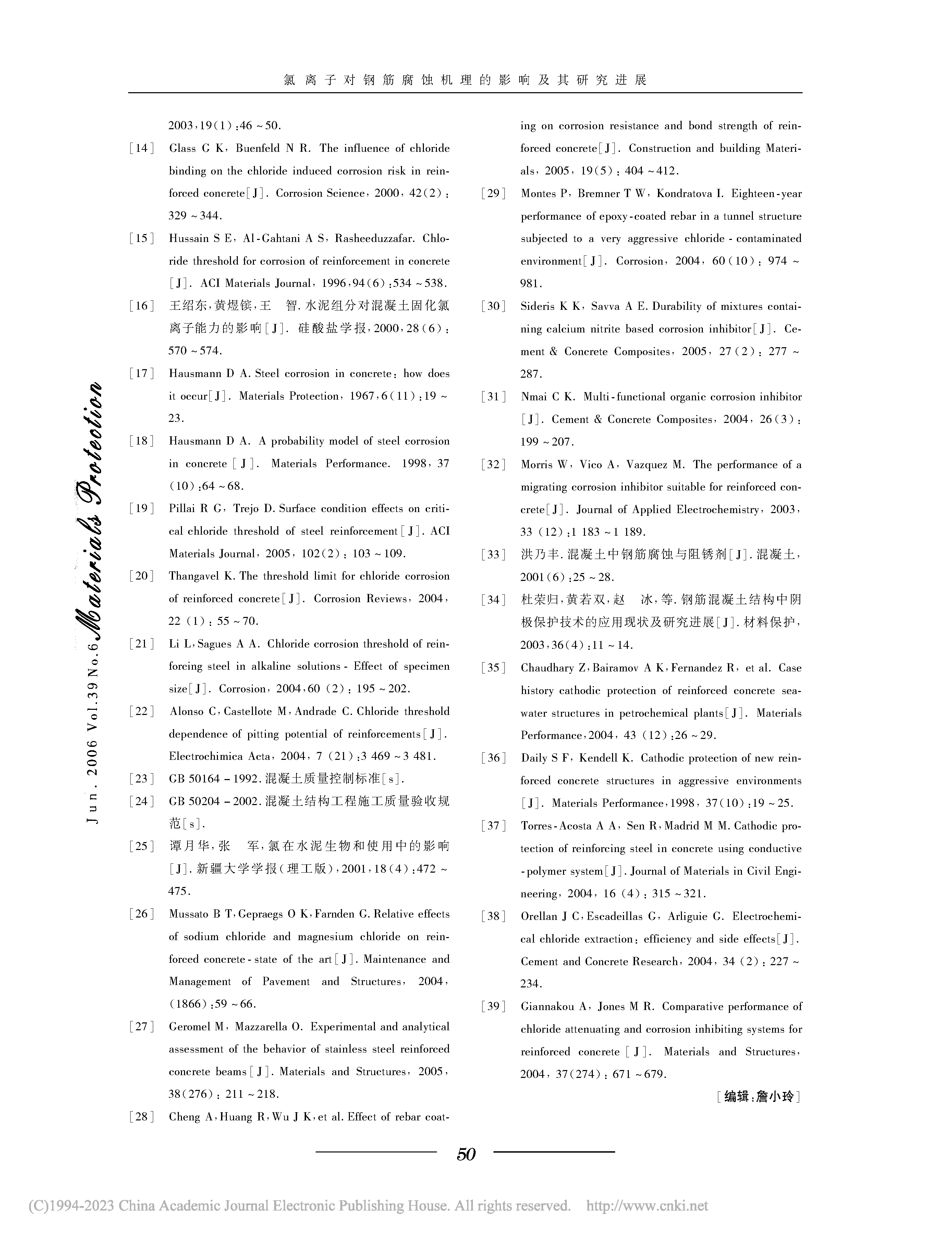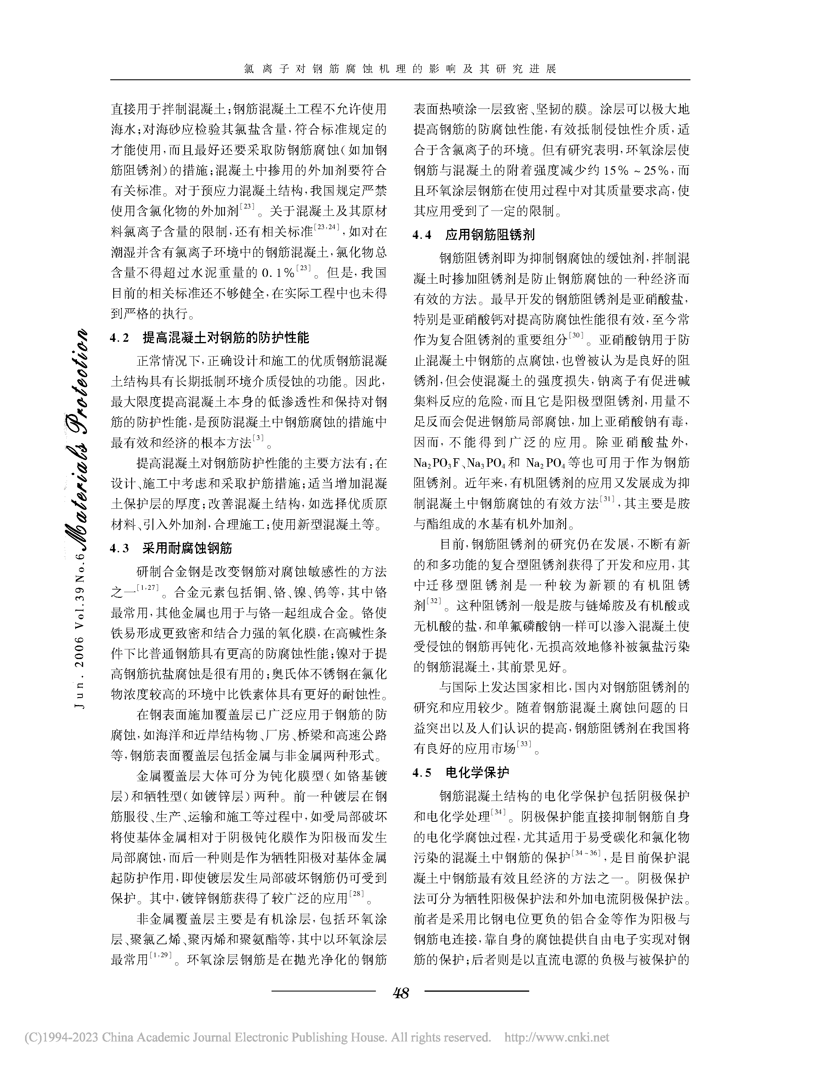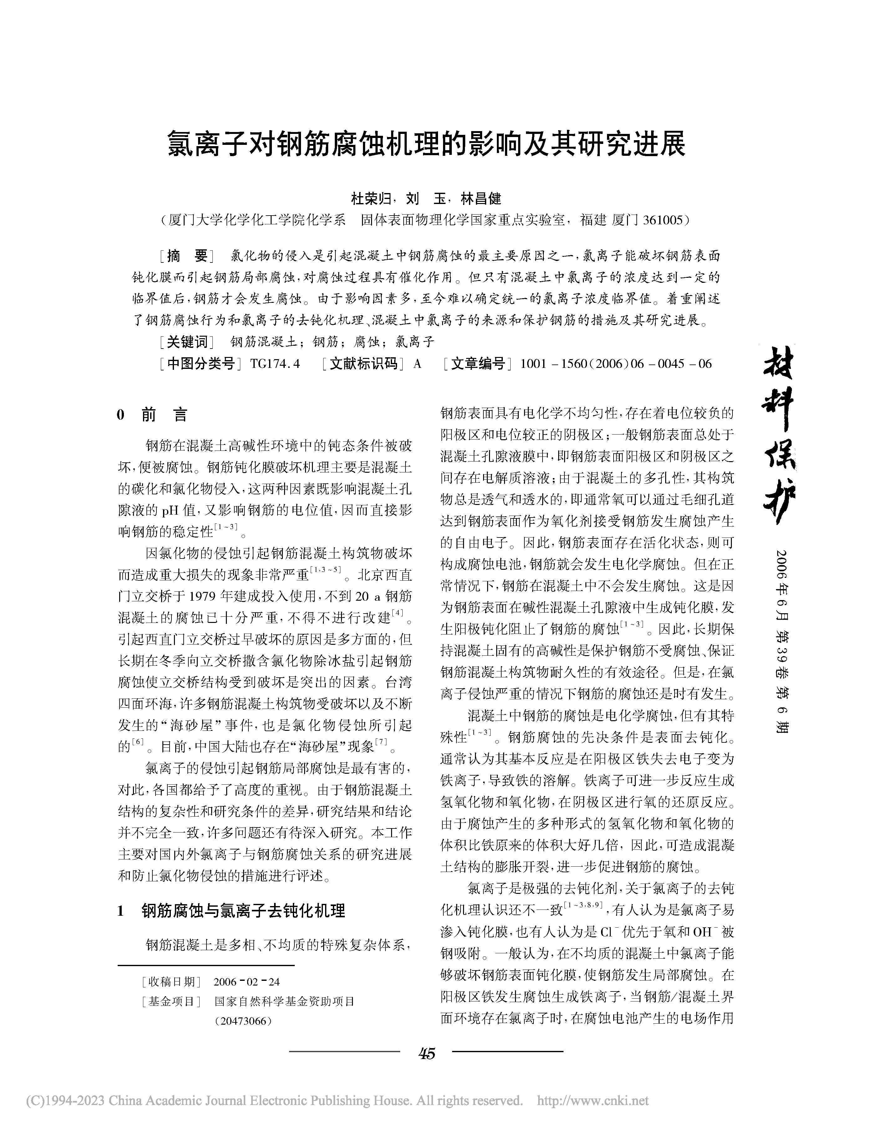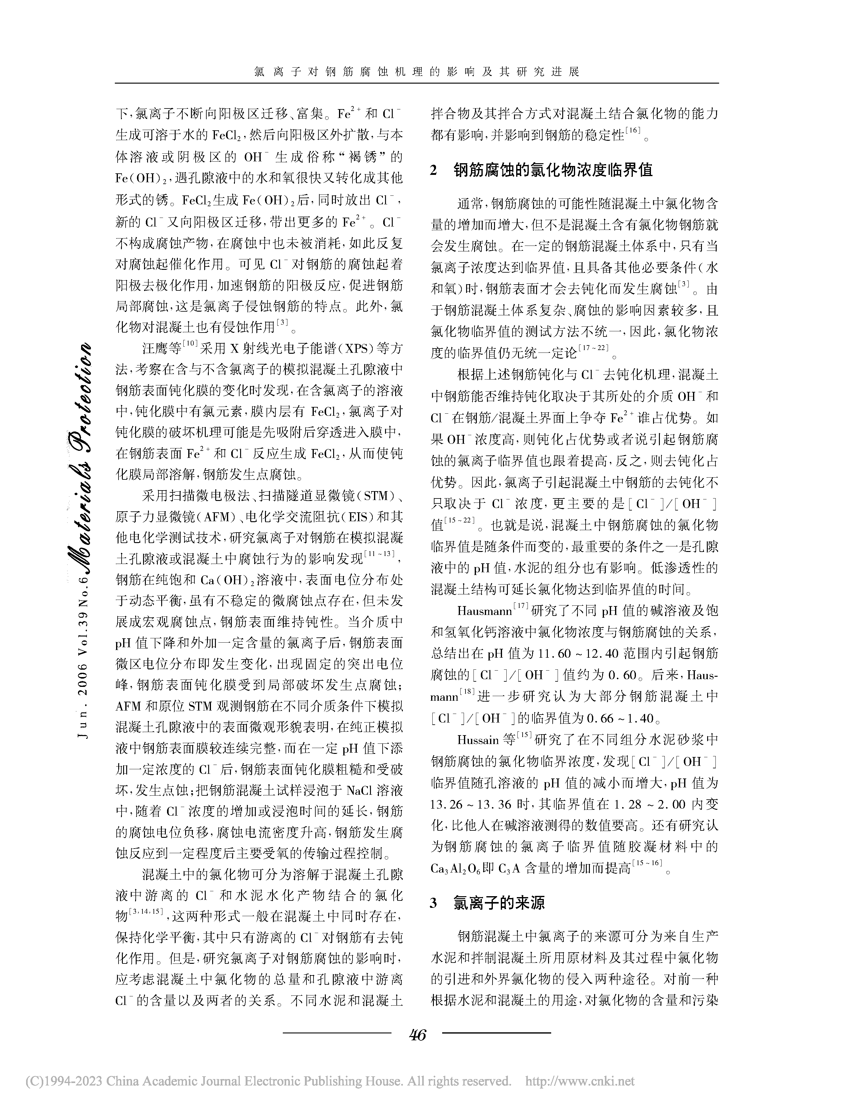 氯离子对钢筋腐蚀机理的影响及其研究进展