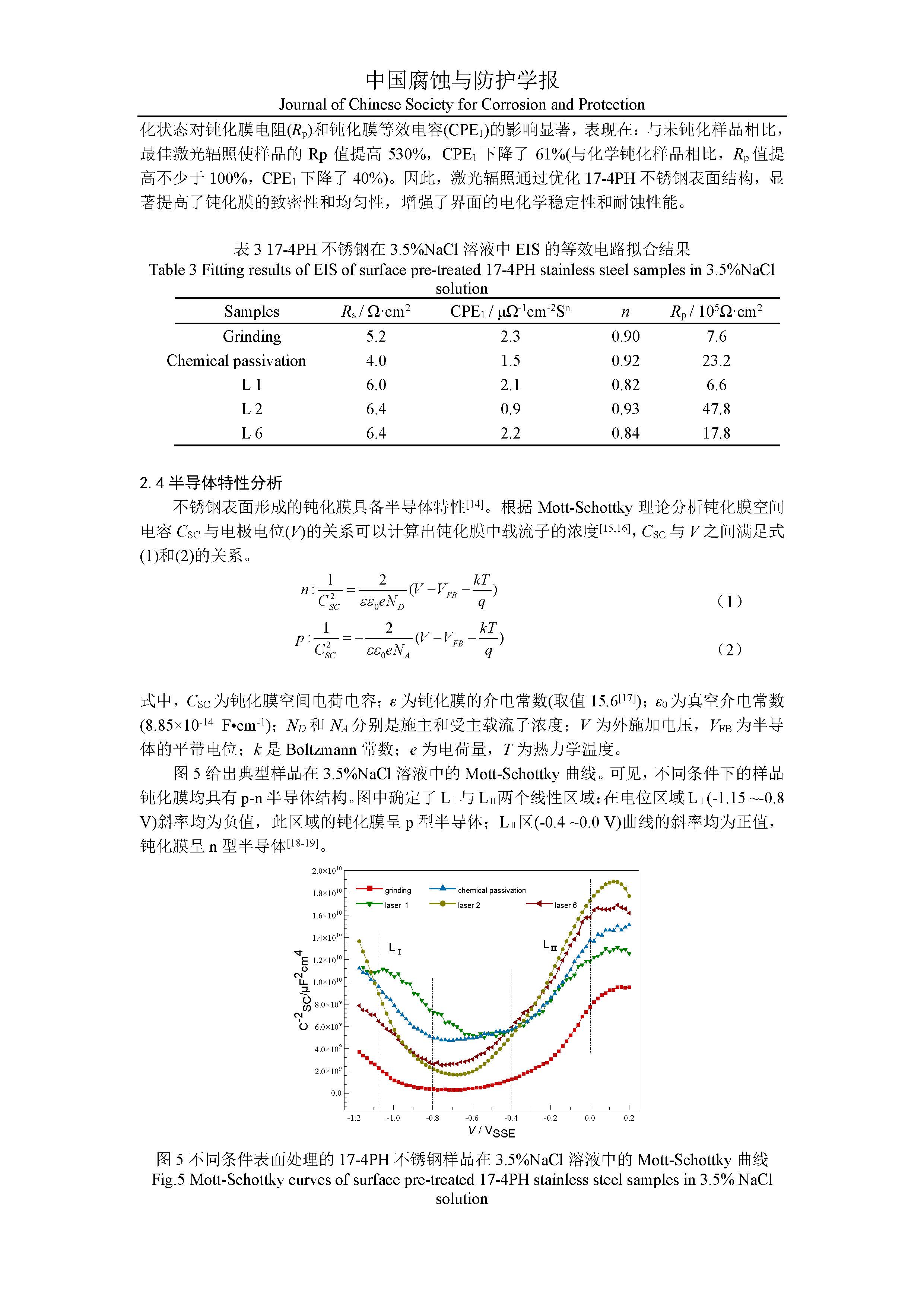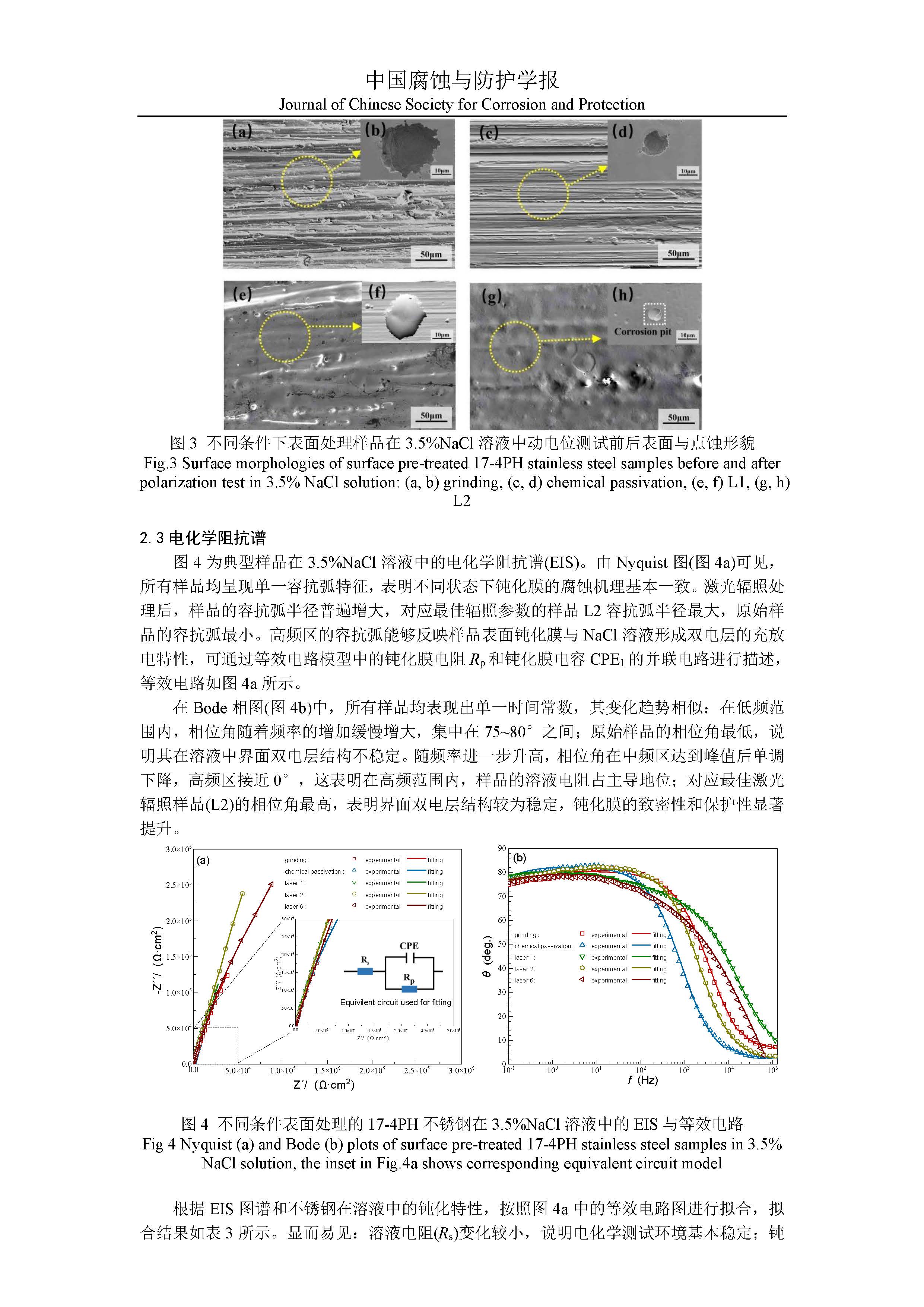 纳秒激光辐照对 17-4PH 不锈钢电化学腐蚀行为的影响