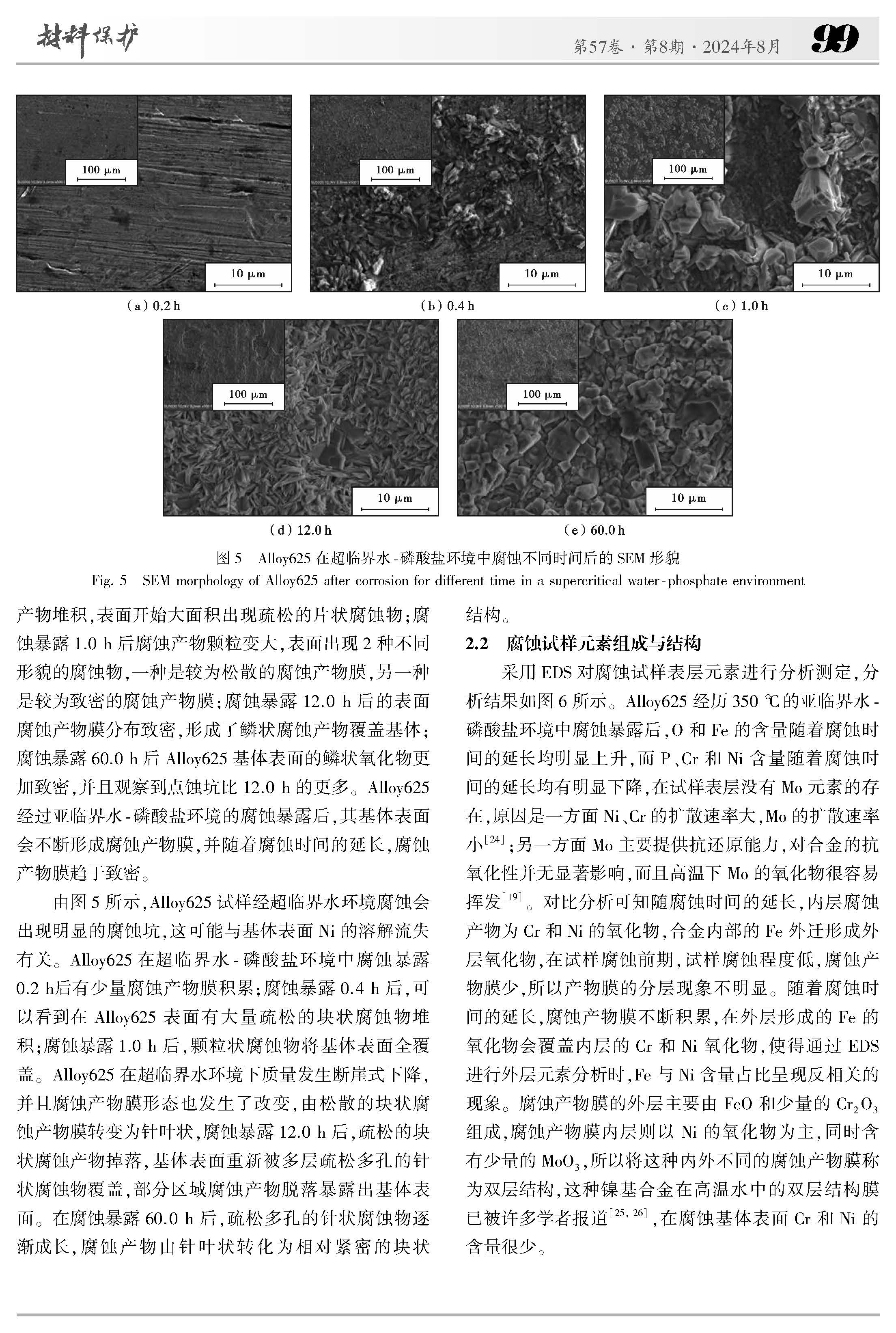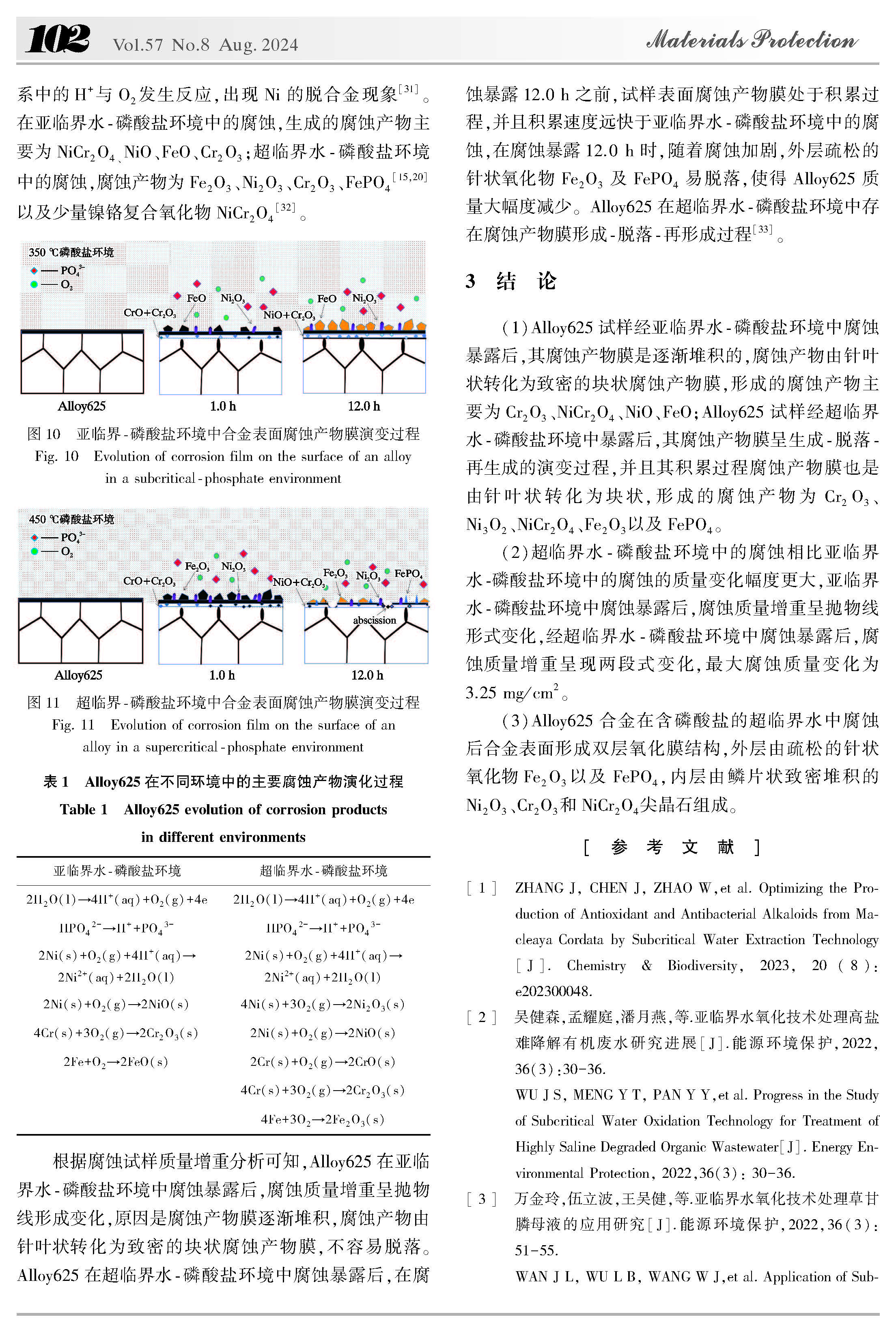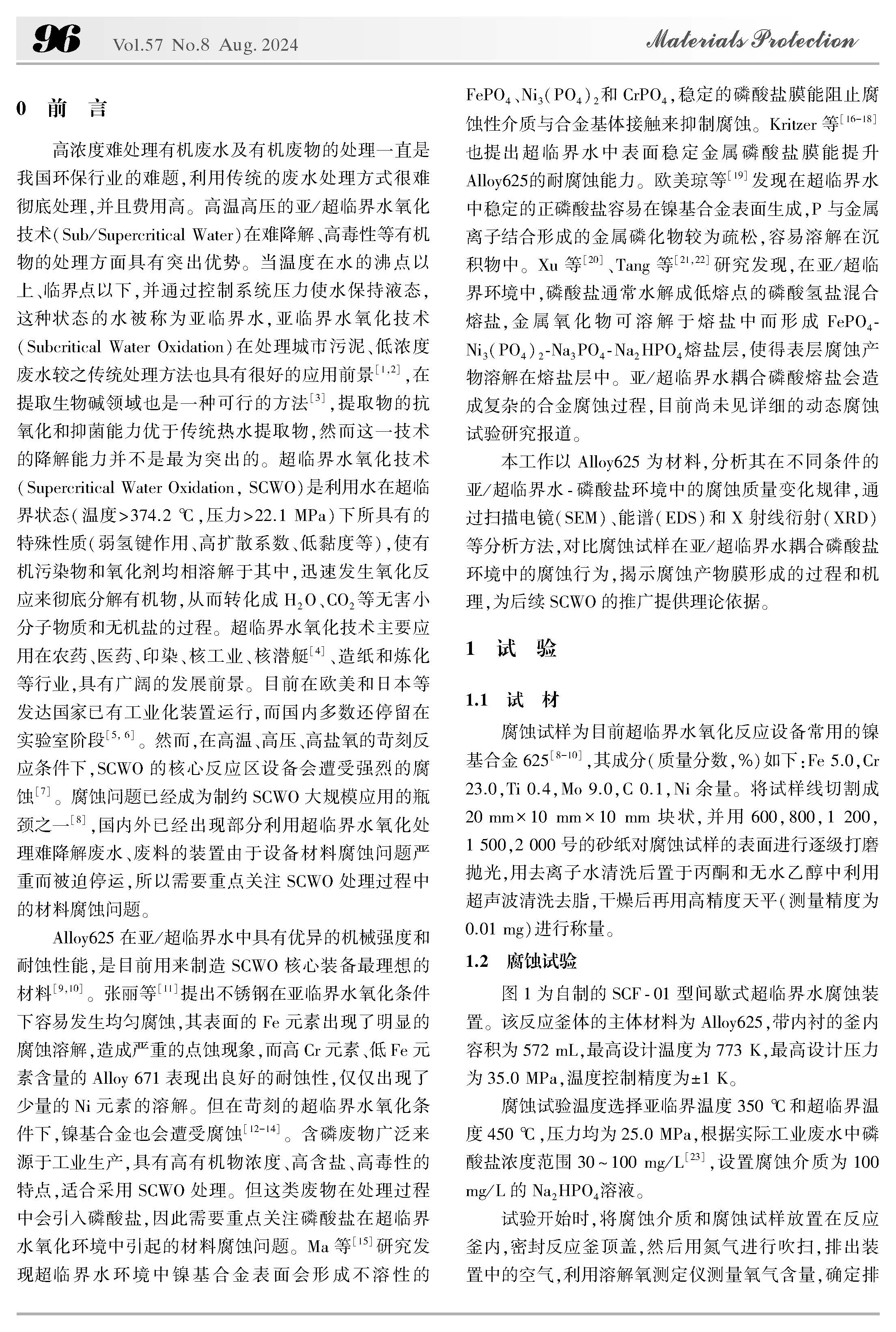 亚/超临界水-磷酸盐环境中Alloy625 的腐蚀行为研究