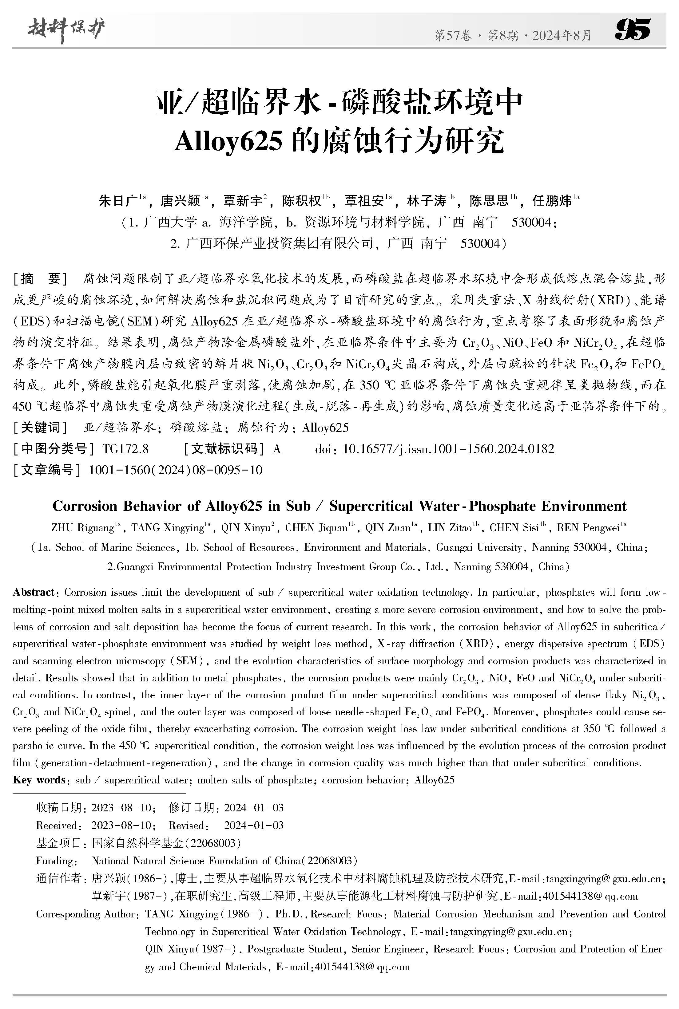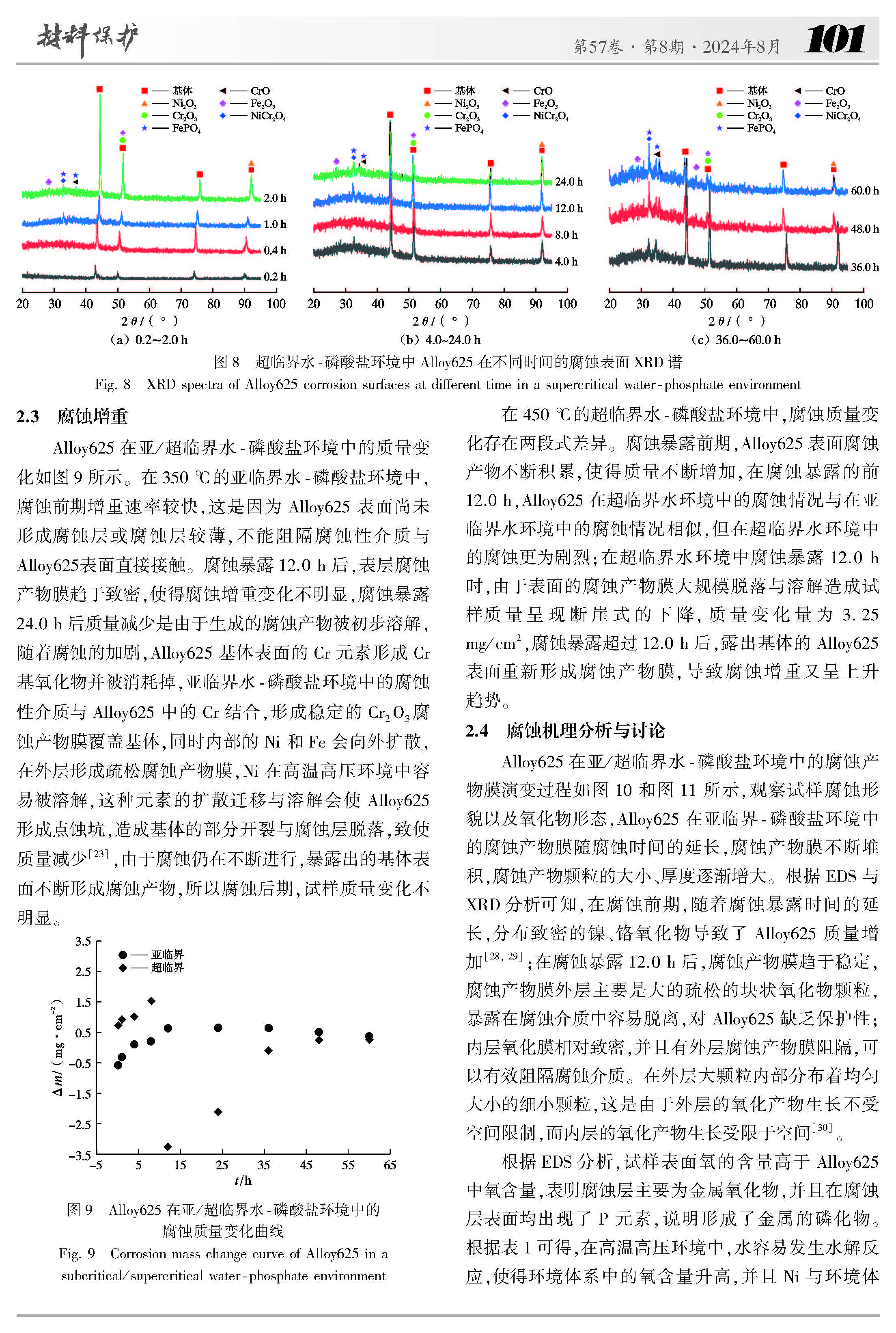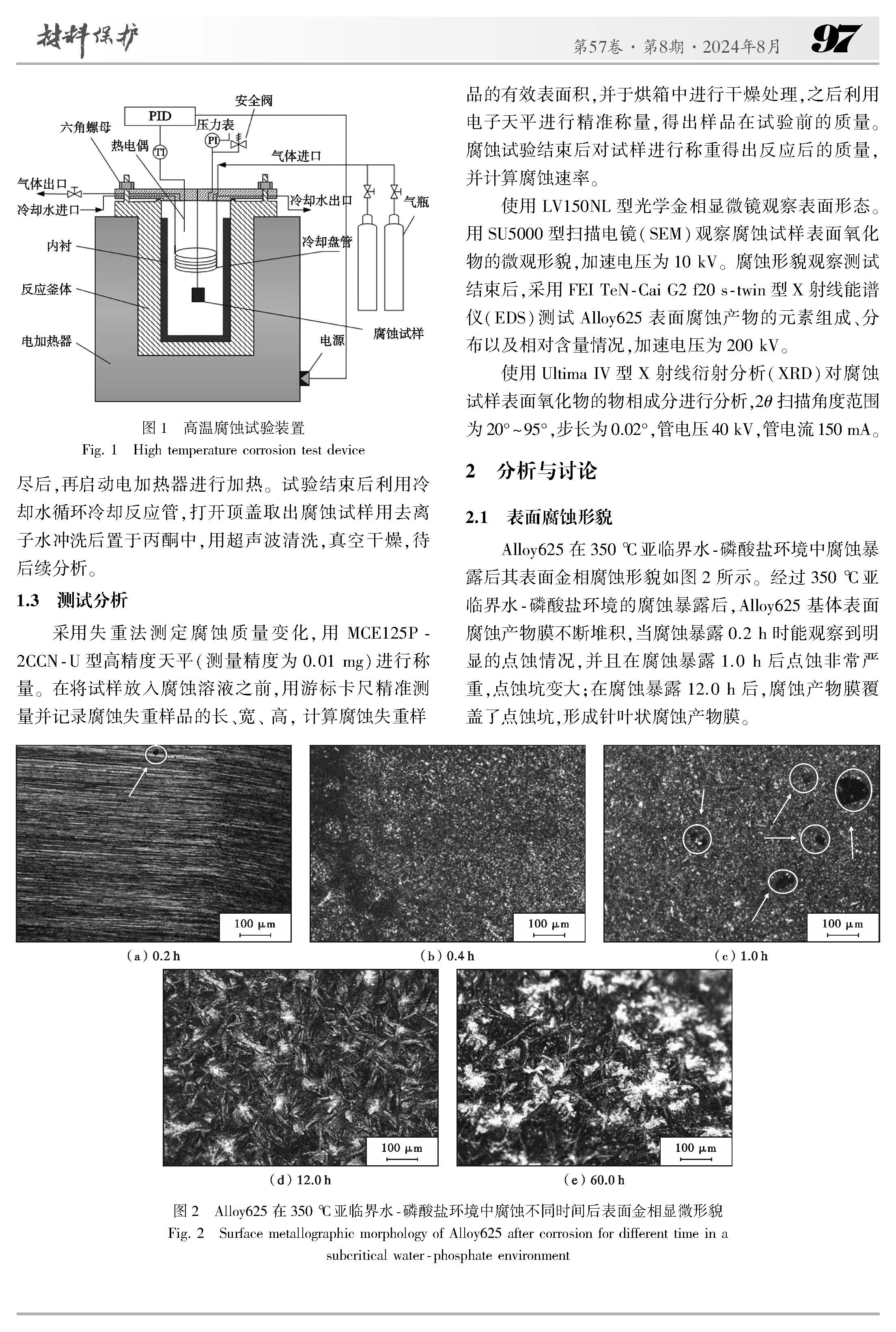 亚/超临界水-磷酸盐环境中Alloy625 的腐蚀行为研究