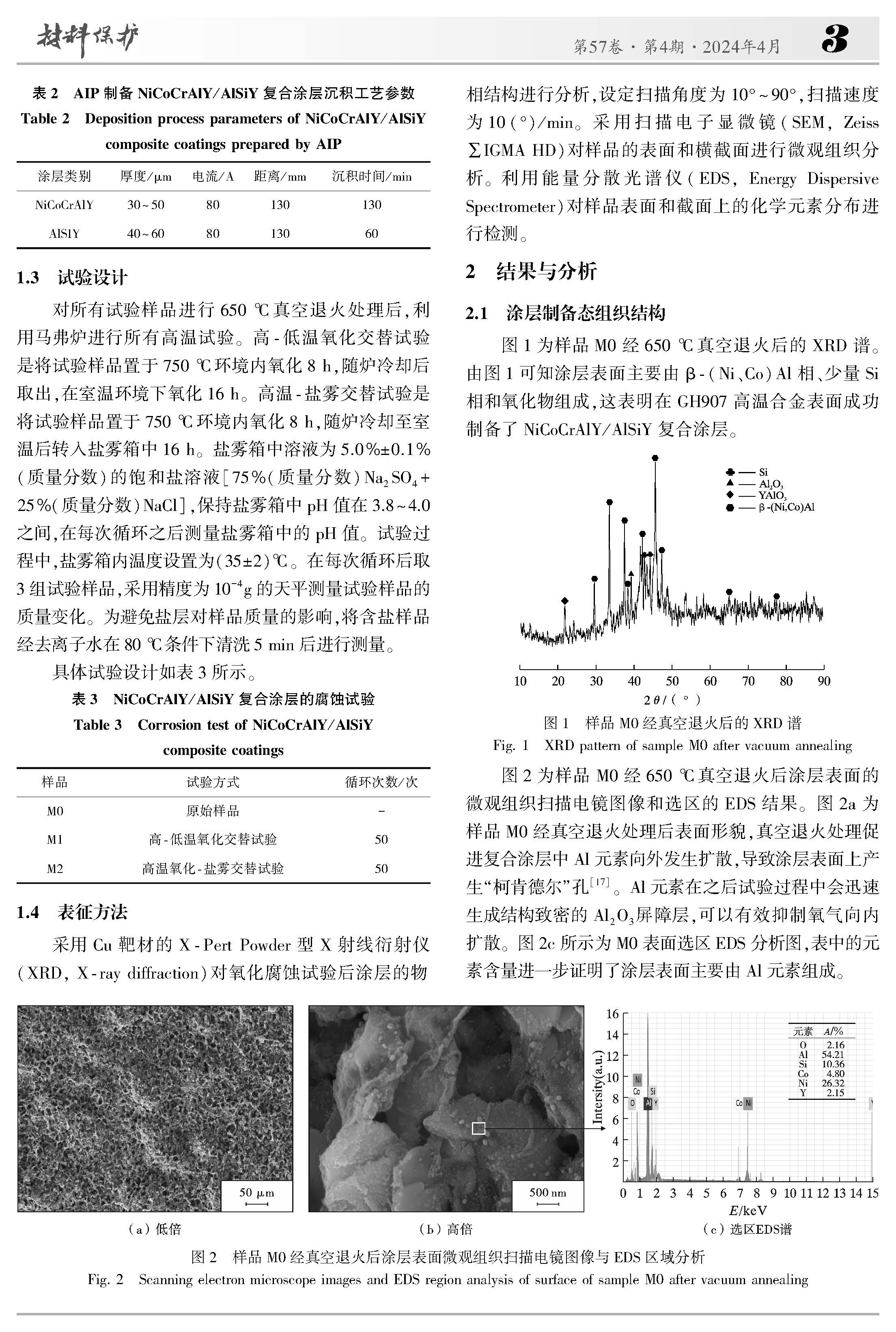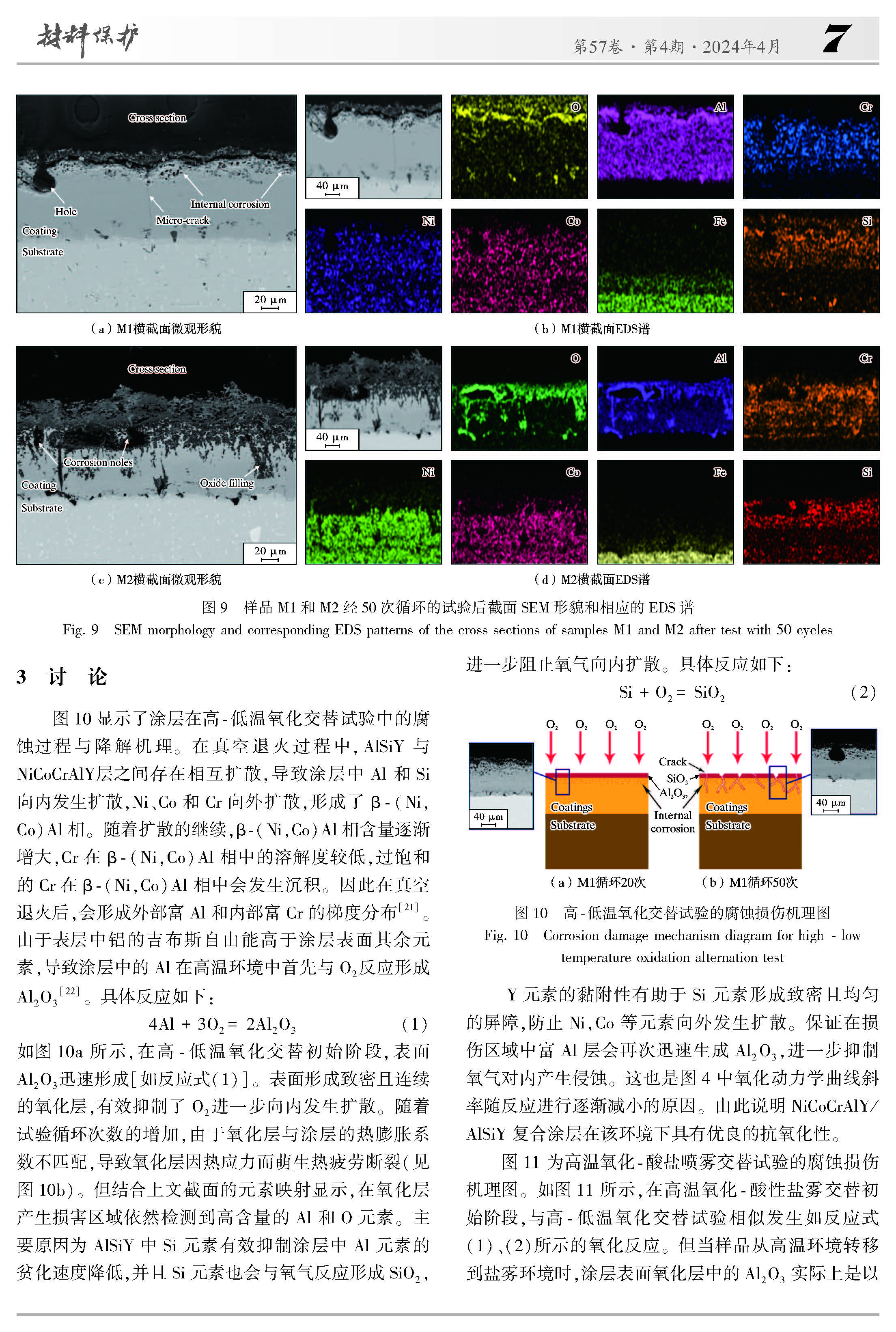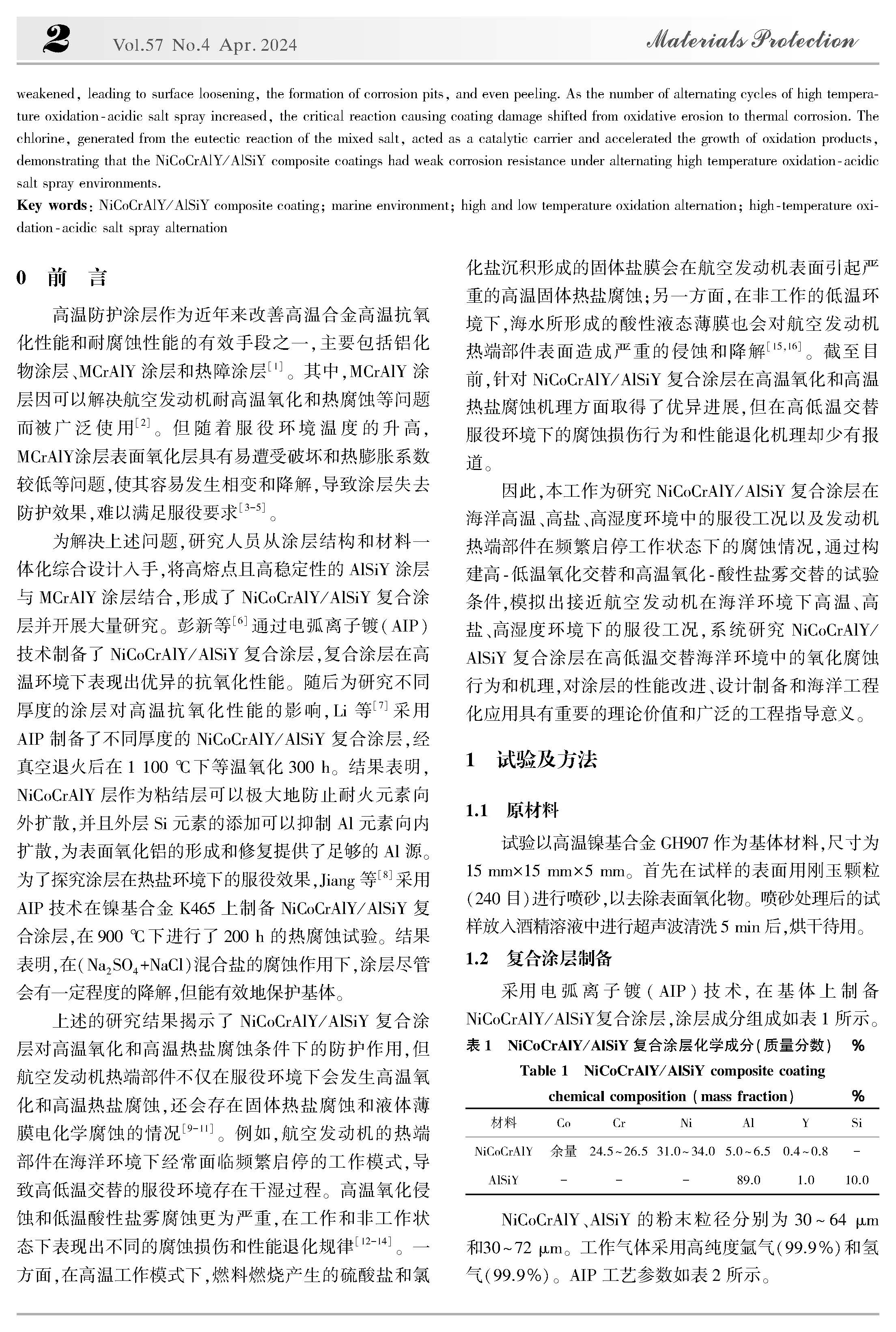 高低温交替海洋环境下NiCoCrAlY/AlSiY复合涂层的腐蚀失效机理