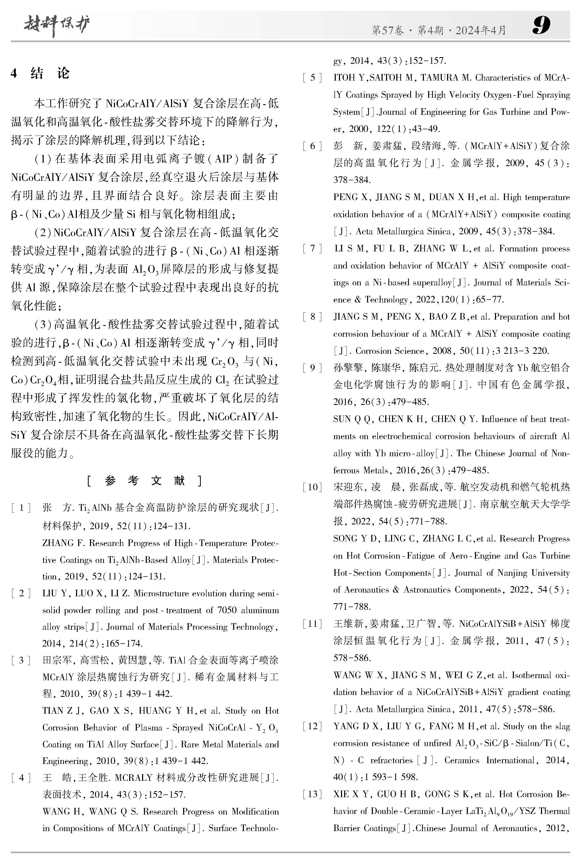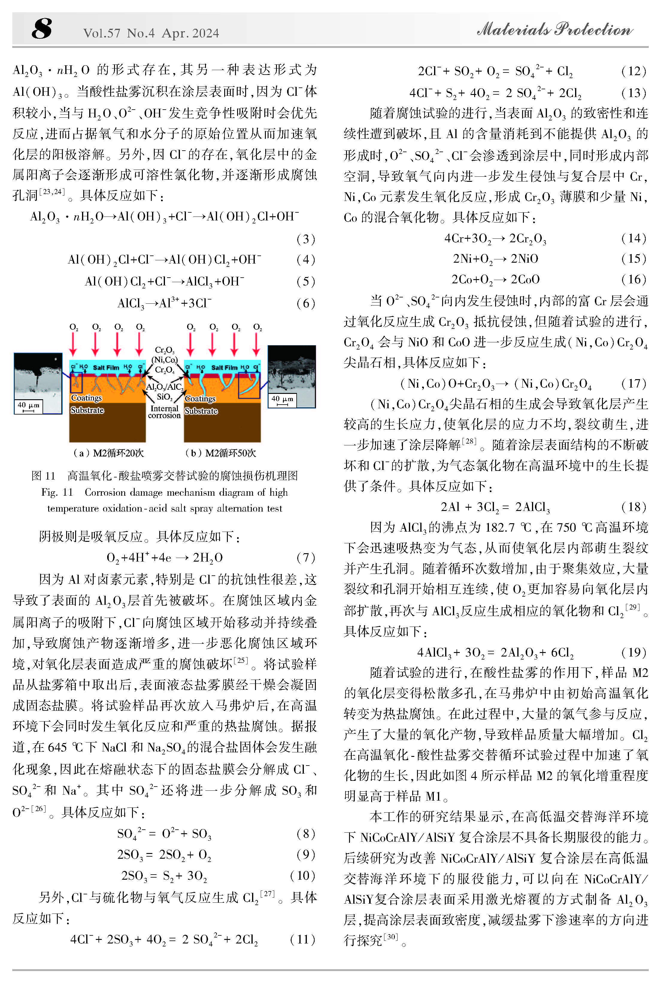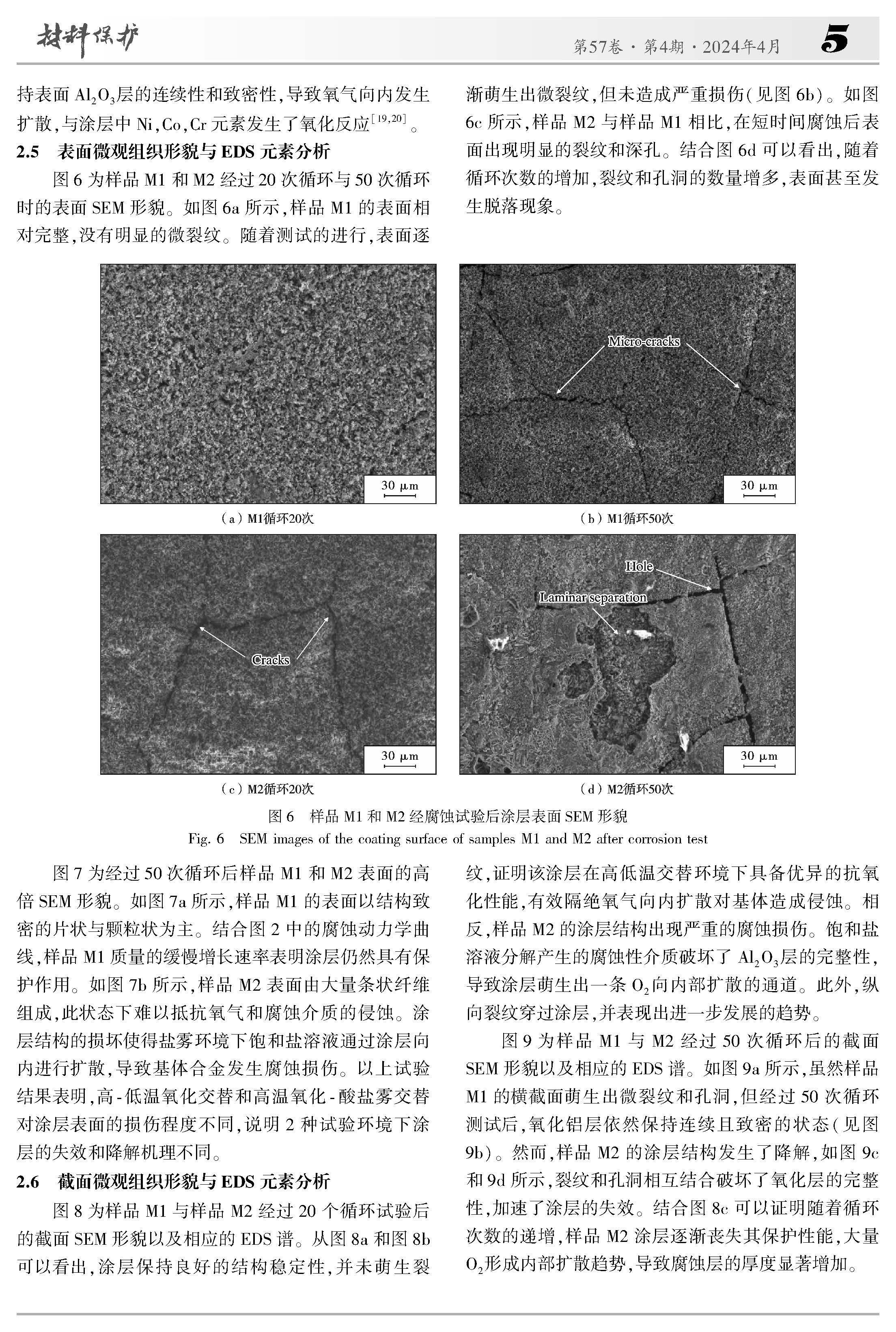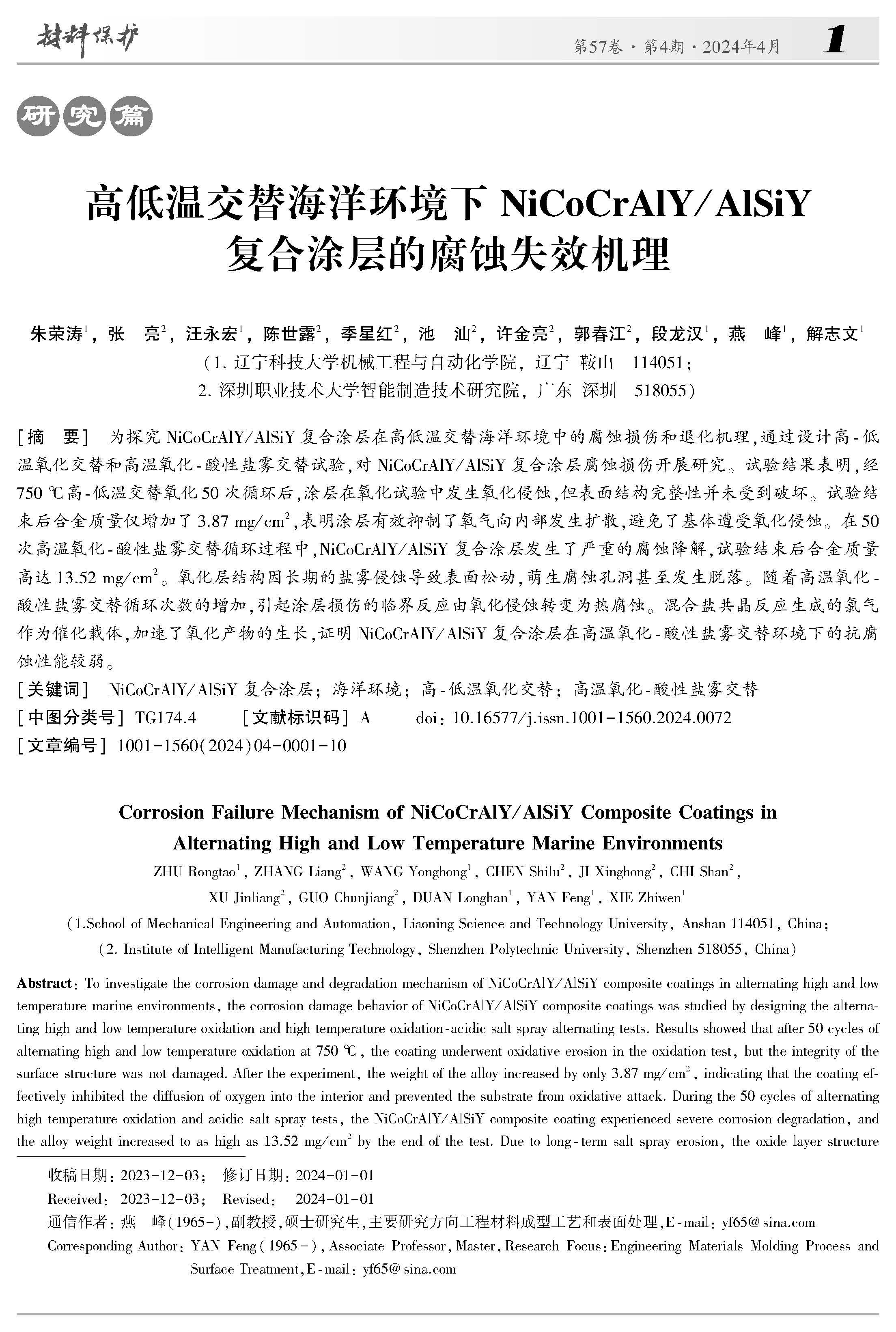 高低温交替海洋环境下NiCoCrAlY/AlSiY复合涂层的腐蚀失效机理