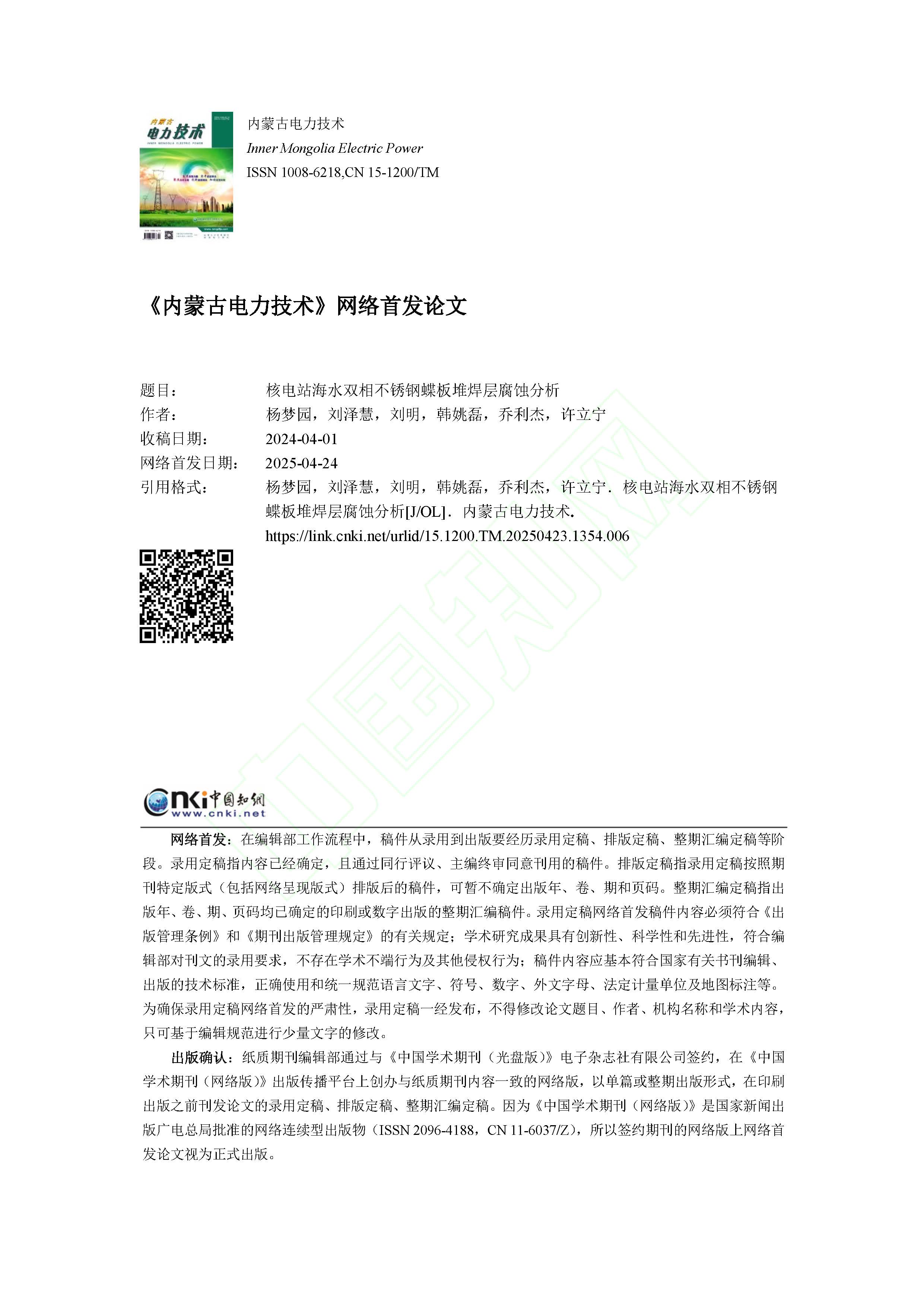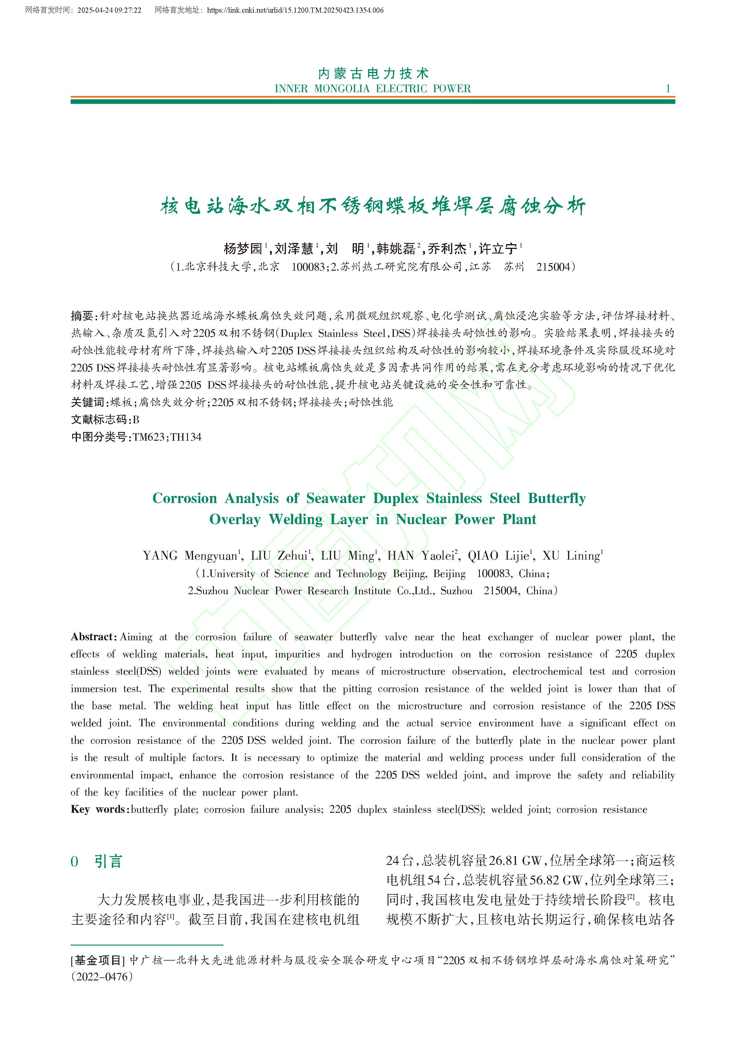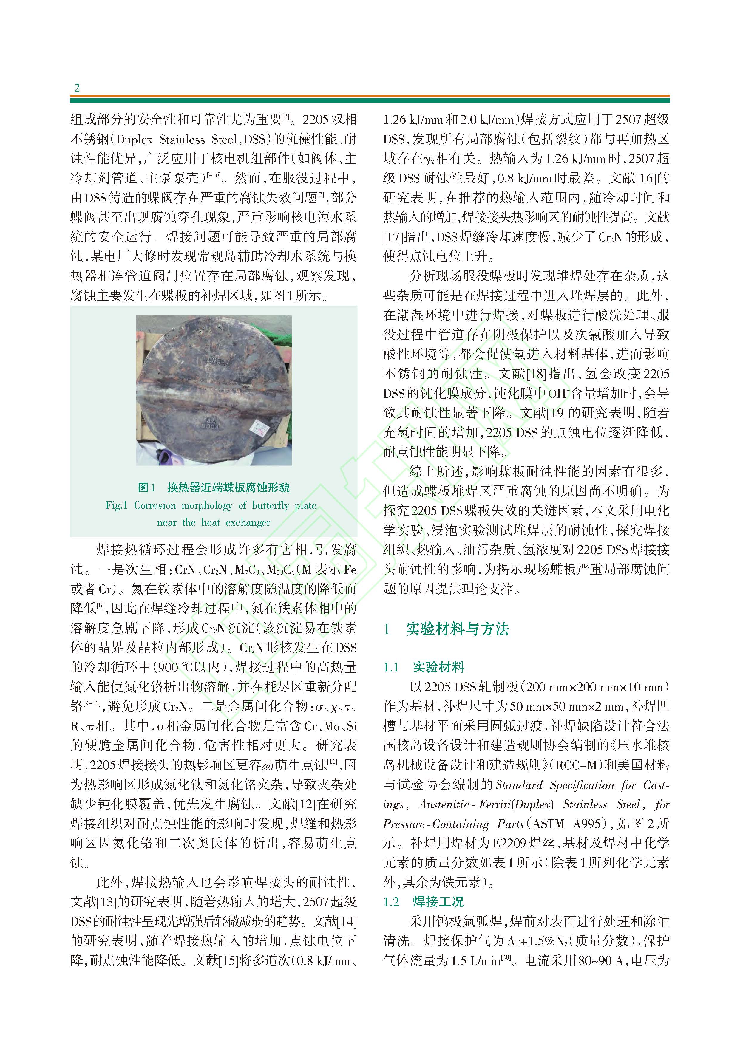 核电站海水双相不锈钢蝶板堆焊层腐蚀分析