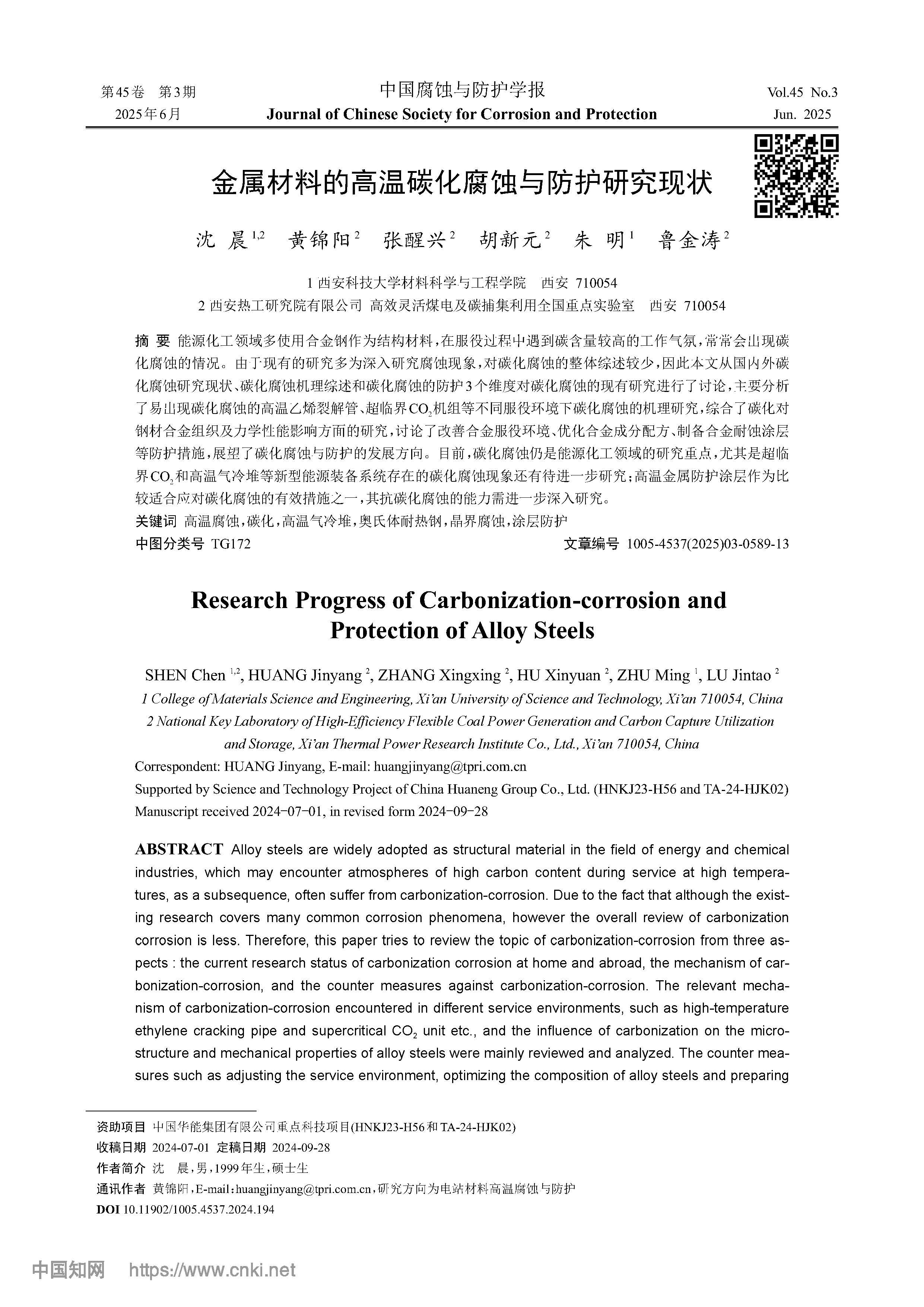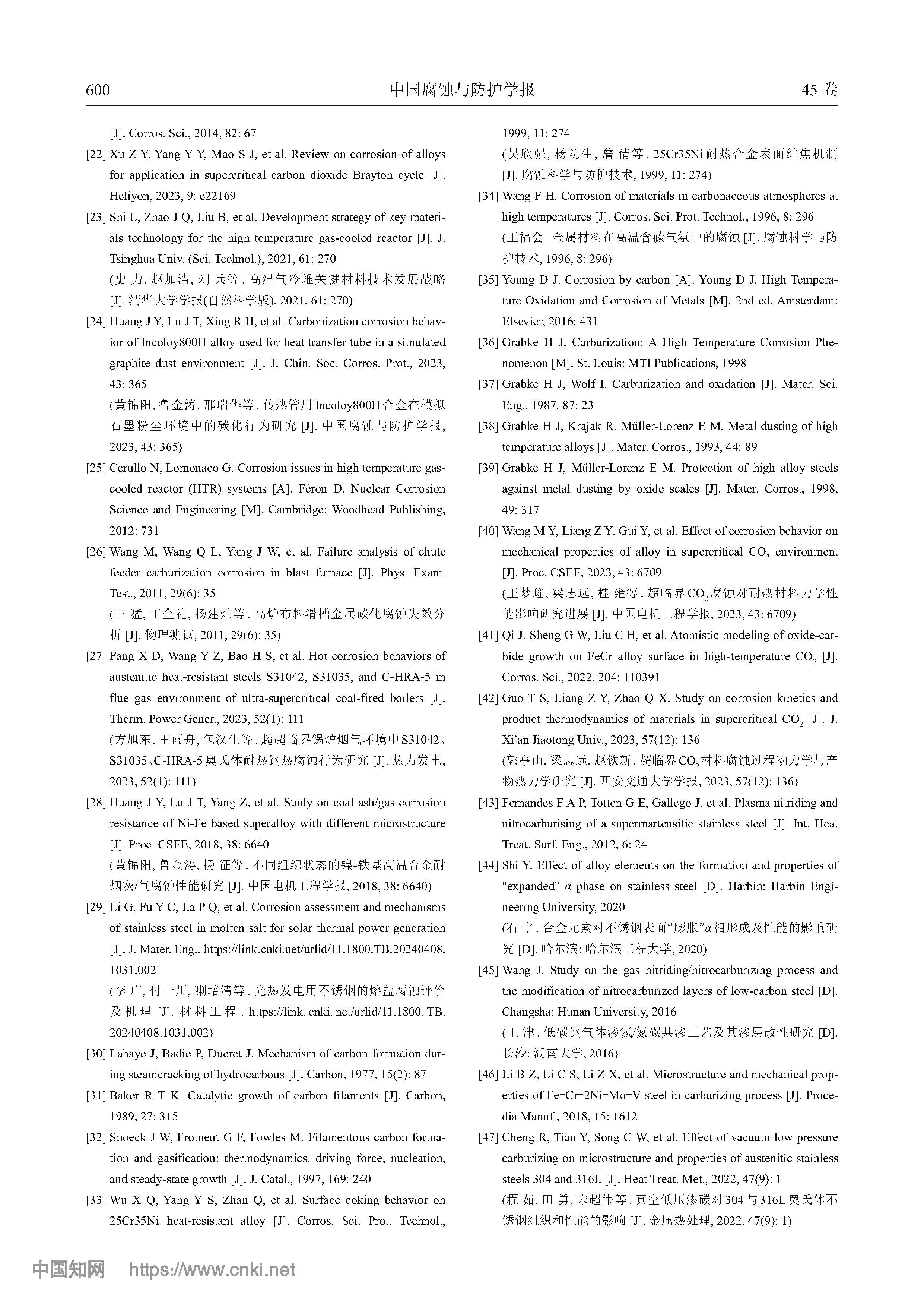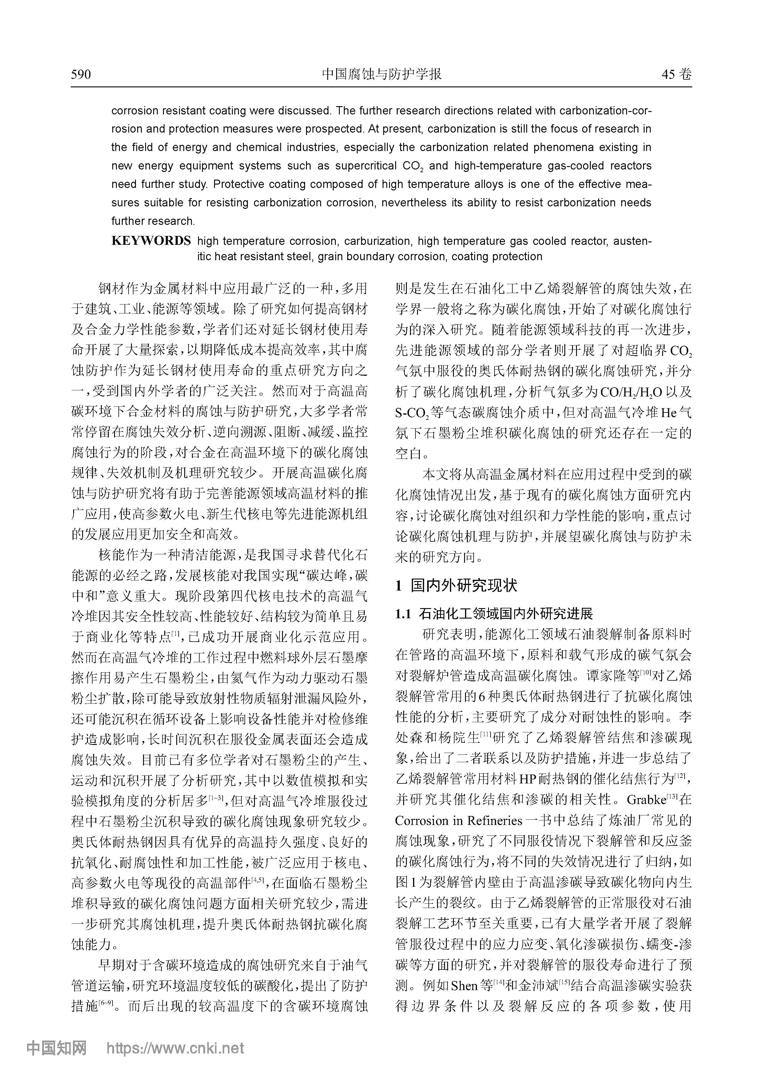 金属材料的高温碳化腐蚀与防护研究现状