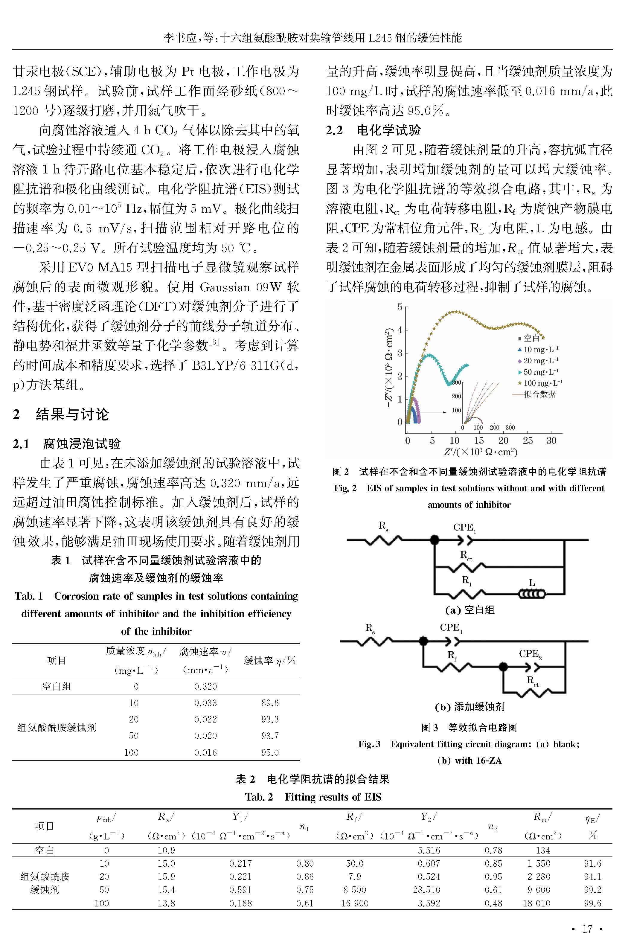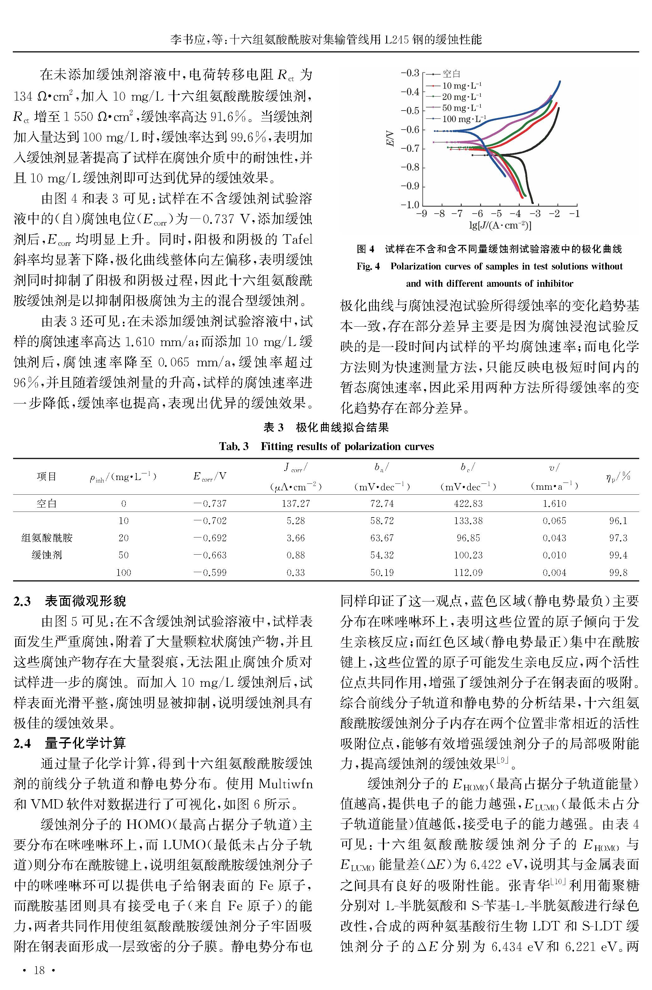 十六组氨酸酰胺对集输管线用L245钢的缓蚀性能