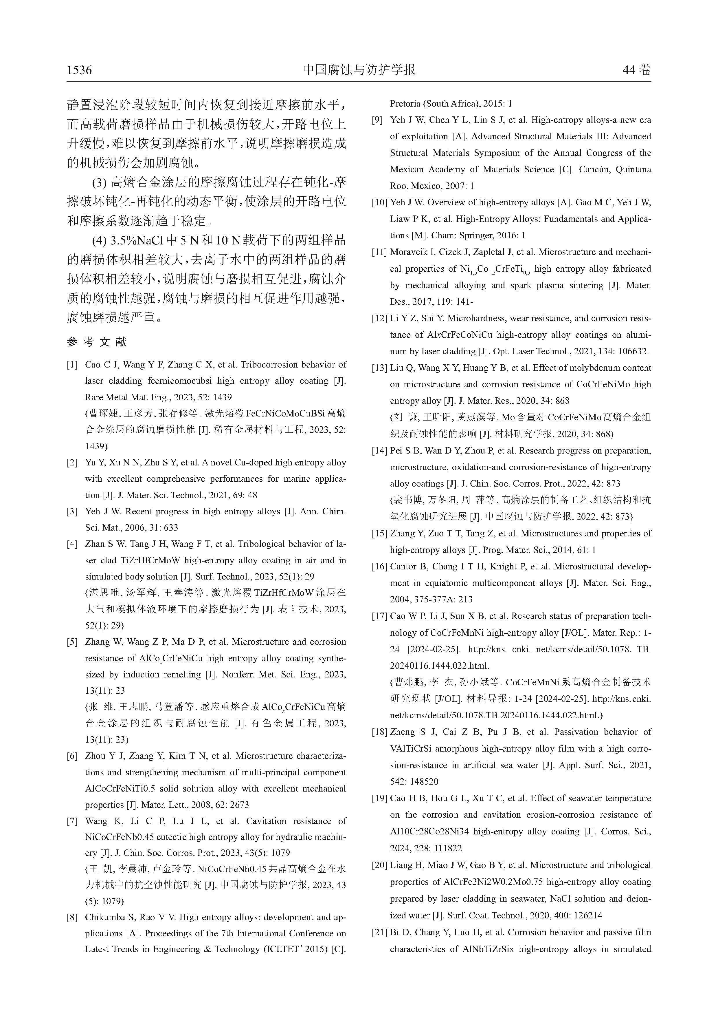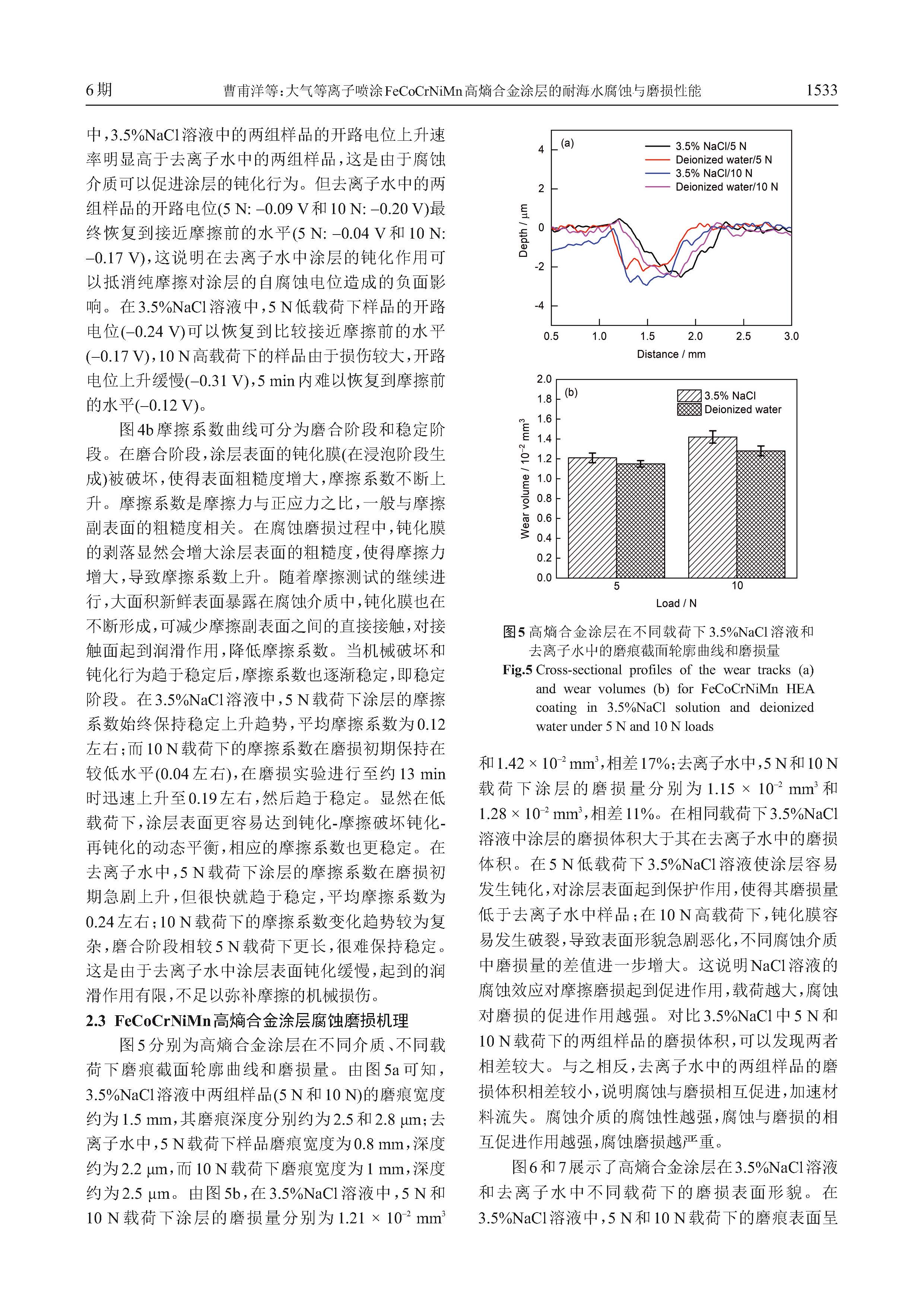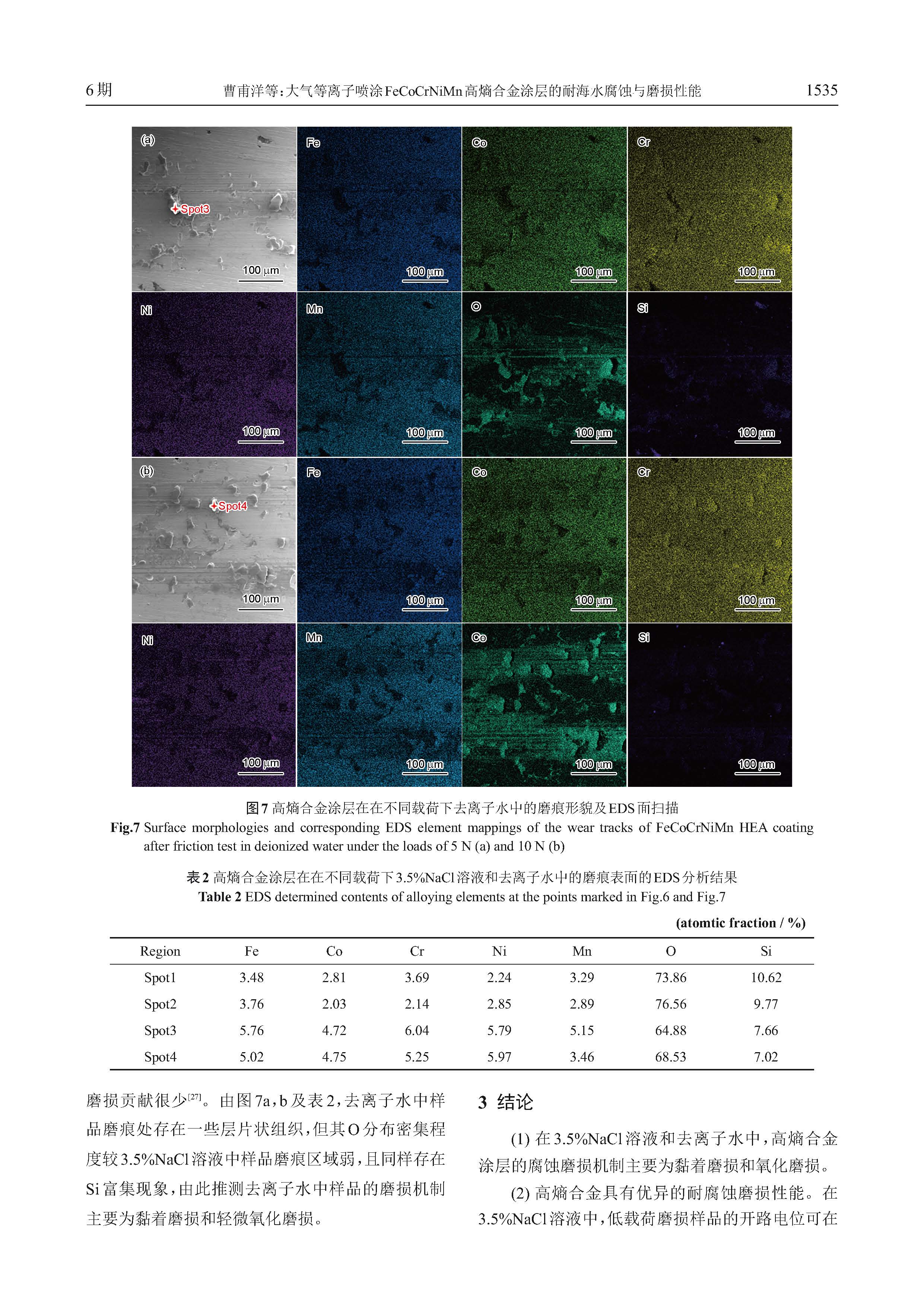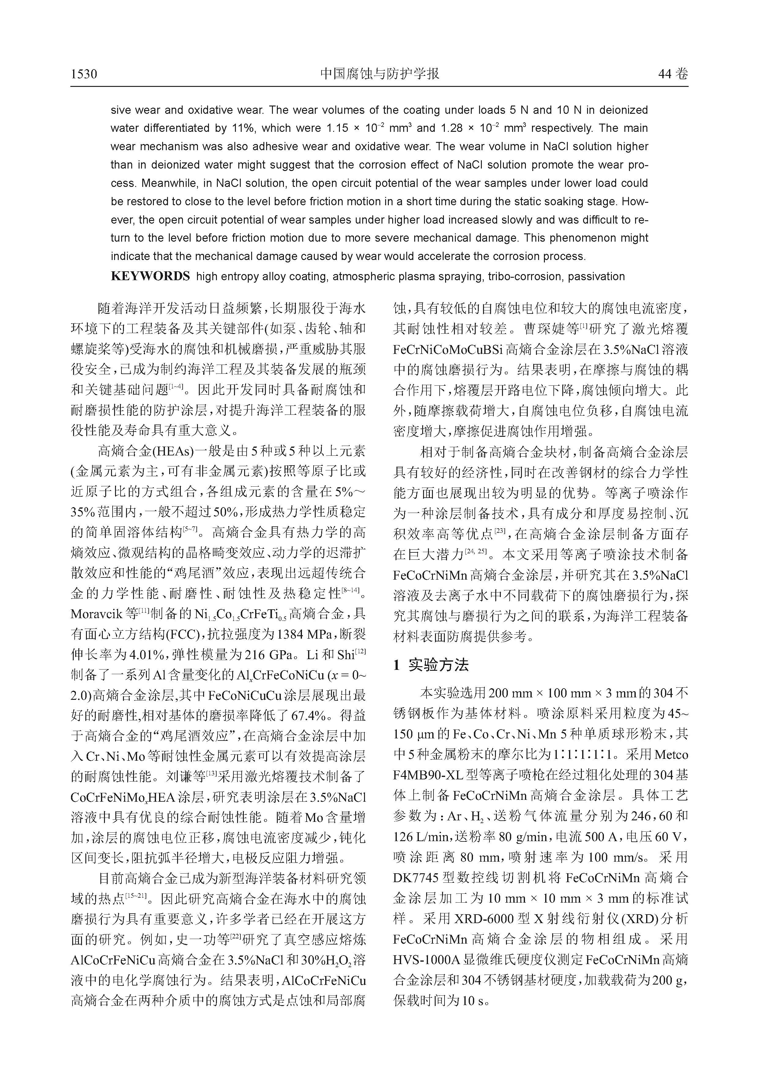 大气等离子喷涂FeCoCrNiMn高熵合金涂层的耐海水腐蚀与磨损性能