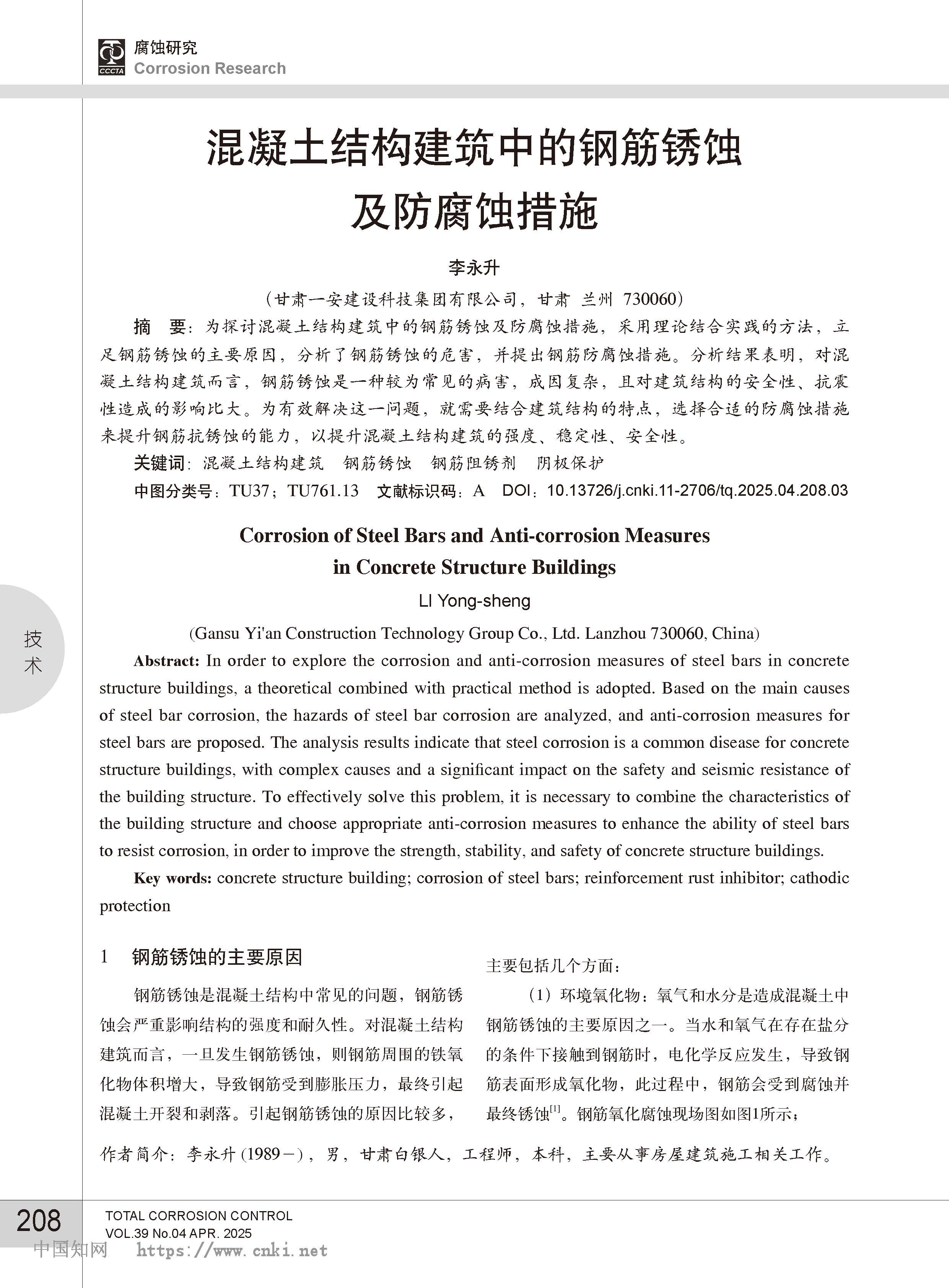 混凝土结构建筑中的钢筋锈蚀及防腐蚀措施