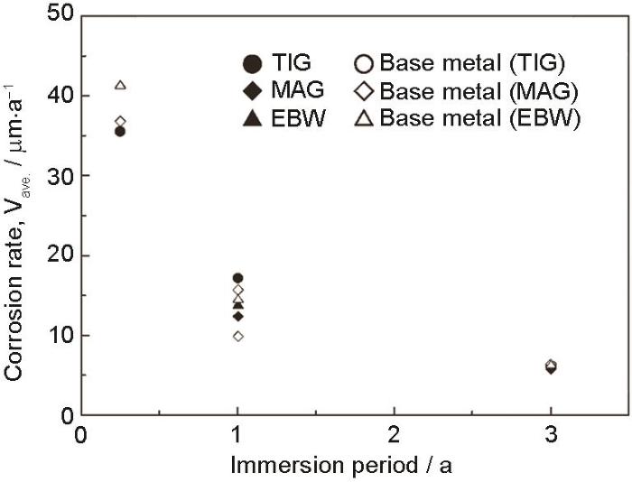 处置容器材料的选择首先应满足功能要求(包括安全和寿命),其次应与其他天然或工程屏障之间具有良好的相容性,最后还应考虑材料的成本和加工的难易程度。日本处置容器的安全功能是,在设计寿命年限内将高放废物与生物圈进行隔离,同时抑制放射性核素向地下水中的释放和迁移。这不仅要求处置容器在放入处置库之前是一个没有缺陷的密封结构,也要求其在服役过程中具有较高的完整性,不发生由于腐蚀或外力的挤压、剪切而导致的过早失效。处置容器在处置库中的辐照损伤和由于外部载荷导致的力学失效,均可以通过合理的设计、加工和检查予以避免,但是其在处置库中的腐蚀几乎无法避免且腐蚀过程较为复杂。因此研究处置容器候选材料在模拟服役环境中的腐蚀行为,为处置容器的腐蚀厚度设计提供依据,具有重要的意义。