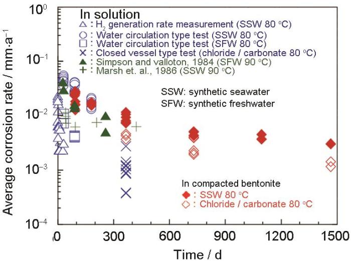 综上所述,日本认为碳钢作为处置容器材料在高放废物处置库环境中服役时,主要发生均匀腐蚀。