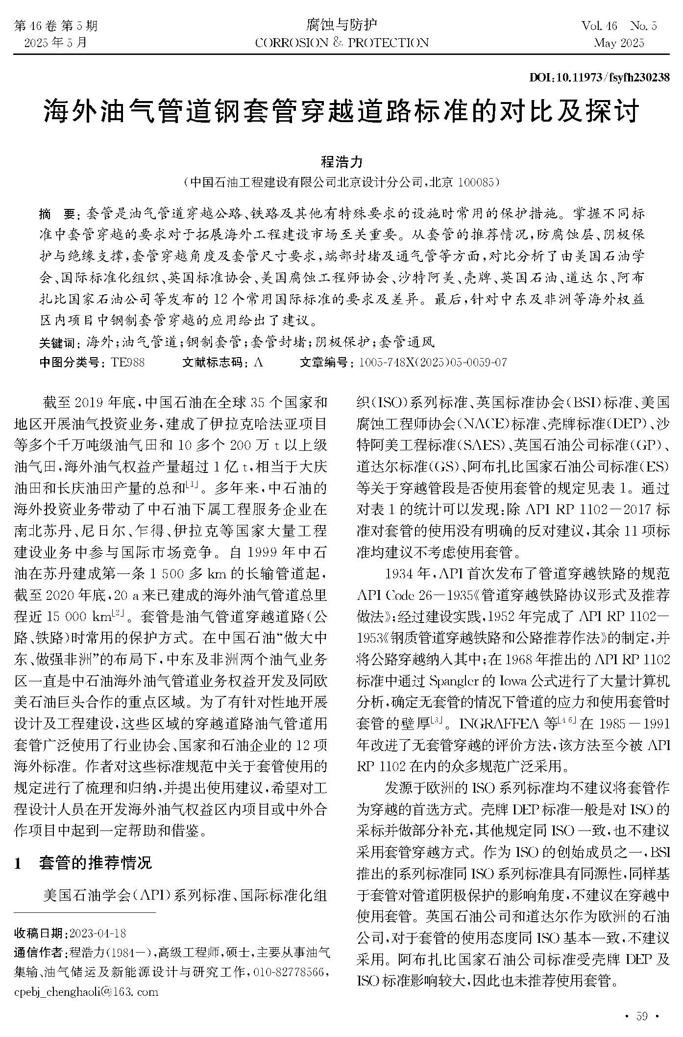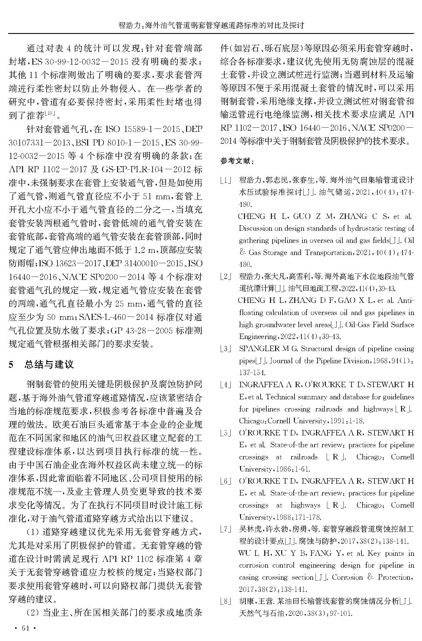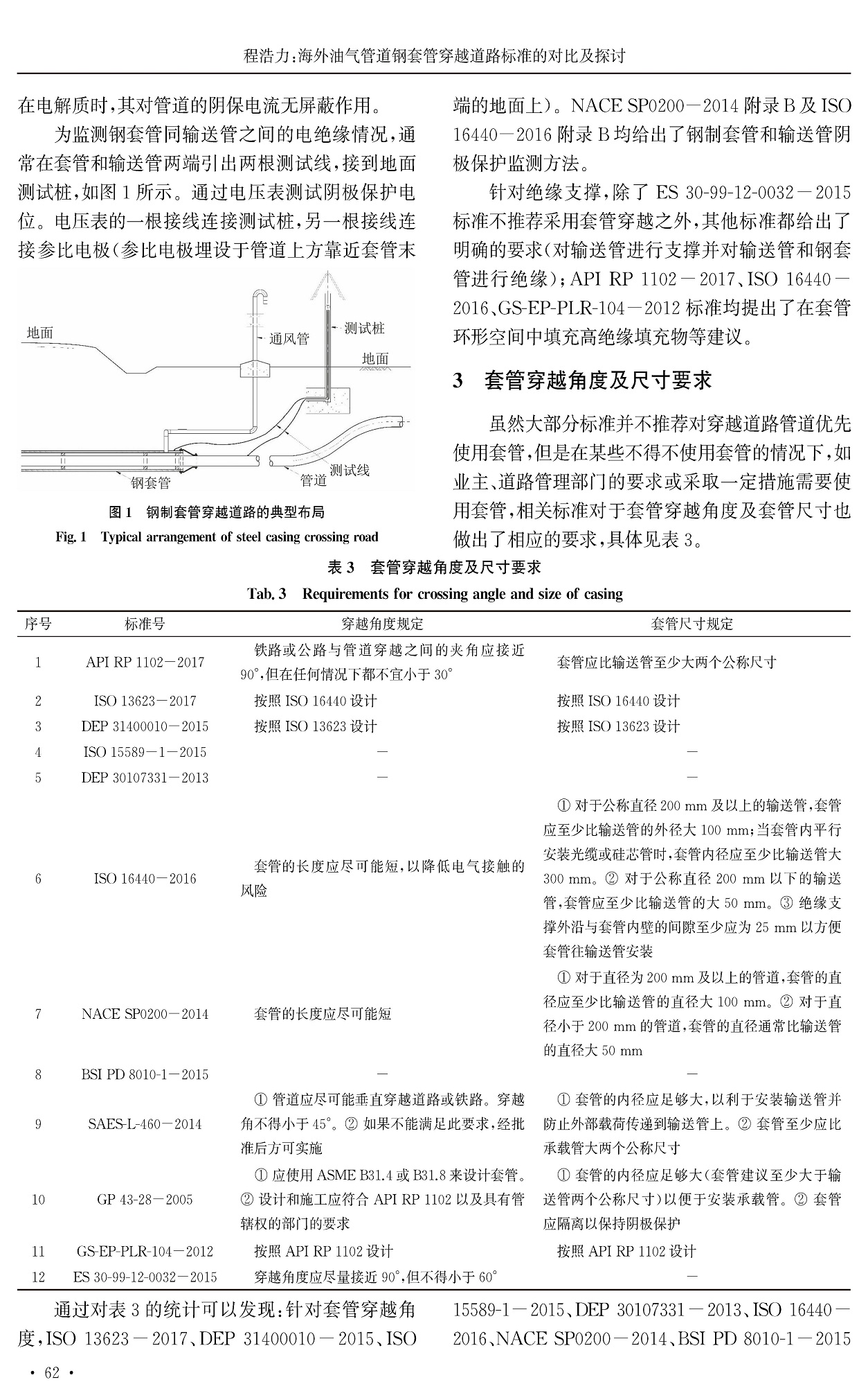 海外油气管道钢套管穿越道路标准的对比及探讨