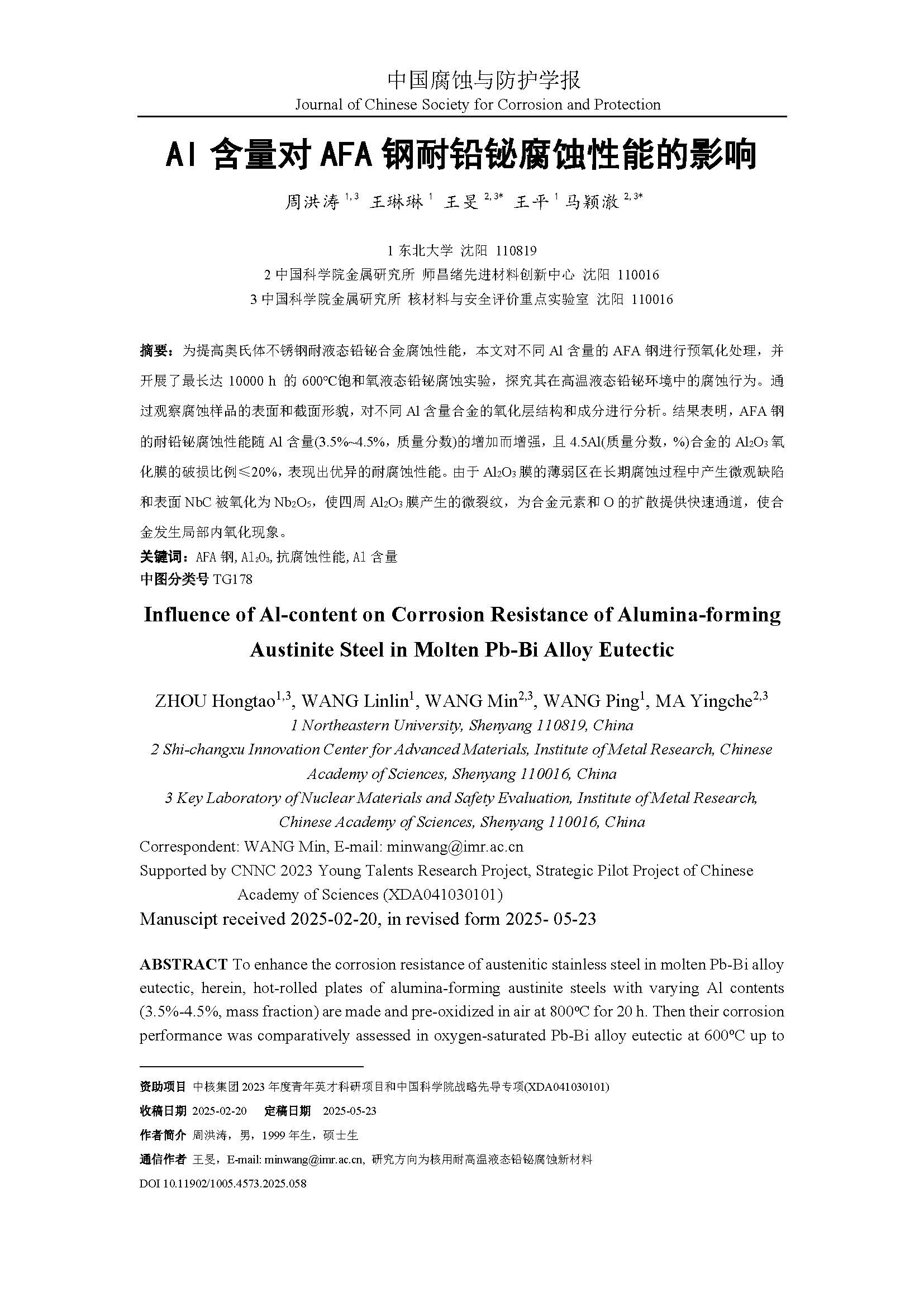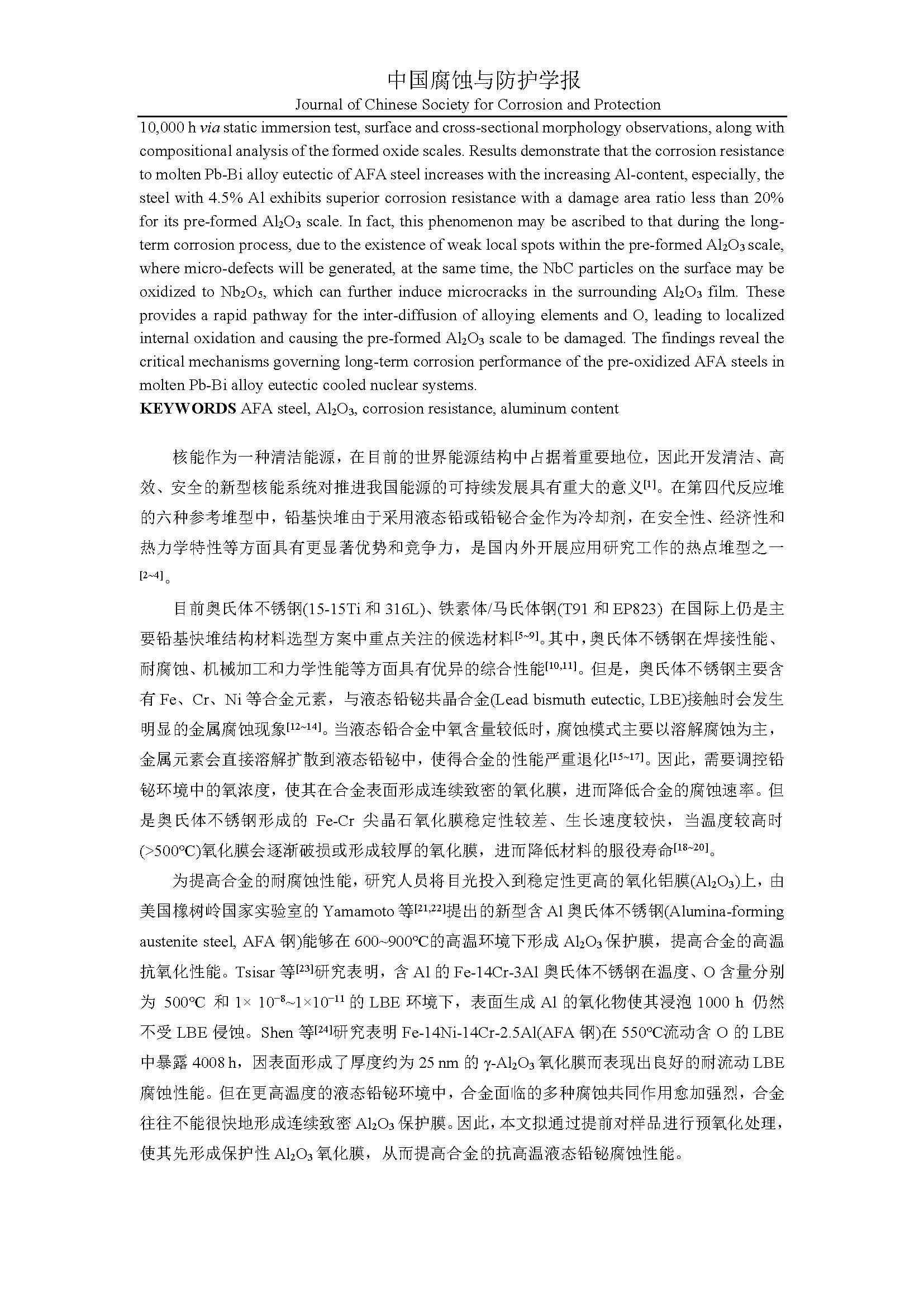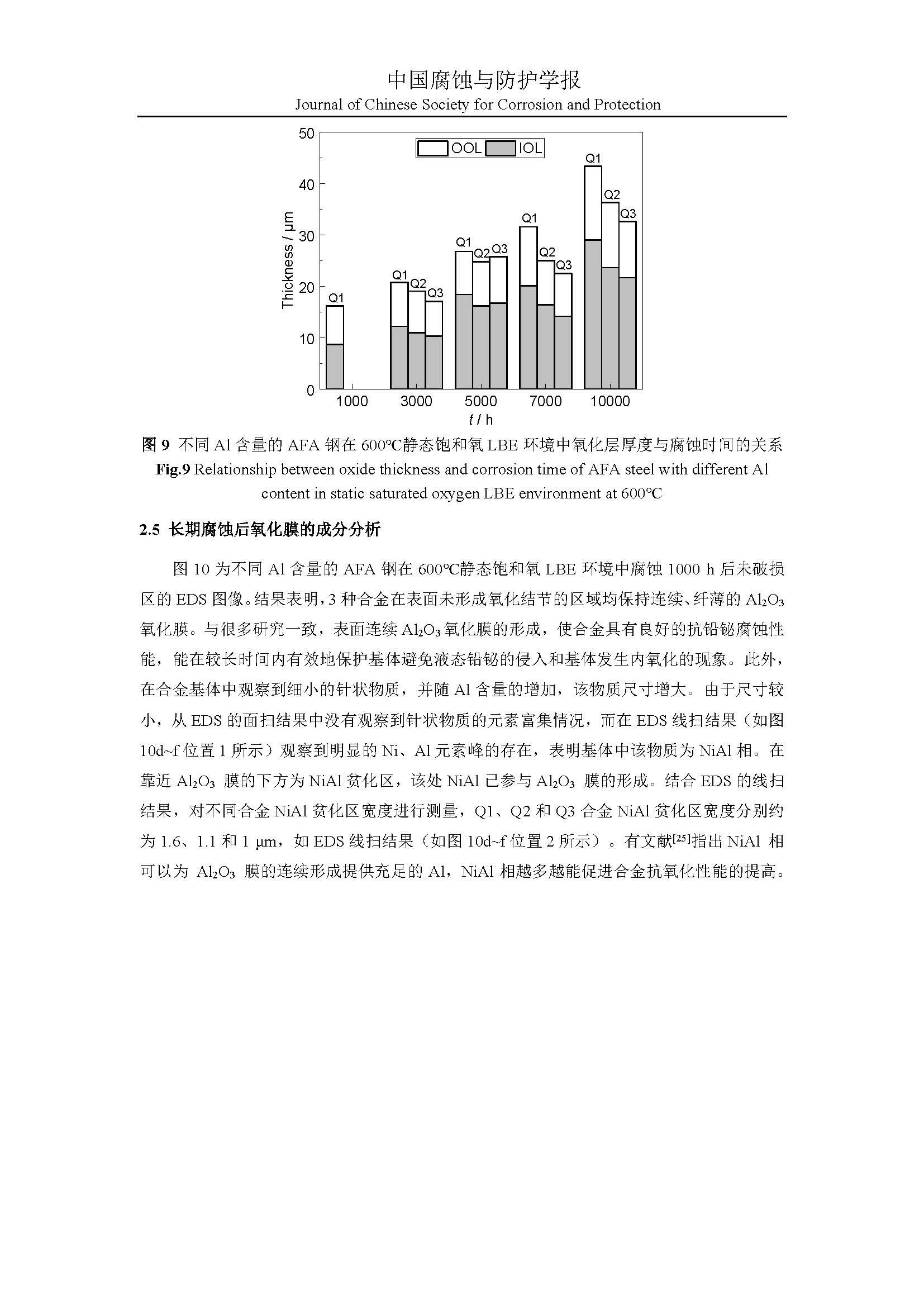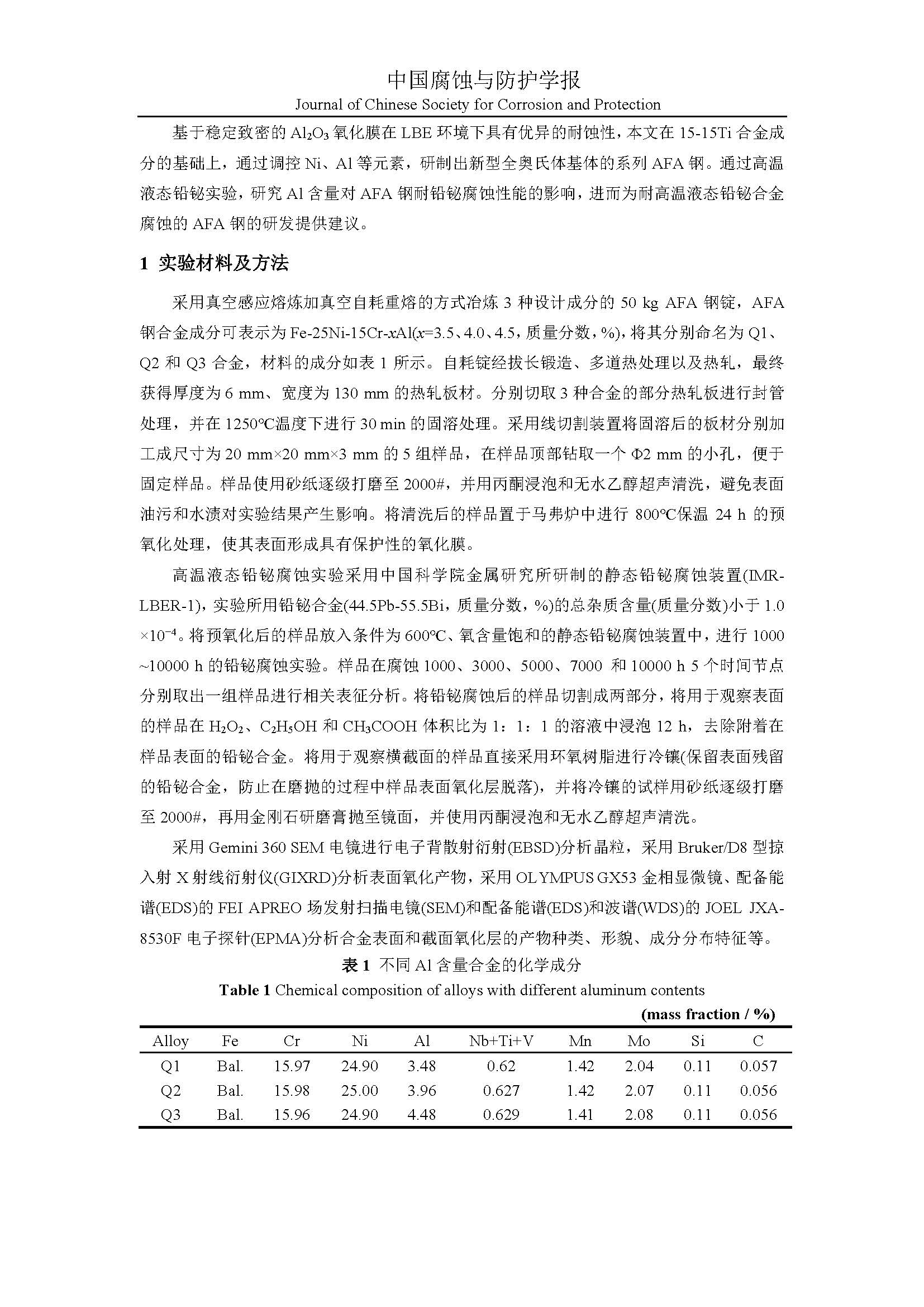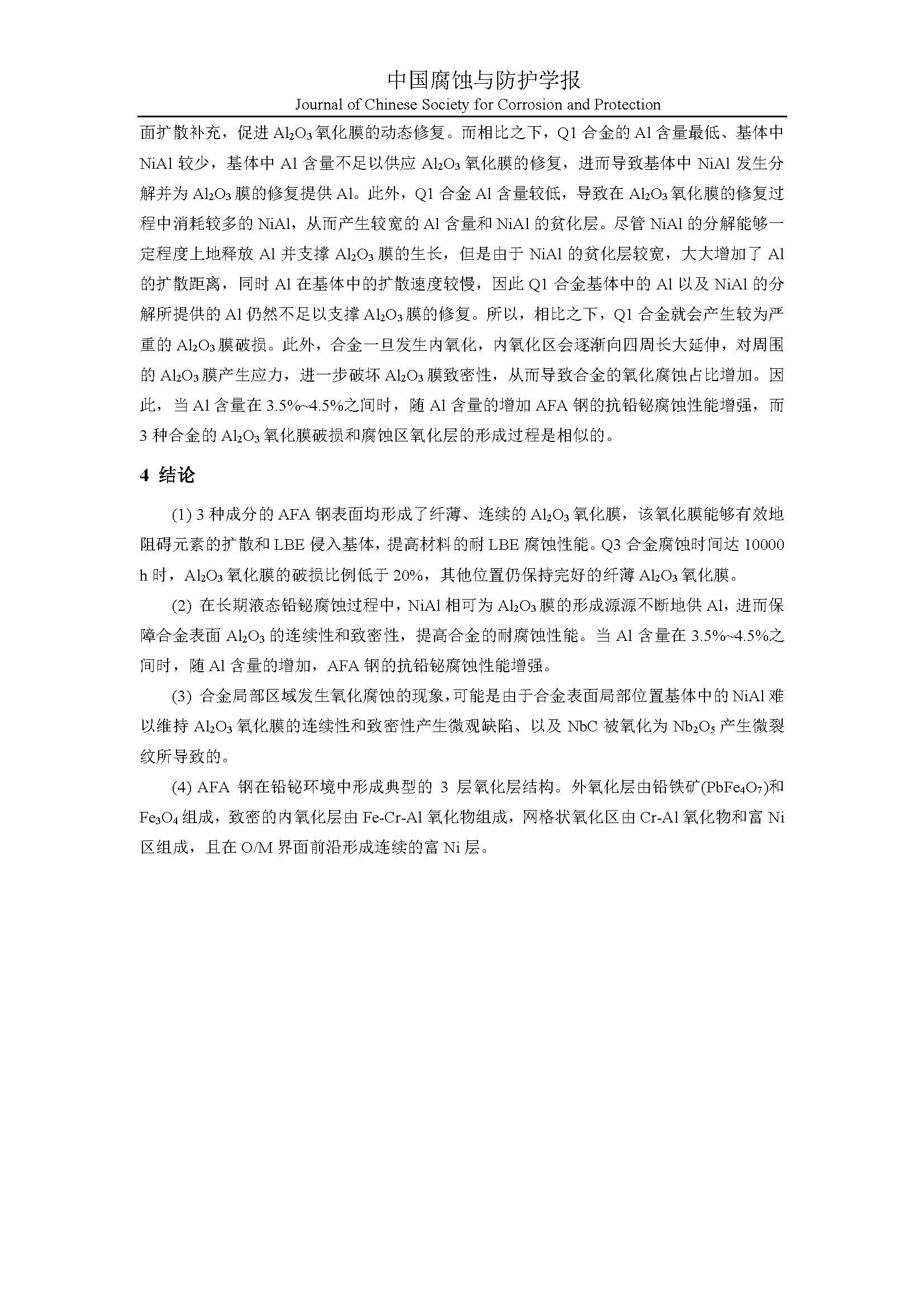 Al含量对AFA钢耐铅铋腐蚀性能的影响