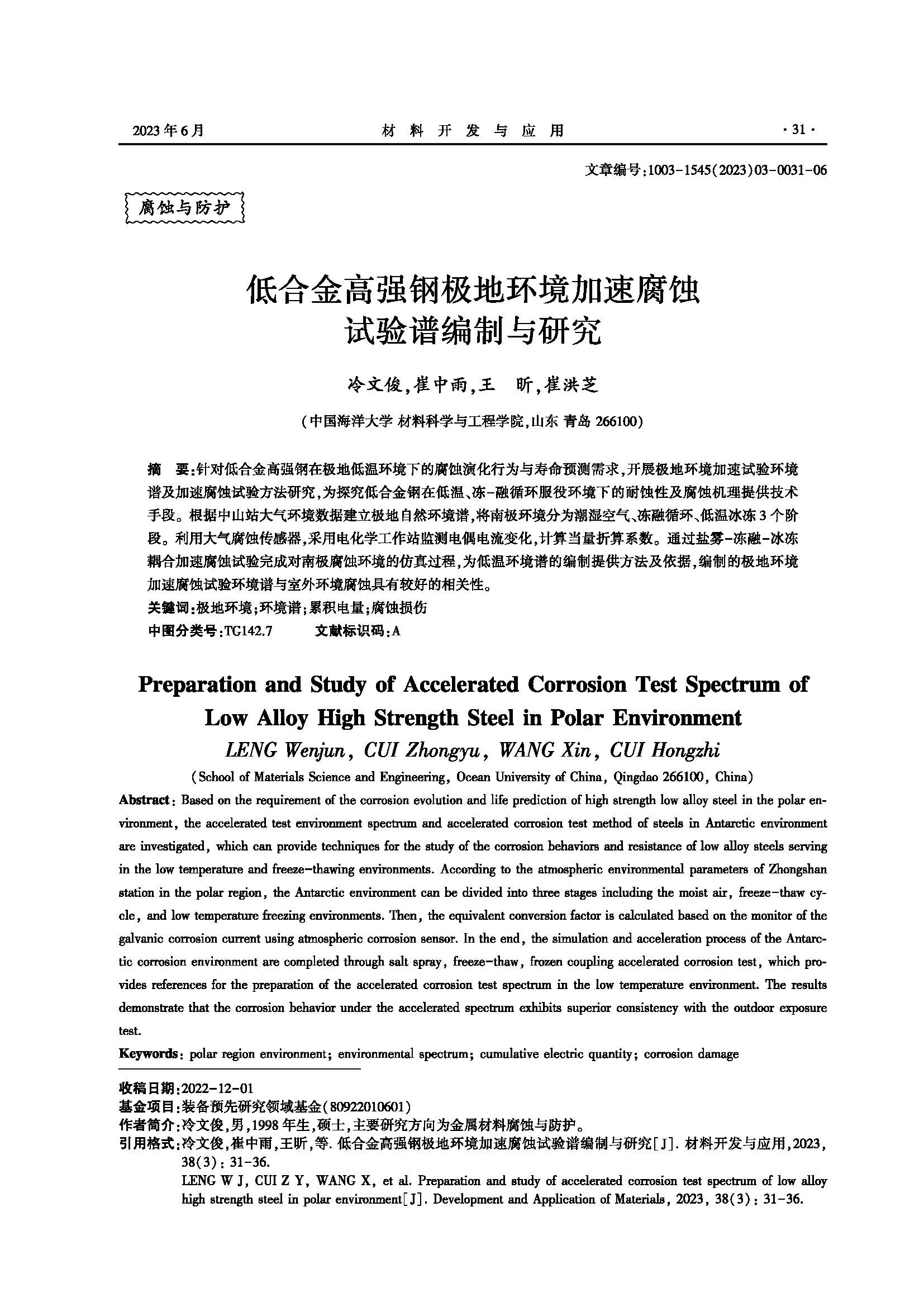 低合金高强钢极地环境加速腐蚀试验谱编制与研究