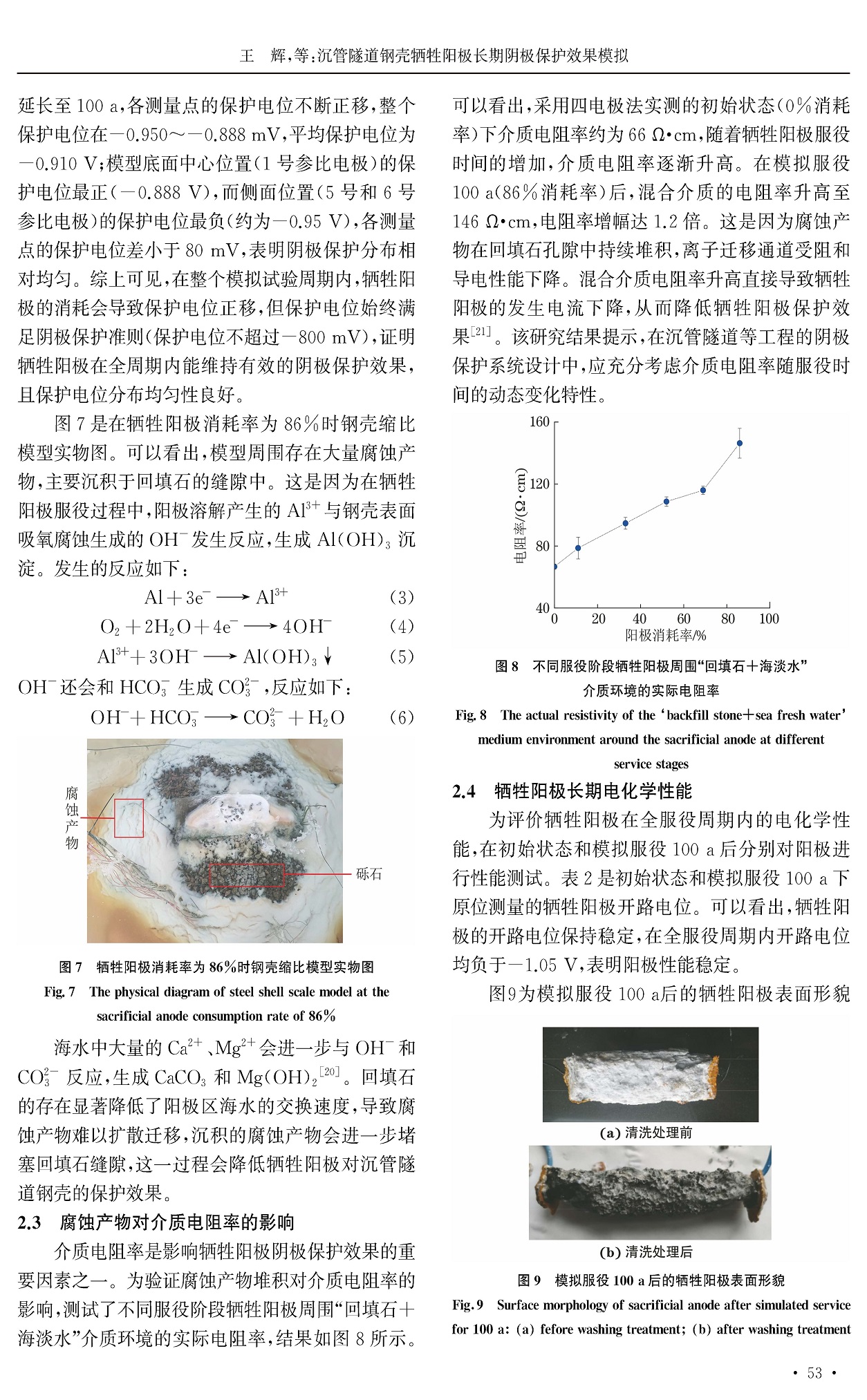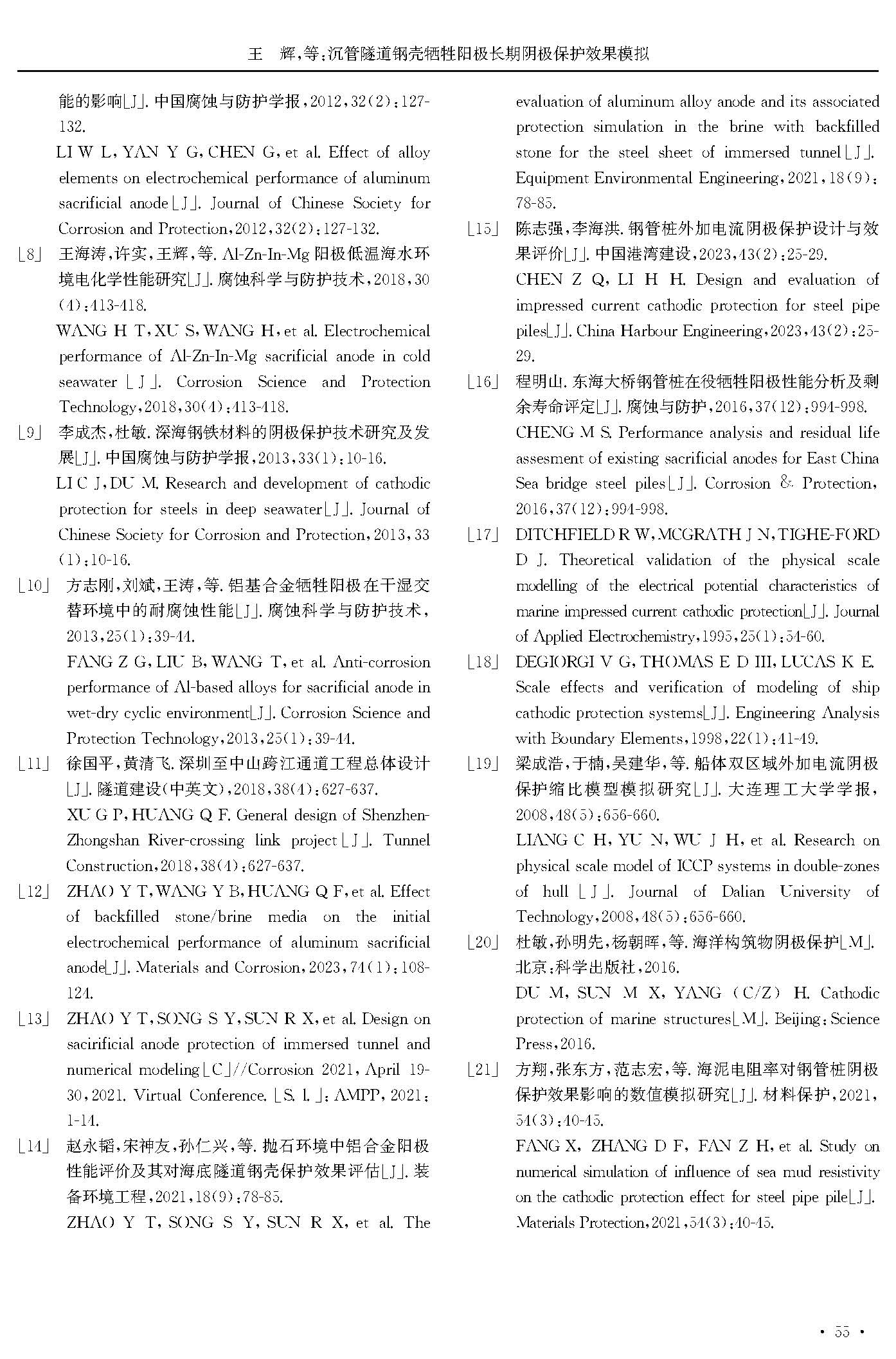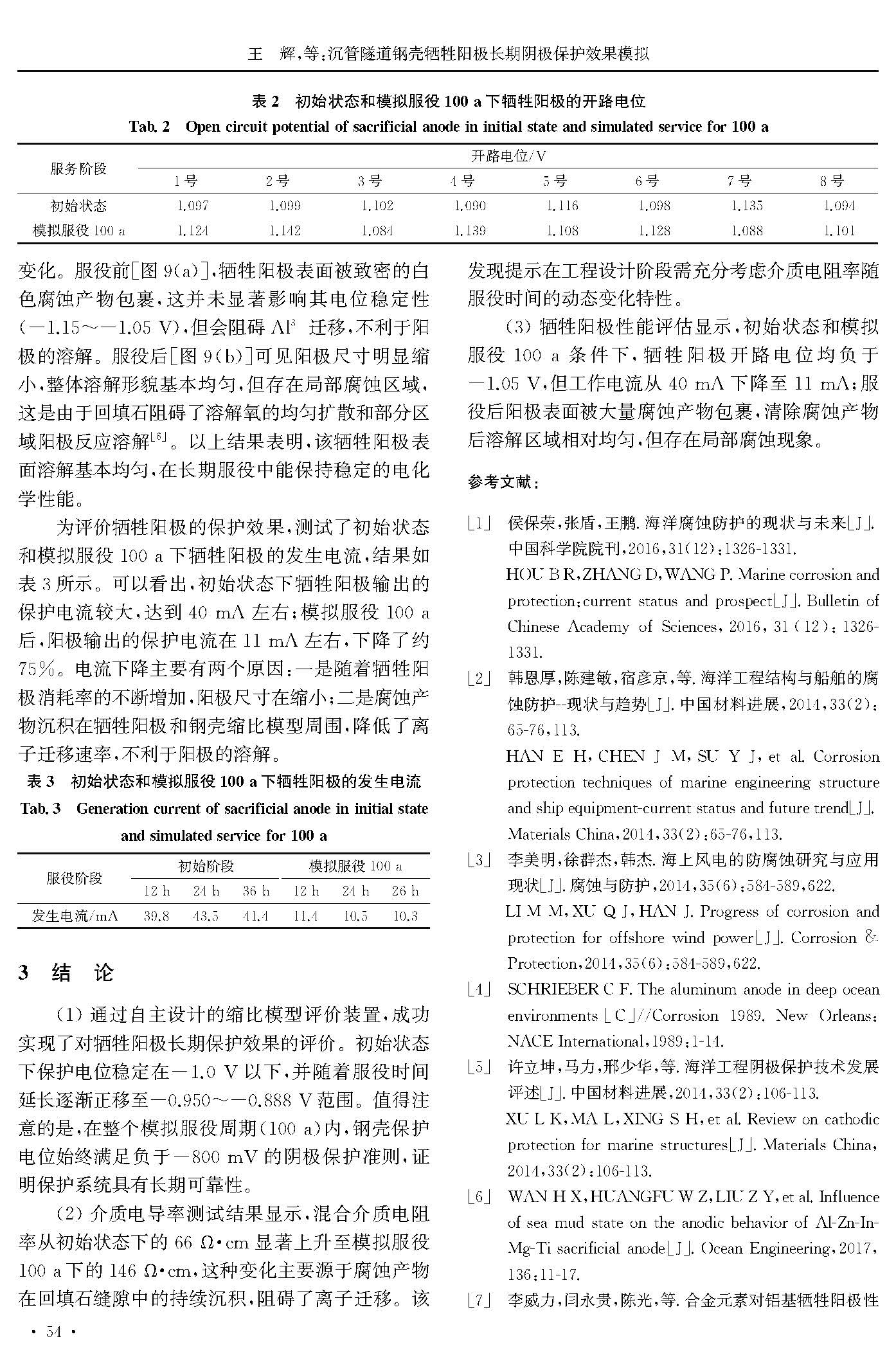 沉管隧道钢壳牺牲阳极长期阴极保护效果模拟