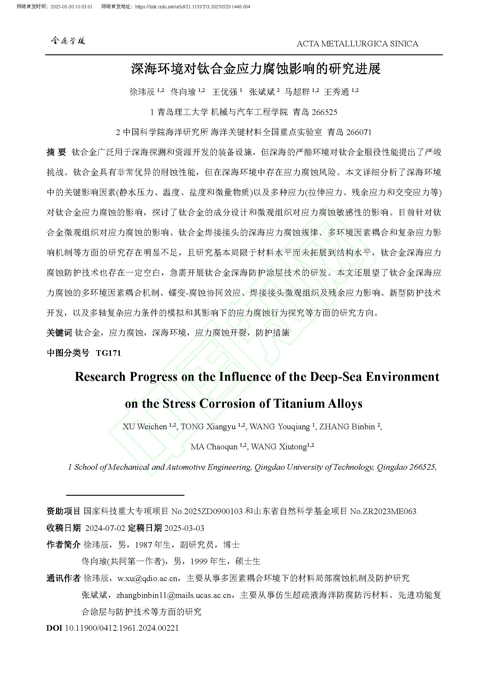 作者:徐玮辰,佟向瑜,王优强,张斌斌,马超群,王秀通