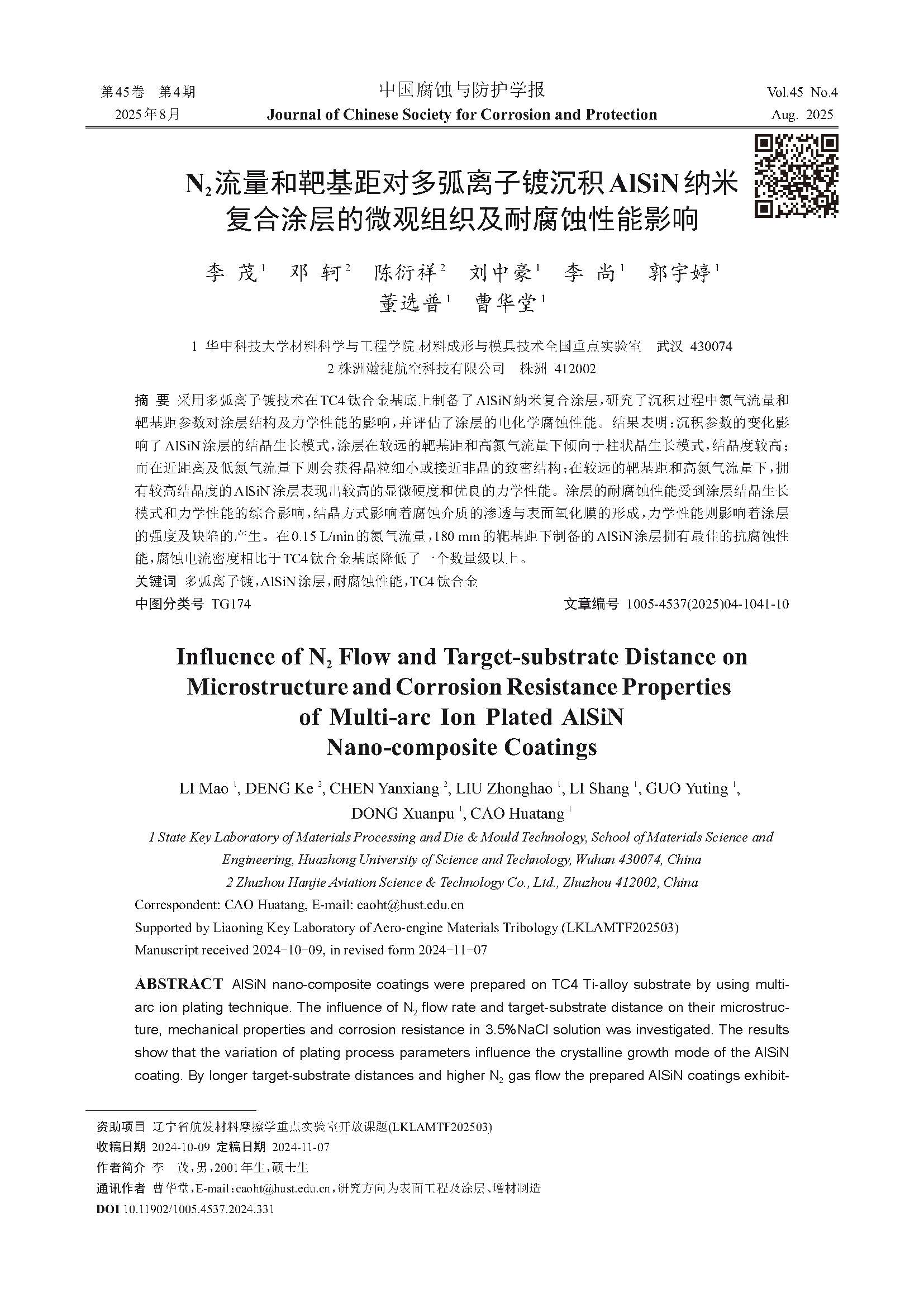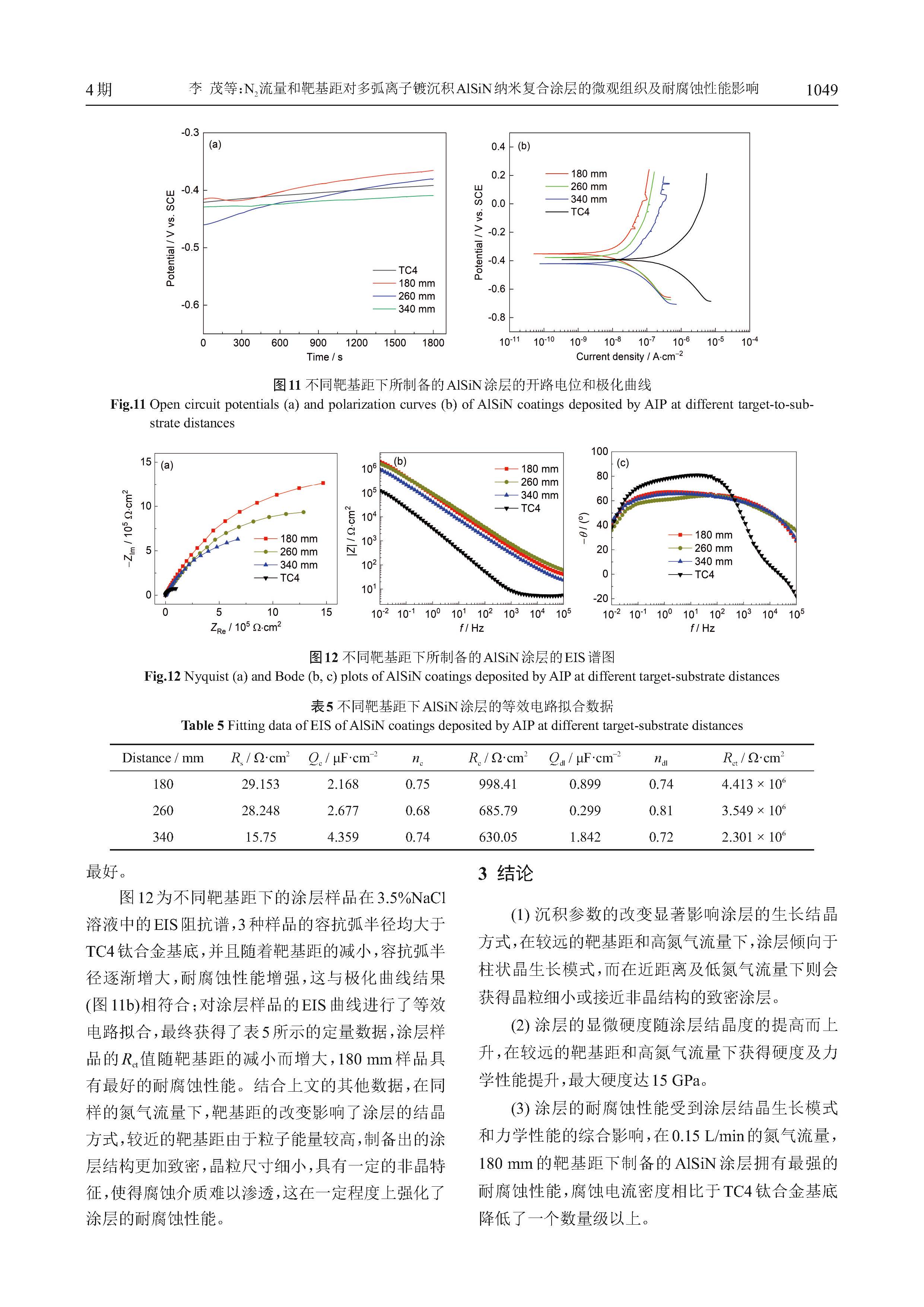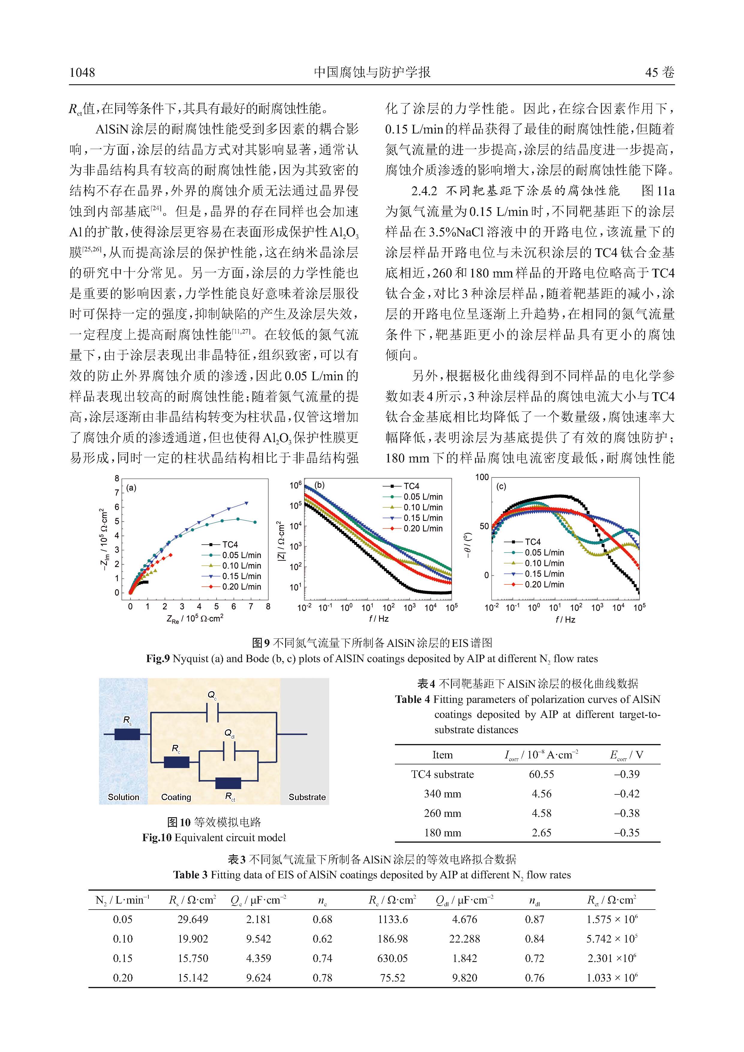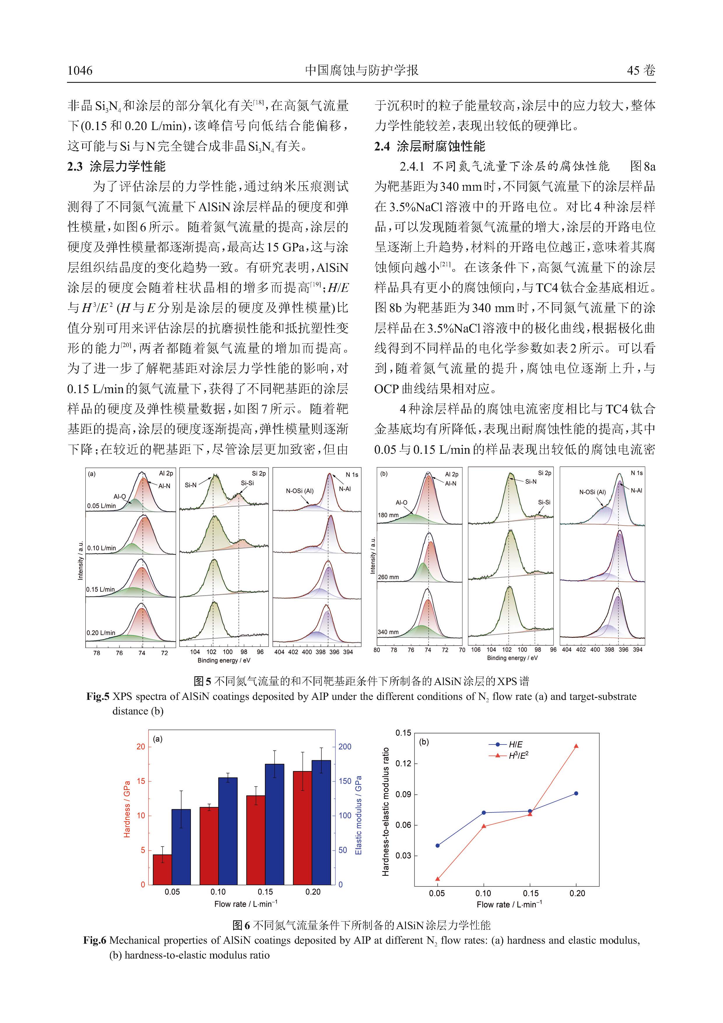 N2流量和靶基距对多弧离子镀沉积AlSiN纳米复合涂层的微观组织及耐腐蚀性能影响