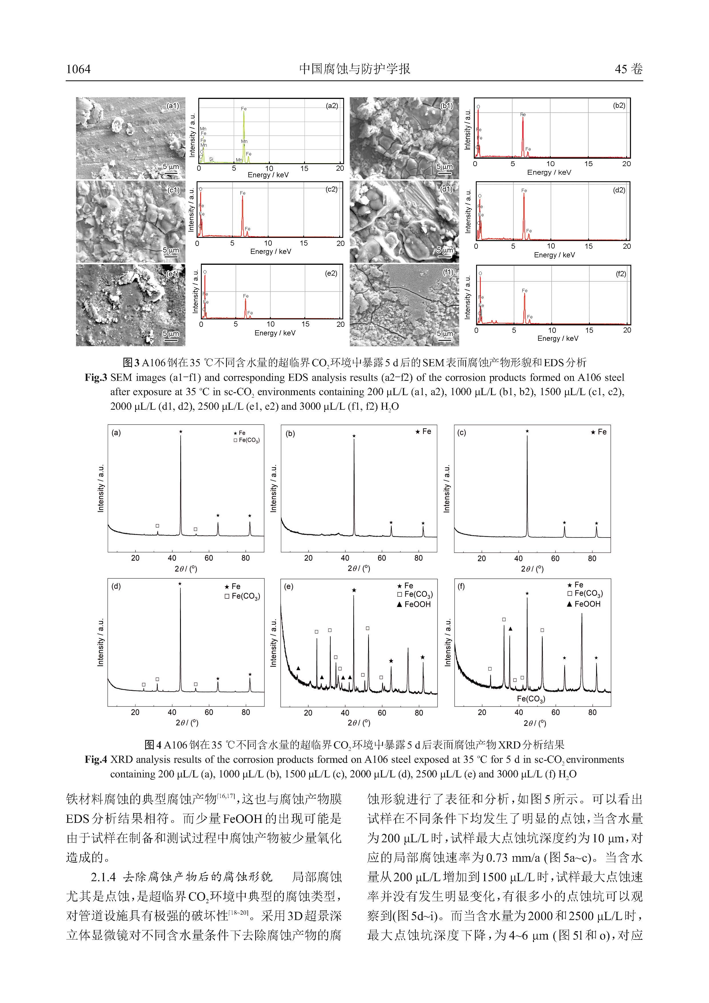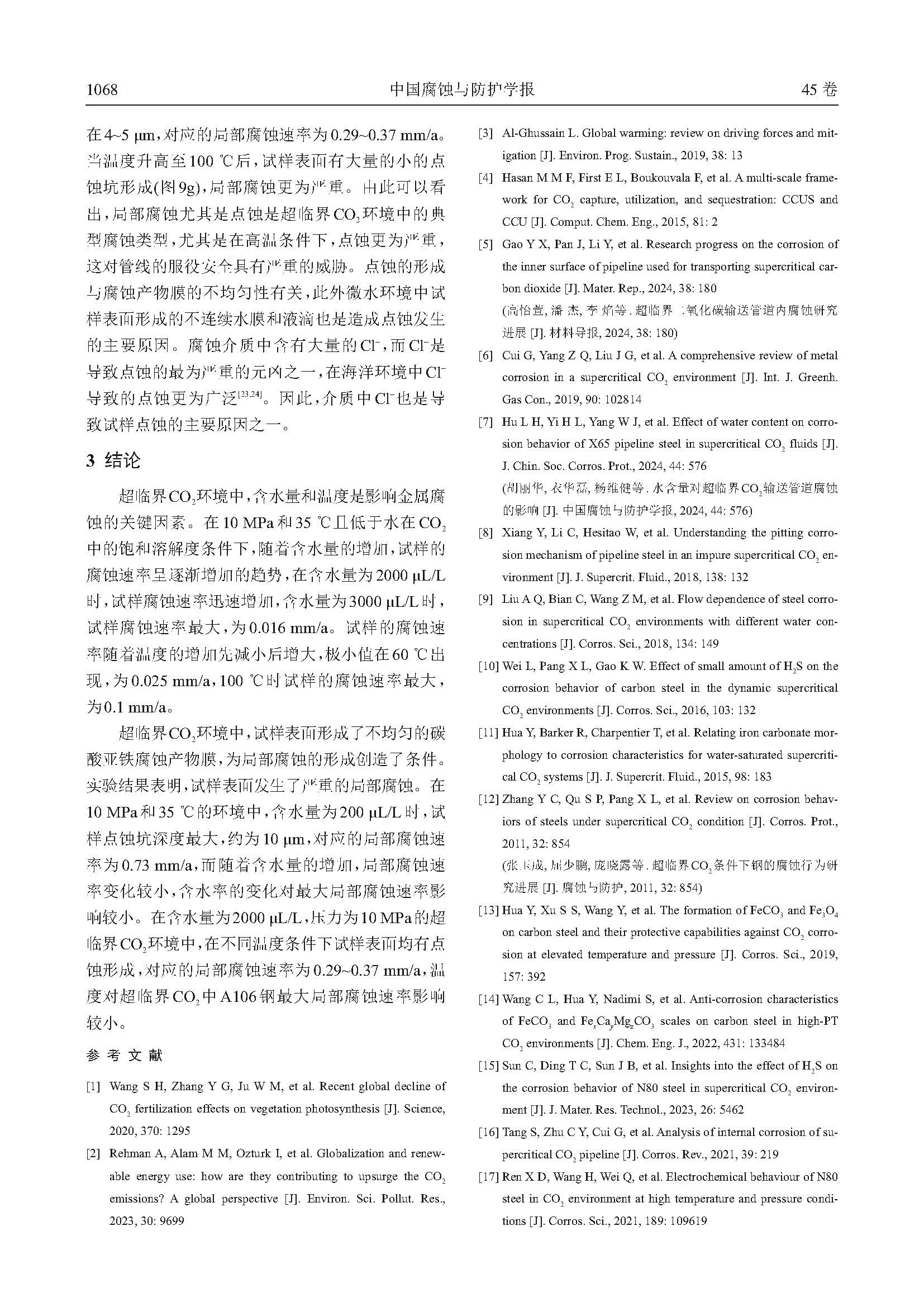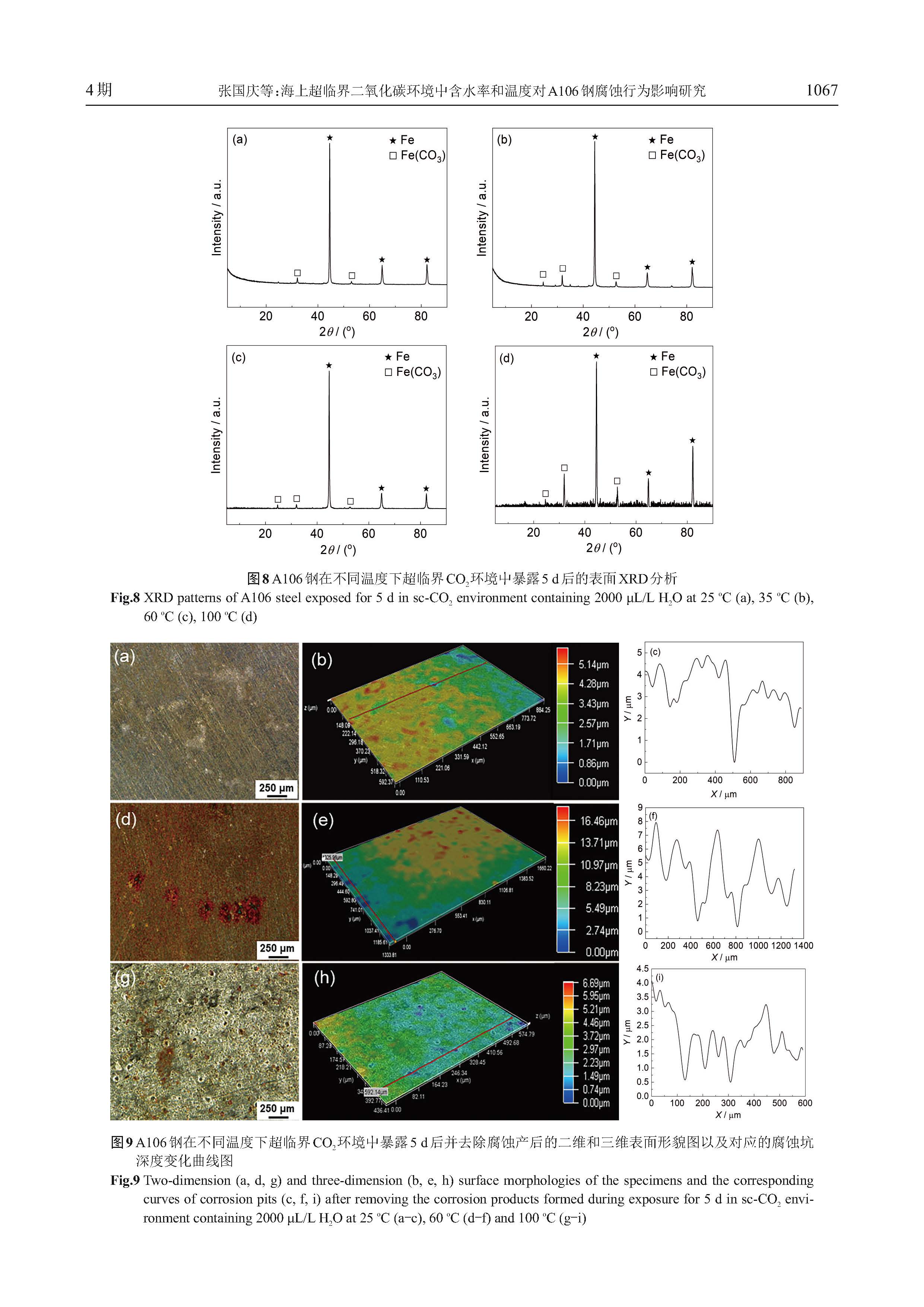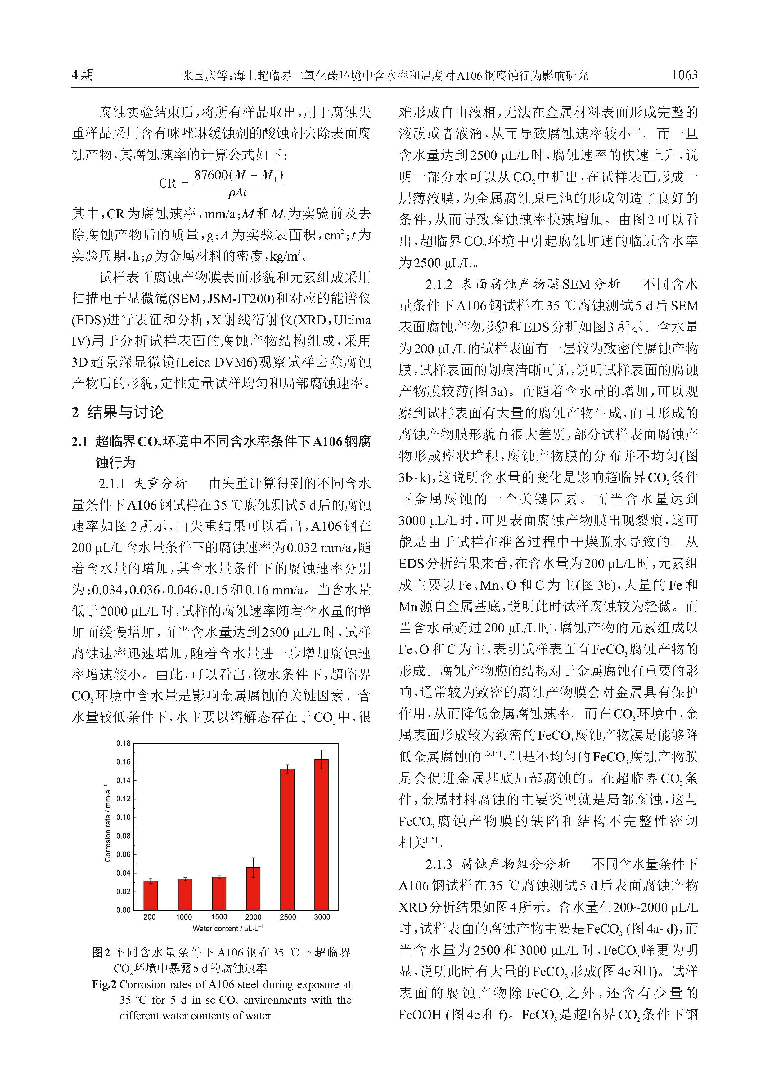 海上超临界二氧化碳环境中含水率和温度对A106钢腐蚀行为影响研究
