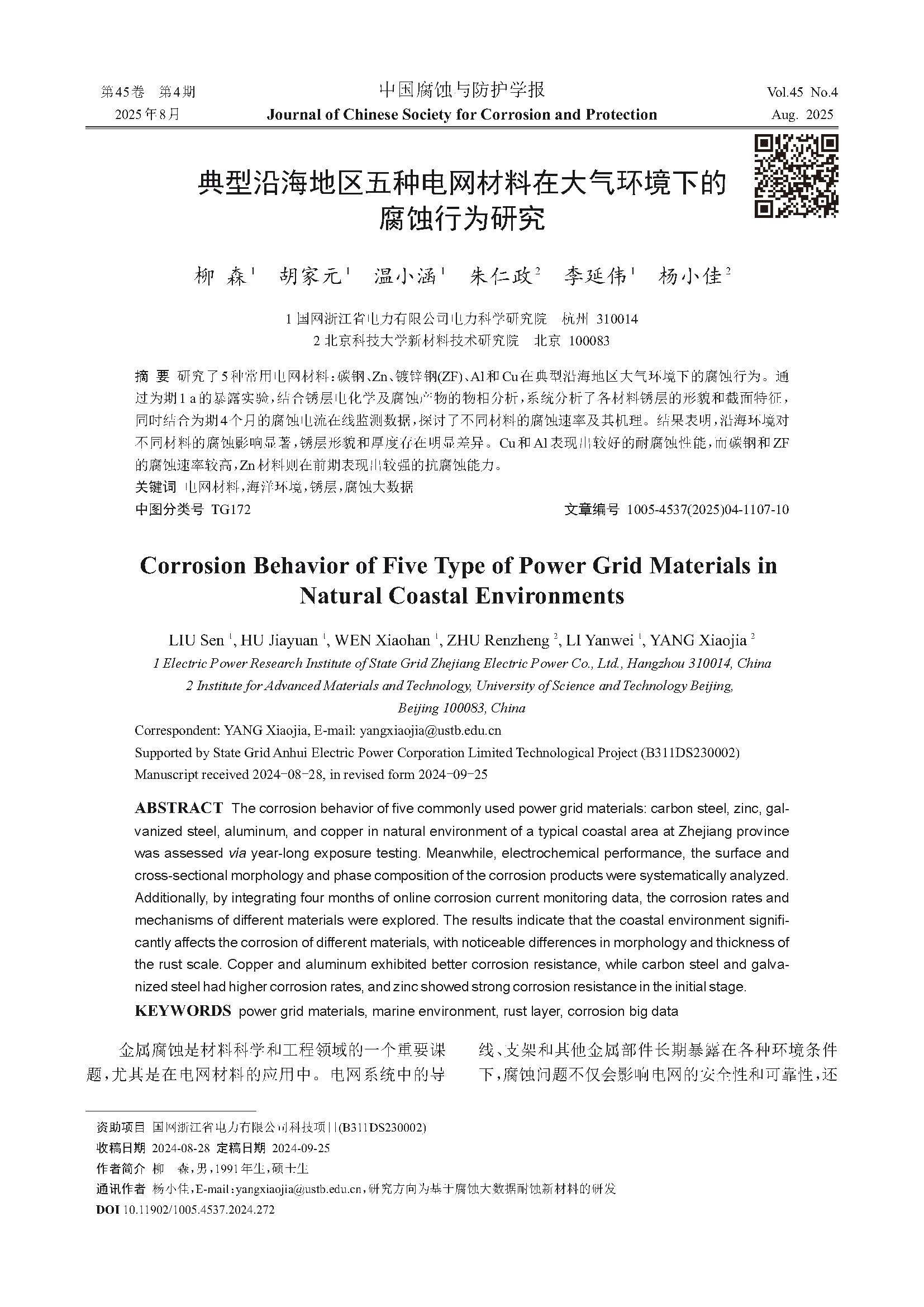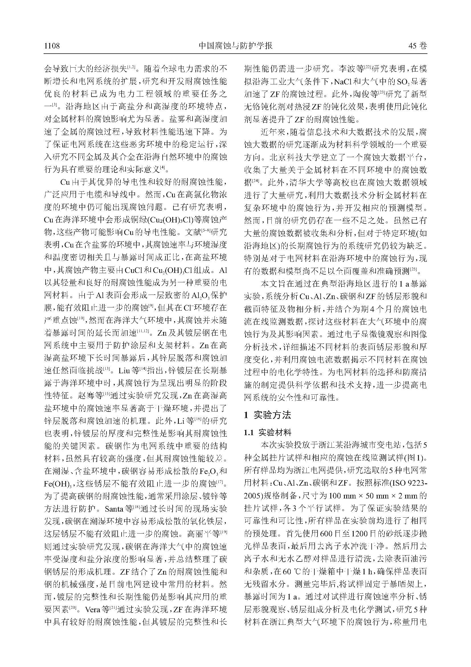 典型沿海地区五种电网材料在大气环境下的腐蚀行为研究