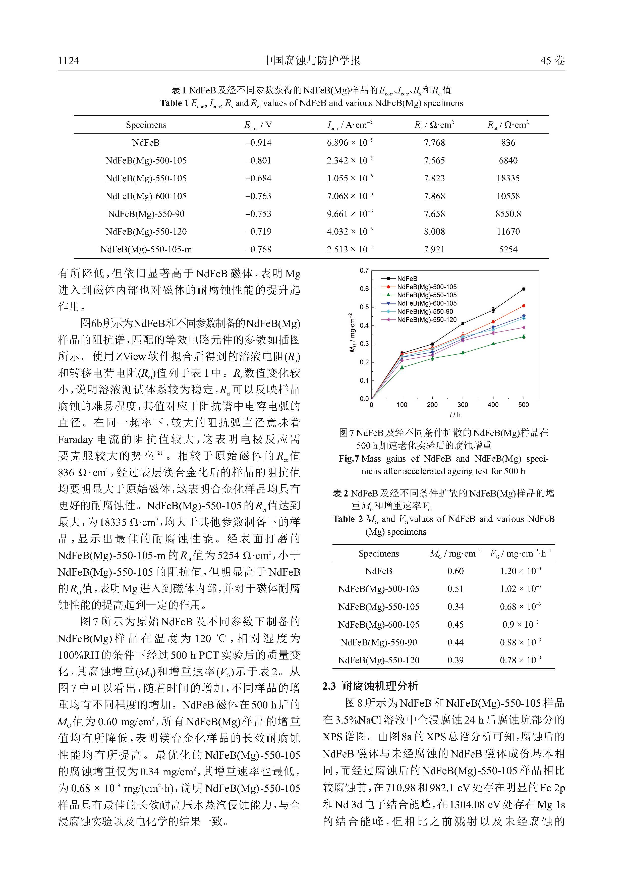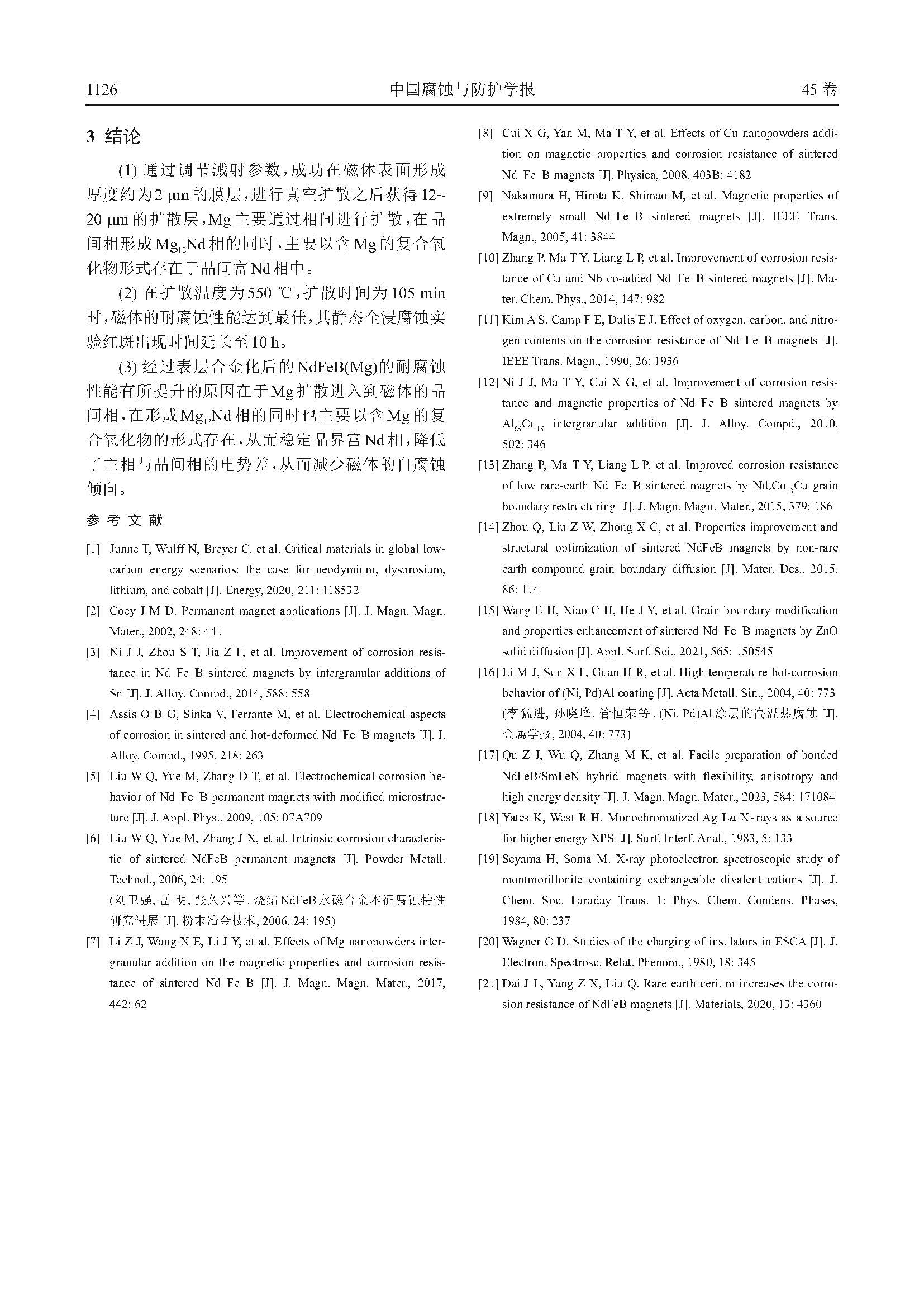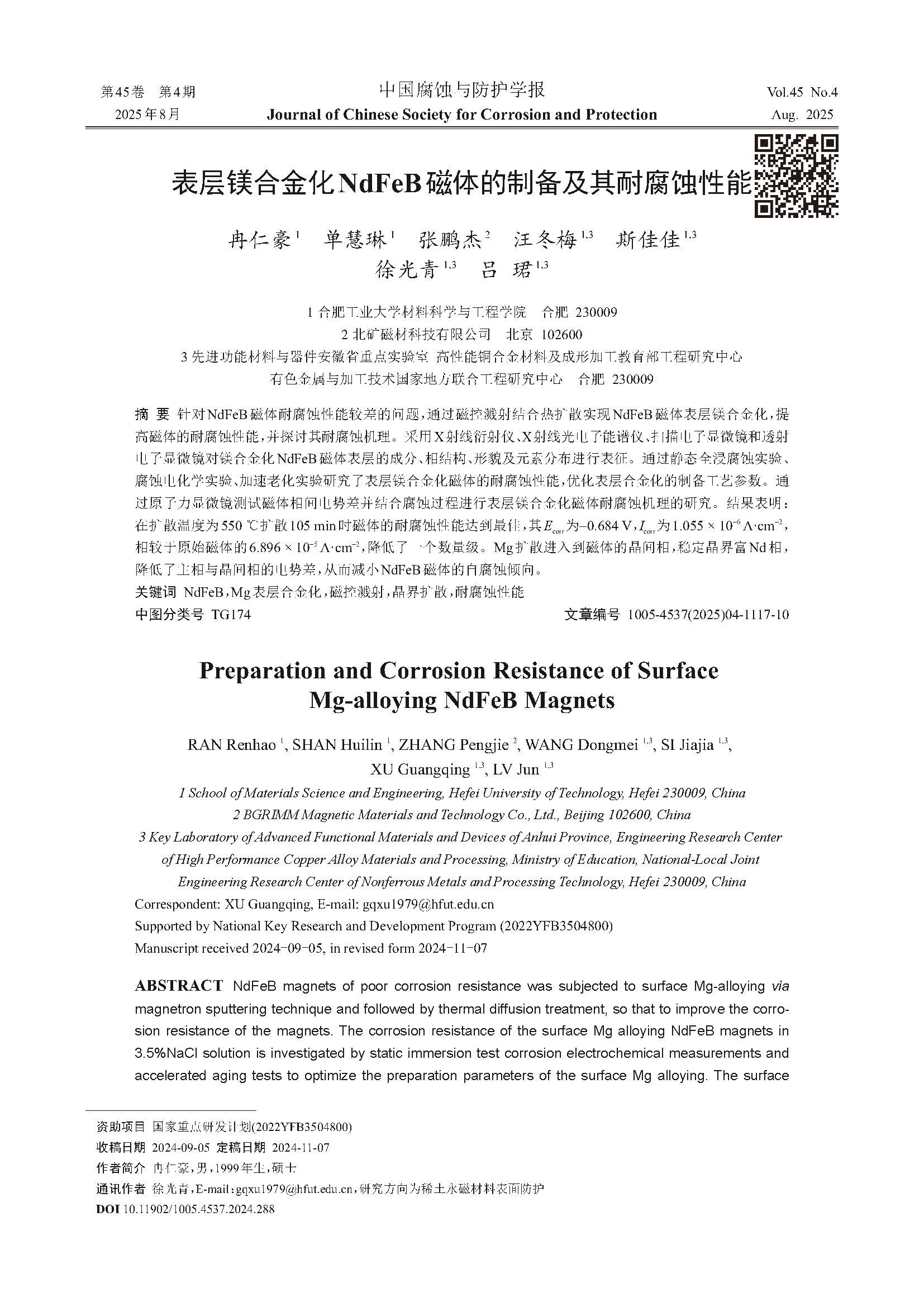 表层镁合金化NdFeB磁体的制备及其耐腐蚀性能