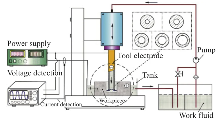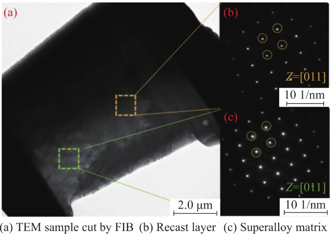 气膜冷却技术是支撑航空发动机热端部件承温能力提升的关键核心技术,使冷却气流经过气膜孔等冷却结构喷射而出,形成覆盖热端部件表面的冷却气膜,使其免受高温燃气的直接冲击。以涡轮叶片为例,其气膜冷却原理如图1所示。气膜孔的加工精度及质量决定了涡轮叶片的可靠性,进而影响着航空发动机整机的安全性。因此,对气膜孔提出了极为严苛的验收要求,也对其制造技术提出了挑战。在加工精度方面,主要评价要素包括孔径、孔位、圆度、圆柱度、轴线矢量角度、孔壁粗糙度及完整性等,它们决定了冷却气流流量、出射位置及角度、射流速度等,进而影响冷却气膜覆盖效率。在加工质量方面,主要关注不同制孔工艺所形成的孔壁/孔口处缺陷形态及深度,超标缺陷可能导致叶片在承受复杂交变载荷时发生断裂。据不完全统计,半数以上的发动机故障与发动机叶片的损伤与断裂有关。 图1 涡轮叶片气膜冷却原理示意图 涡轮叶片基材通常为难加工高温合金材料,气膜孔孔径一般为0.3~0.6mm,特别针对大倾角斜孔的深径比可高达13:1。因此,气膜孔加工通常采用特种工艺方法,主要包括电火花加工(Electrical-Discharged Machining,EDM)、电化学加工(Electrochemical Machining,ECM)与激光加工。随着叶片结构与制孔需求的多样化发展,不同制孔工艺也相应得到了快速发展,呈现出百家争鸣的态势。然而,气膜孔检测技术的发展则略显缓慢。其原因一方面与小孔几何尺寸及冶金质量的数据采集难度有关,另一方面也与单件叶片气膜孔数量众多、难以匹配制孔的生产节拍有关。事实上,将所有气膜孔的全特征要素进行检测并不现实,高性能航空发动机上仅高压涡轮叶片就包含数万个气膜孔,因此制孔精度与质量更多依靠制造工艺的成熟度与稳定性。此外,随着航空发动机性能需求的提升,燃气涡轮进口温度不断攀升,对冷气覆盖效率提出更高的需求。孔型设计也由早期的简单直圆孔演变为复杂异型孔,如簸箕孔、圆锥孔、水滴孔、猫耳孔等,为制孔工艺方法与制造符合性评价提出了双重挑战。 近些年航空领域蓬勃发展,气膜孔制造及检测技术也随之掀起研究热潮,本文综述典型制孔工艺的前沿进展与应用情况,并结合设计需求发展进行趋势分析与总结归纳,进一步指出气膜冷却相关技术的发展方向。 01|气膜孔制孔工艺 01 电火花制孔 电火花制孔是目前涡轮叶片制孔领域技术最成熟、应用最广泛的工艺方法,其加工效率较高、稳定性较好。基于工具和工件(正、负电极)之间脉冲性火花放电来蚀除被加工材料,以达到对工件特定尺寸、形状及表面质量的加工效果。电火花制孔参数中的电流与脉宽决定了单脉冲能量的大小,对加工质量的影响较为显著,脉停(即脉冲间隔时间)与内冲液压力跟放电产物(即残渣)的输运过程密切相关,因此对孔壁质量和加工效率同样影响较大。事实上,电火花加工技术在制孔领域能够大显身手,正是得益于空心管状电极的成熟应用,解决了大深径比小孔加工排渣的难题。 图2为高速电火花小孔加工过程的示意图,电极尖端放电不断在孔底蚀除金属基体材料,空心管状电极使高压内冲液得以循环流动,将放电产生的残渣输运走,避免其在孔底堆积,进而使脉冲放电过程稳定持续地向下推进。由于放电加工主要通过热熔方式去除材料,不可避免地在孔壁形成重熔层等热致缺陷。此前有学者认为,热致缺陷可能导致叶片在长期服役后萌生孔壁裂纹,在交变载荷作用下进一步扩展,造成叶片断裂。然而,不同电火花制孔装备及工艺所形成的孔壁重熔层,尽管在介观尺度下仅能通过重熔层厚度加以区分,但在微观组织形态上却可能千差万别。 图2 基于空心管状电极的高速电火花小孔加工过程示意图 董涛等曾报道高温合金电火花加工所形成的重熔层内包含大量微孔洞、裂纹等缺陷,以及不同熔池间所形成的胞状枝晶界面。但本课题组则通过开发低温高压内冲液及高频窄脉宽电源,基于单晶高温合金外延生长技术形成了单晶态的孔壁重熔层,为过饱和的、与基体取向完全一致的FCC晶格结构固溶体(图3、图4)。进一步采用热处理控制单晶重熔层内部的γ’相析出,形成了与单晶基体组织形貌完全一致的孔壁,彻底消除了重熔层。但不可否认的是,重熔层内部的微观孔洞、粗糙的孔壁表面均无法通过热处理组织调控予以消除,相比于重熔层这些几何缺陷的存在,这些因素才更可能与失效有关,需要引起更为深入的关注。 图3 单晶高温合金外延生长基体及重熔层衍射斑 图4 热处理调控的孔壁重熔层微观形貌 02 电化学制孔 目前能相对成熟地应用于叶片制孔的电化学加工工艺包括电液束(图5)与电火花−电解(图6)复合加工。电液束加工为在空心玻璃管内插入电极丝,酸性电解液在压力作用下由玻璃管尖端流出形成循环,进而基于电化学腐蚀原理去除被加工材料。电化学加工的优势在于对热致缺陷的控制,但在酸性电解液中单晶高温合金的γ相相比于γ’相会被优先腐蚀,使孔壁无可避免地形成电化学腐蚀层。电火花−电解复合加工是将电火花小孔机的高压内冲液由去离子水替换为盐溶液,进而在电火花加工尖端放电的同时,通过侧壁的电解反应去除孔壁重熔层。 图5 电液束制孔示意图 图6 电火花−电解复合加工示意图 由于孔入口段相比于出口段经历的电解腐蚀时间更长,一般入口段的重