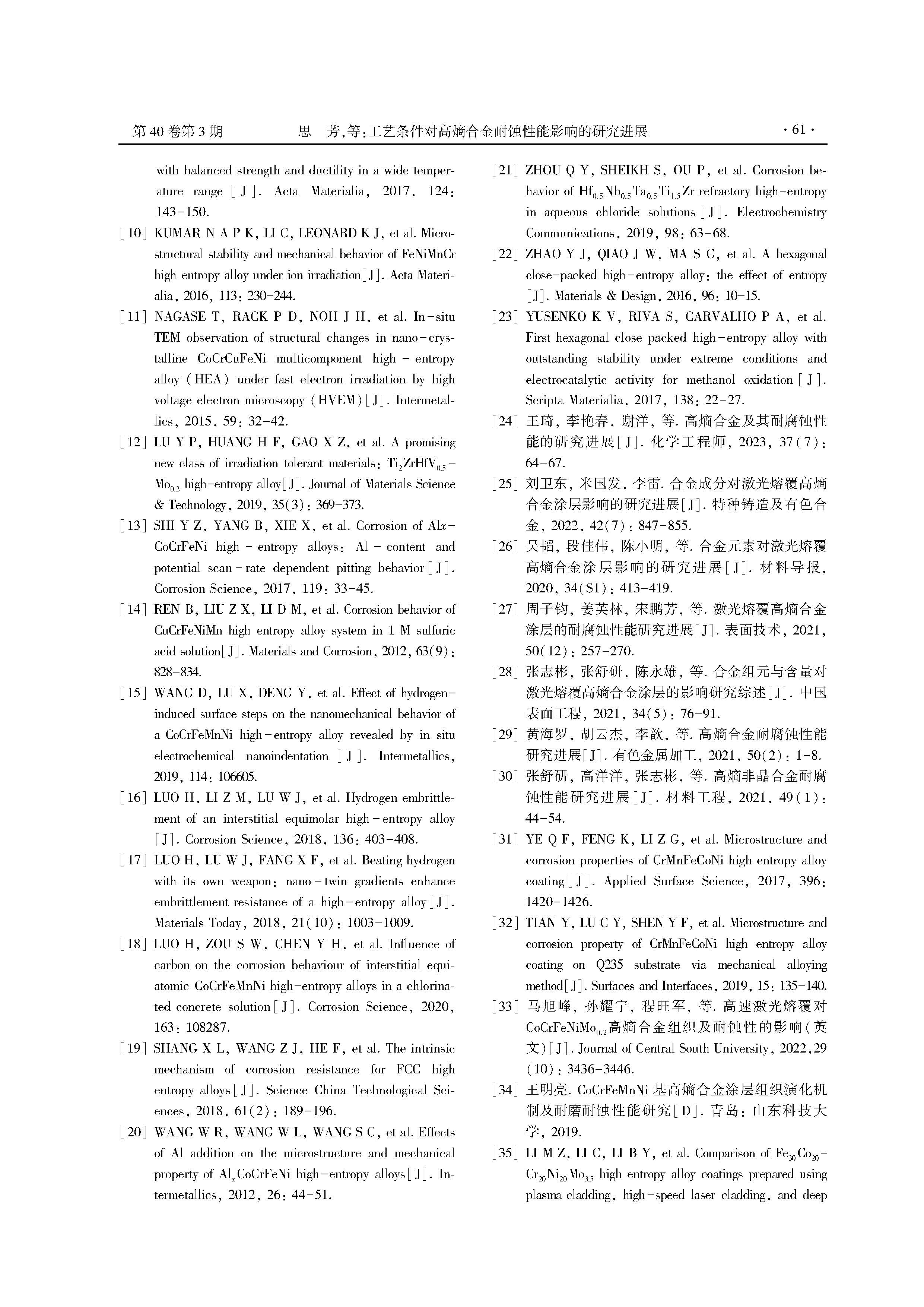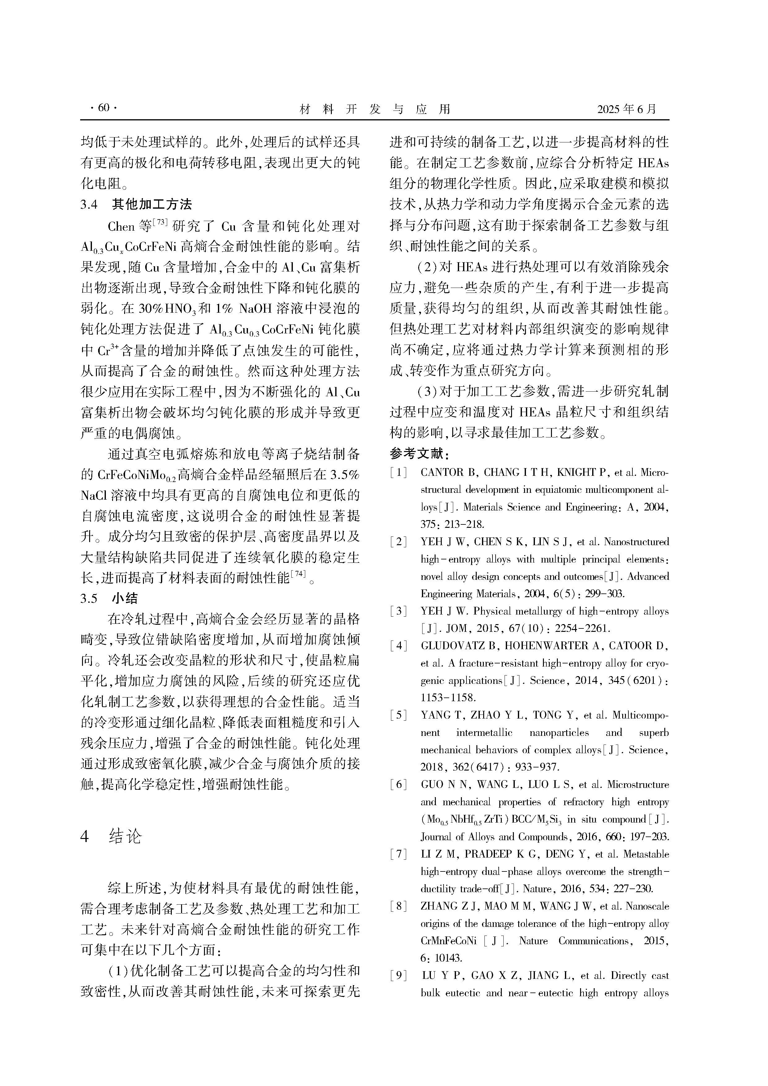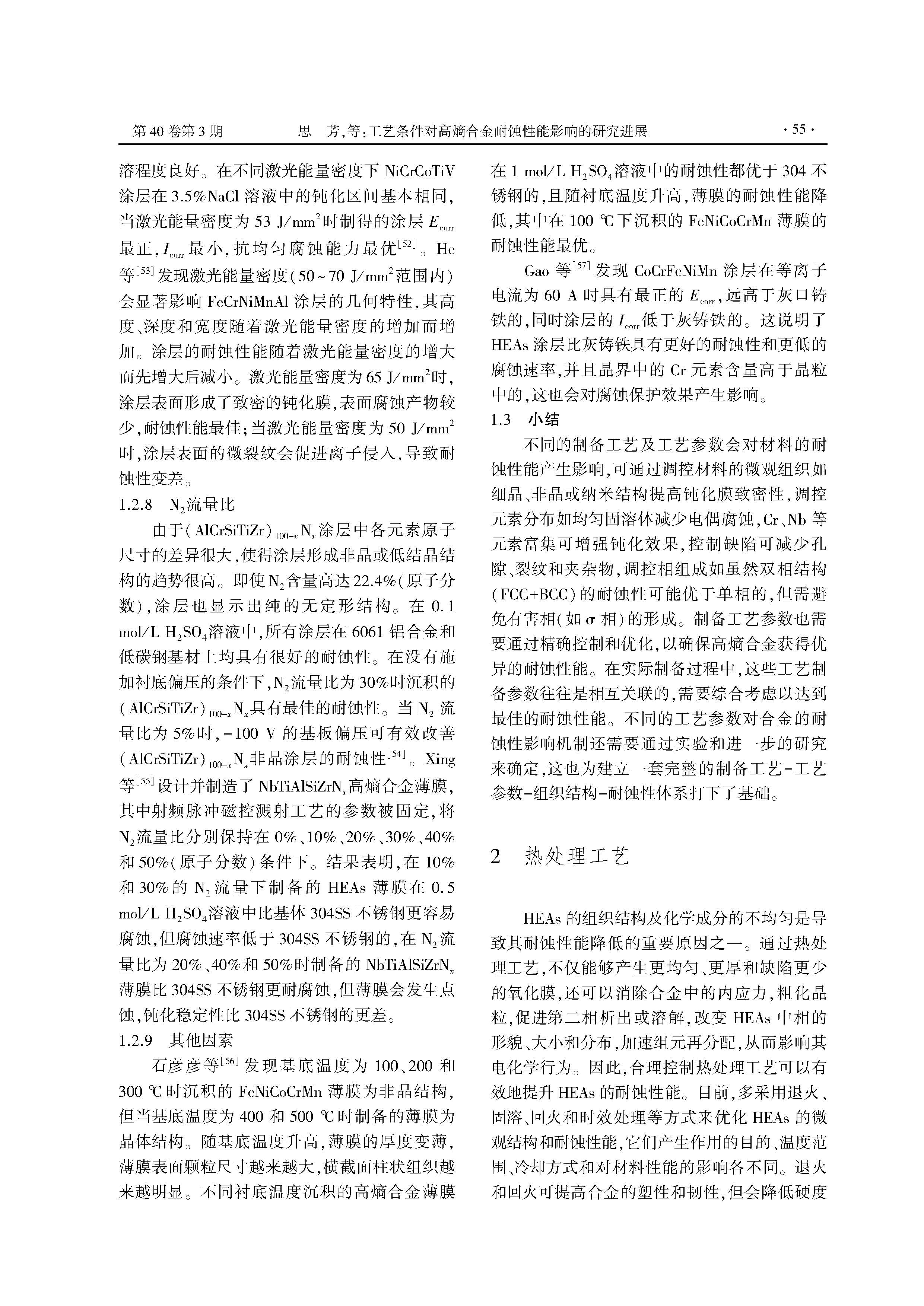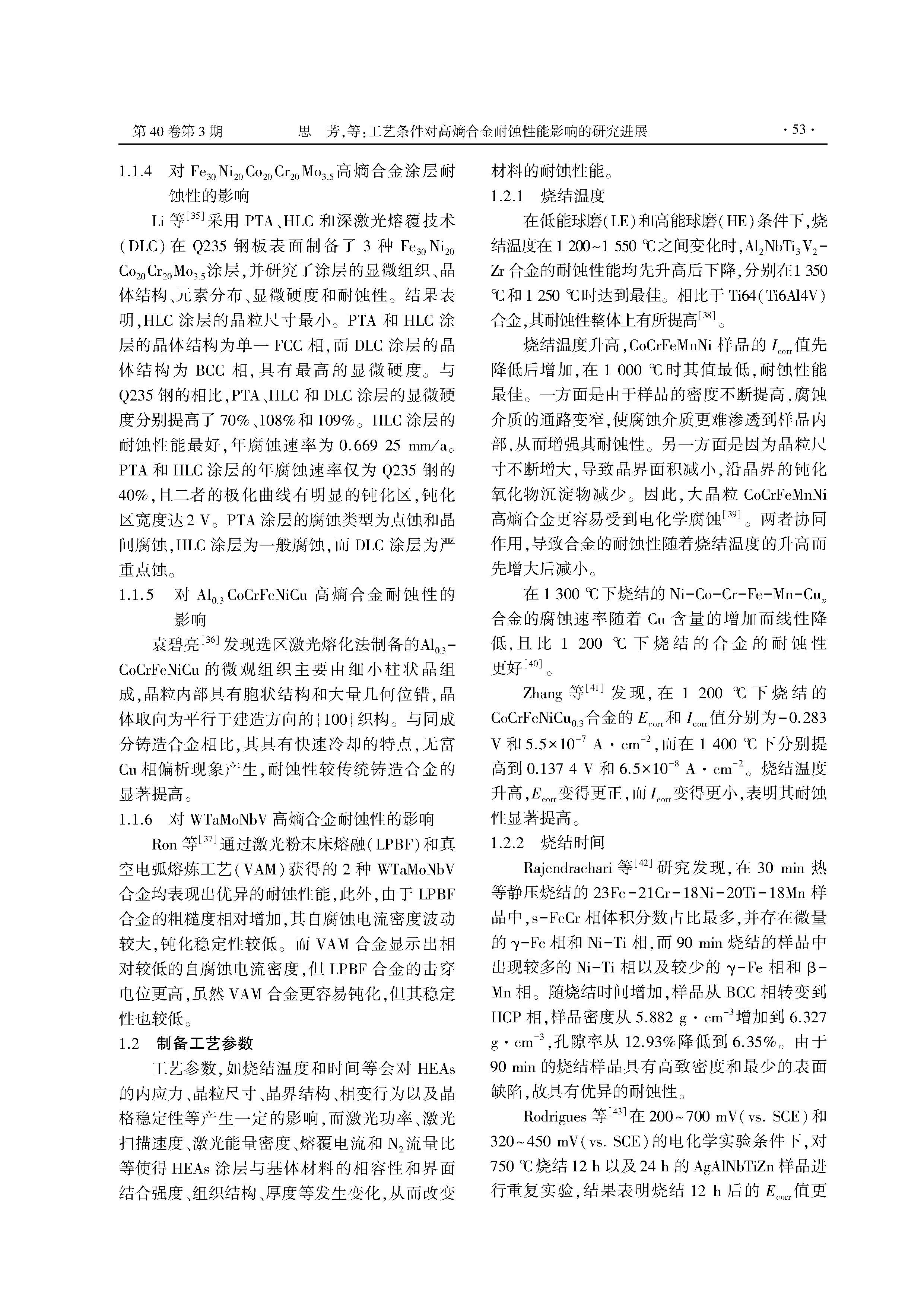 工艺条件对高熵合金耐蚀性能影响的研究进展
