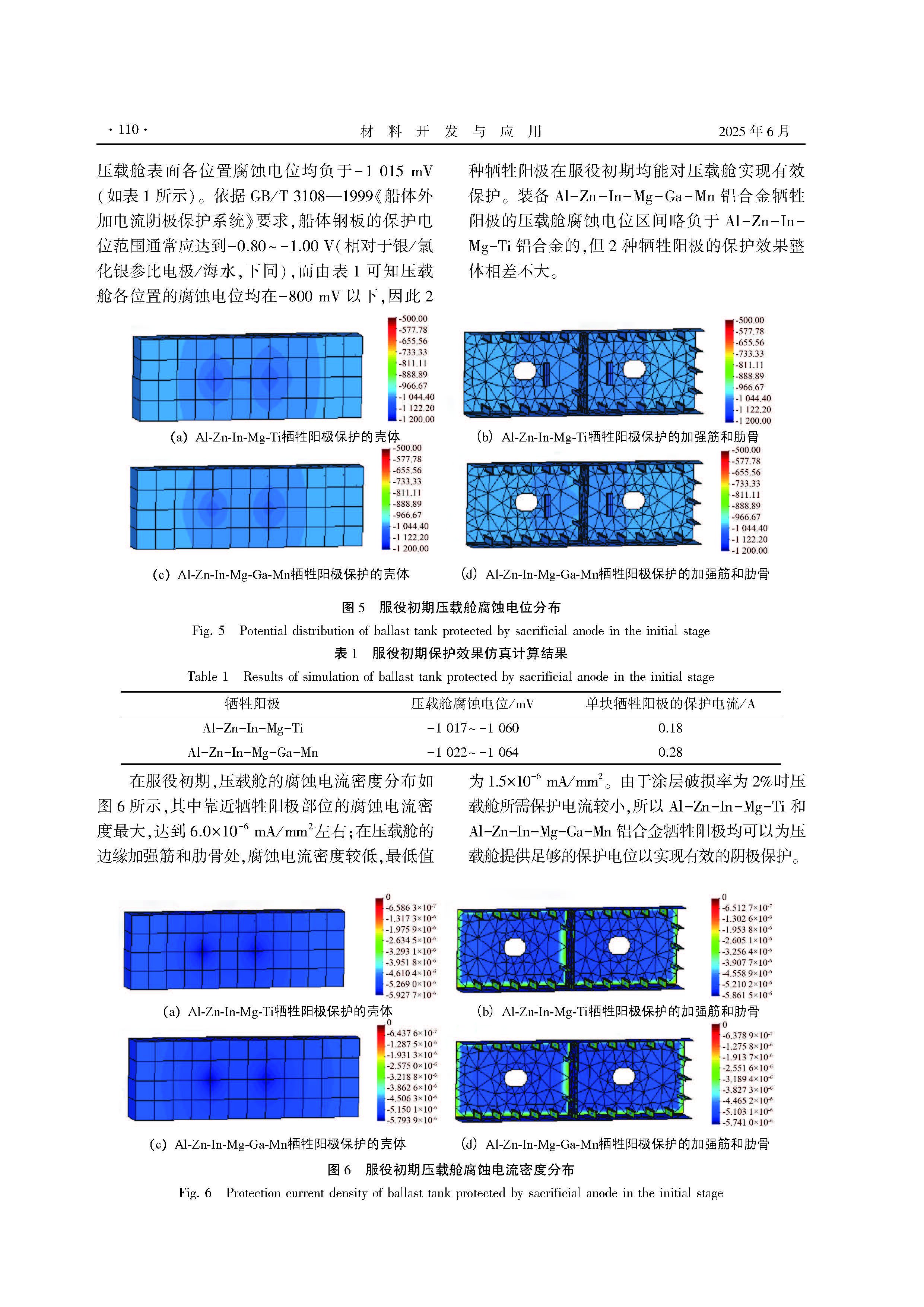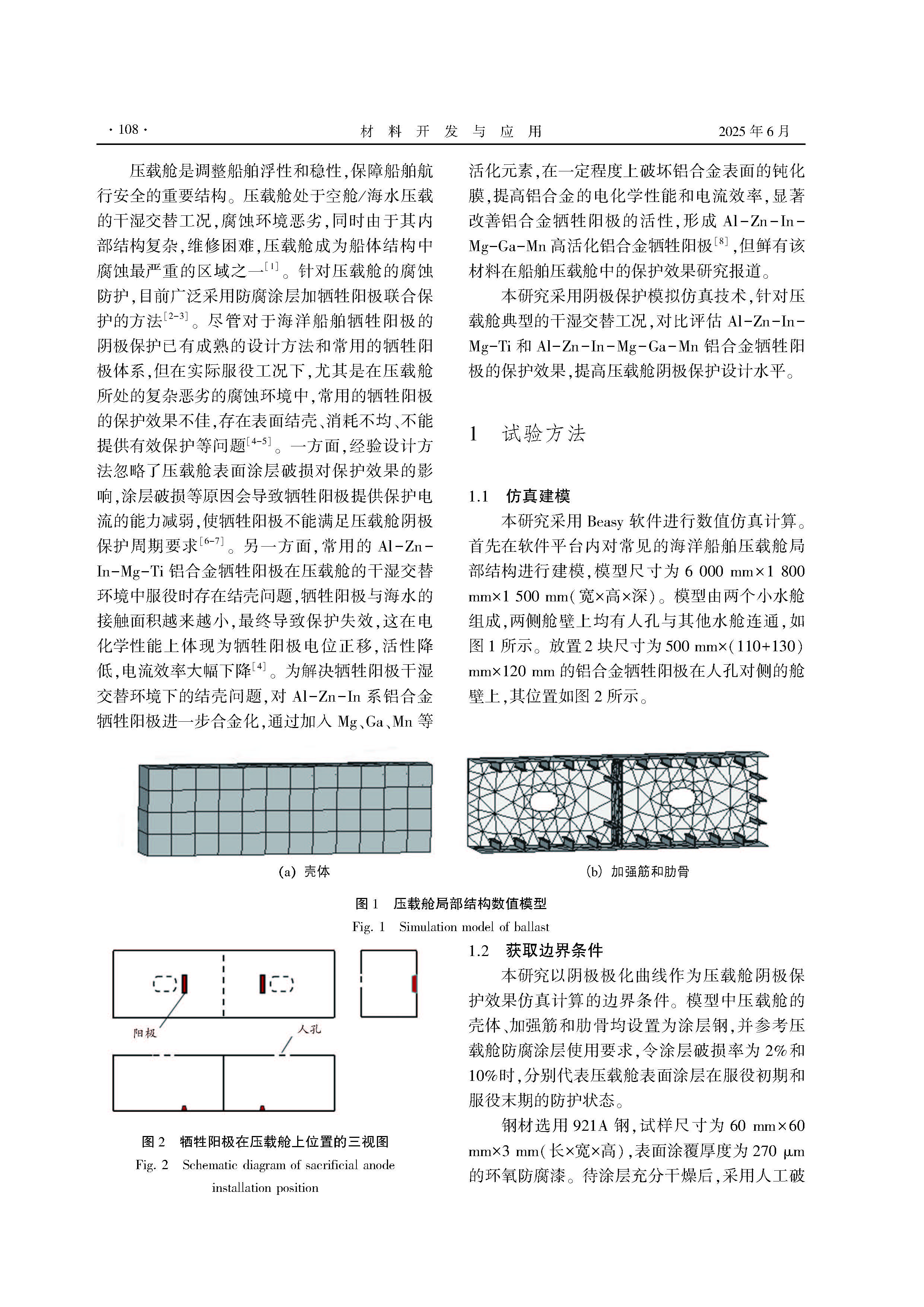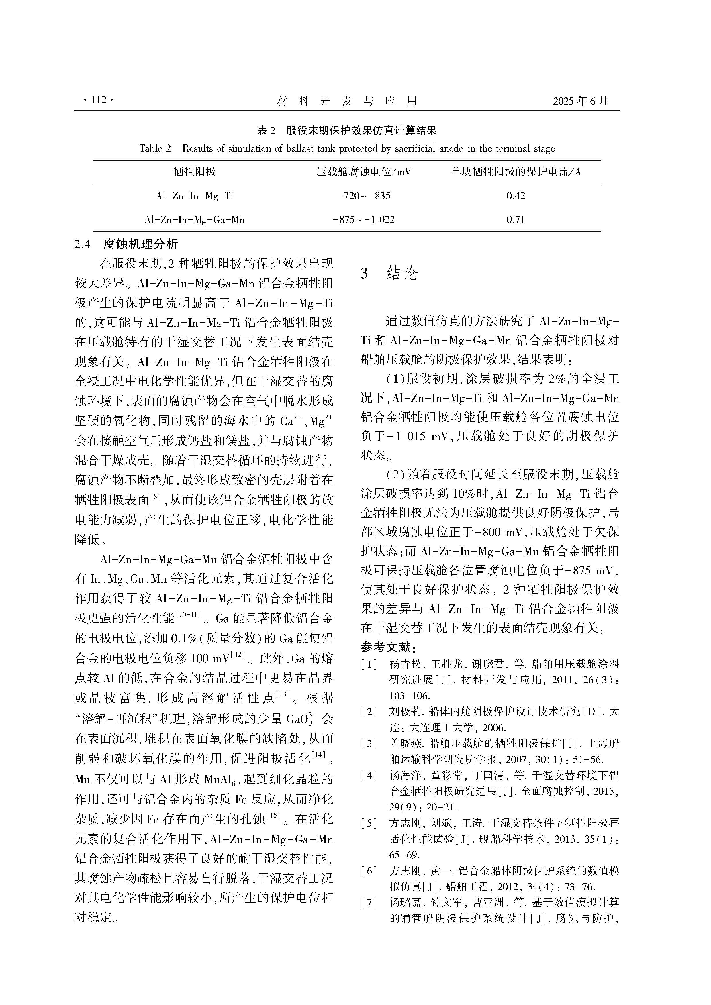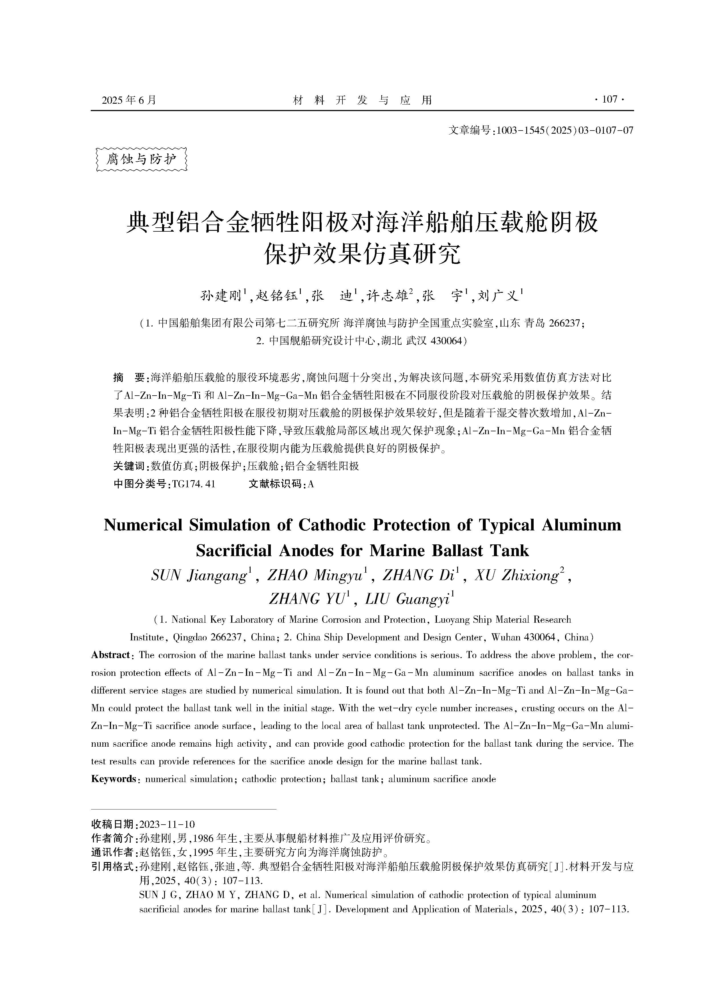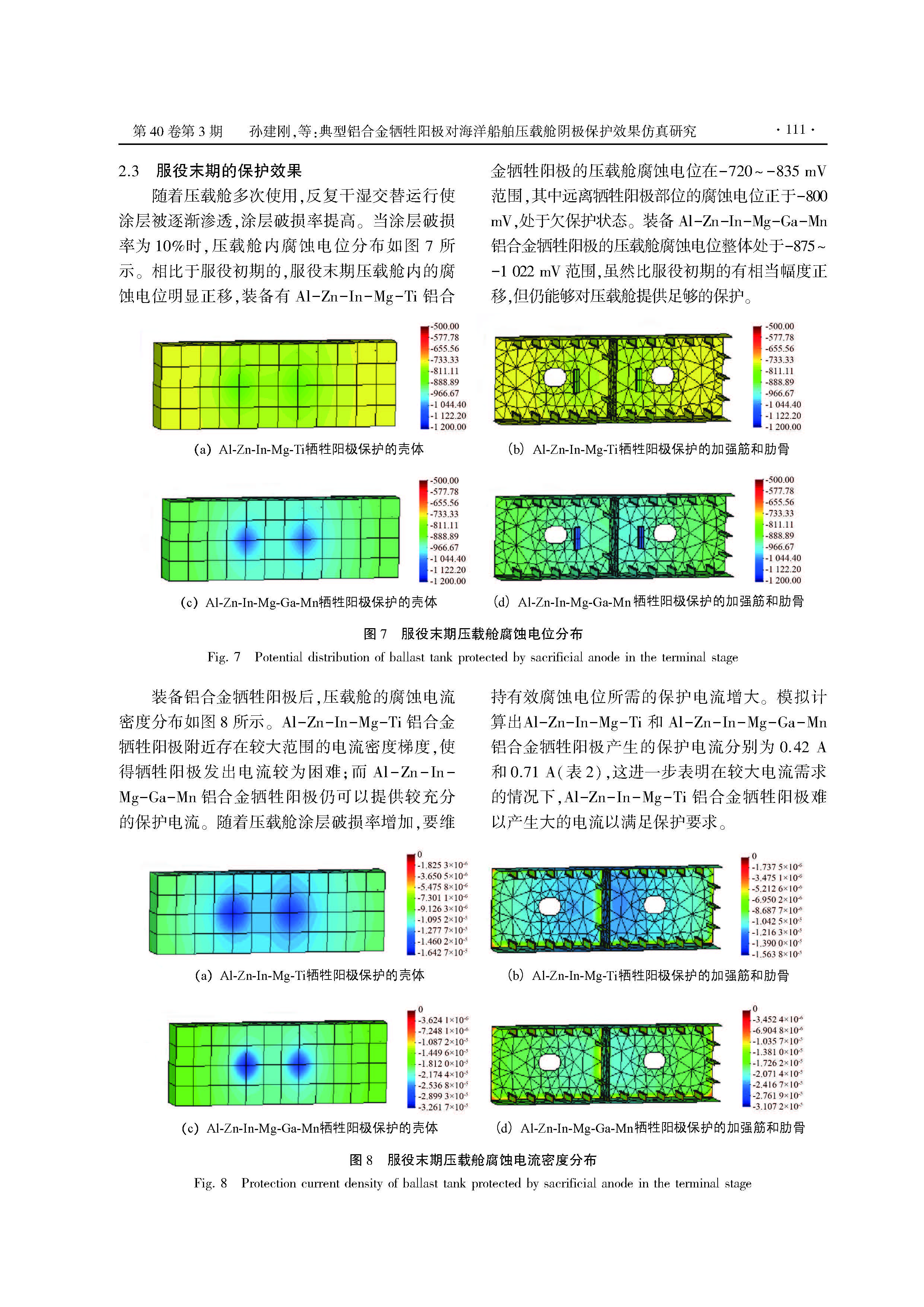 典型铝合金牺牲阳极对海洋船舶压载舱阴极保护效果仿真研究