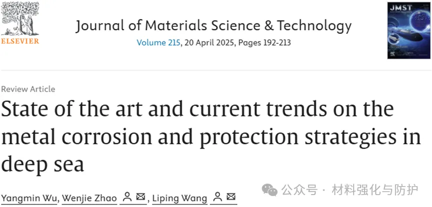 近日中国科学院宁波材料技术与工程研究所海洋关键材料全国重点实验室的王立平研究员和赵文杰研究员团队对深海环境中金属腐蚀与防护的最新研究进展进行了全面、深入的综述。文章以“State of the art and current trends on the metal corrosion and protection strategies in deep sea”为题发表在国际期刊《Journal of Materials Science & Technology》上,并入选为封面文章。下面小编根据该综述对深海金属腐蚀与防护研究进展进行总结介绍。