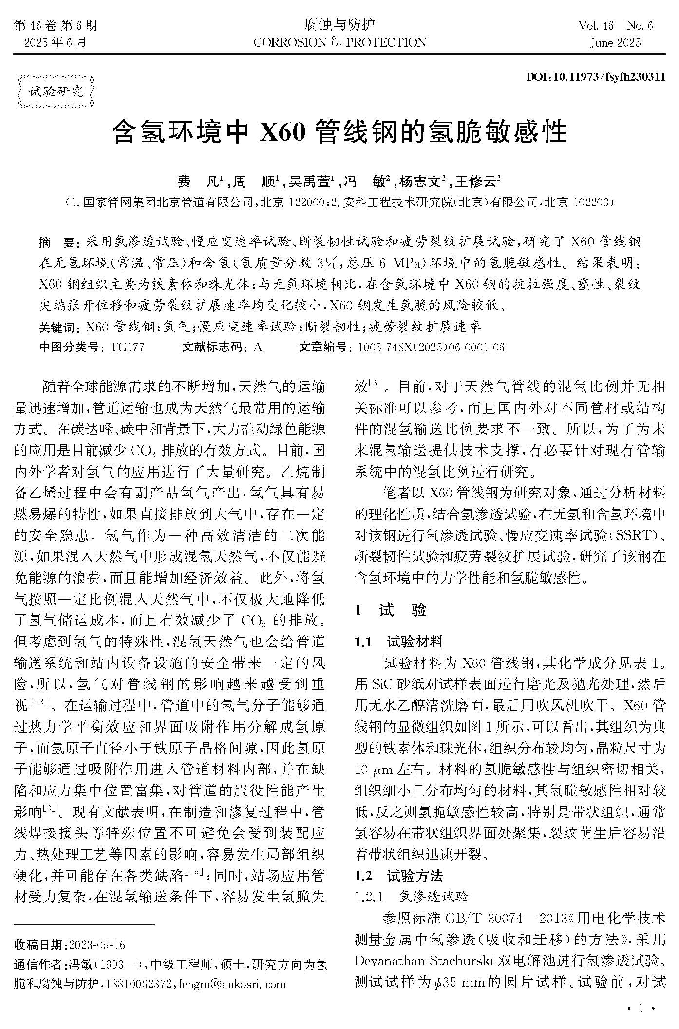 含氢环境中X60管线钢的氢脆敏感性