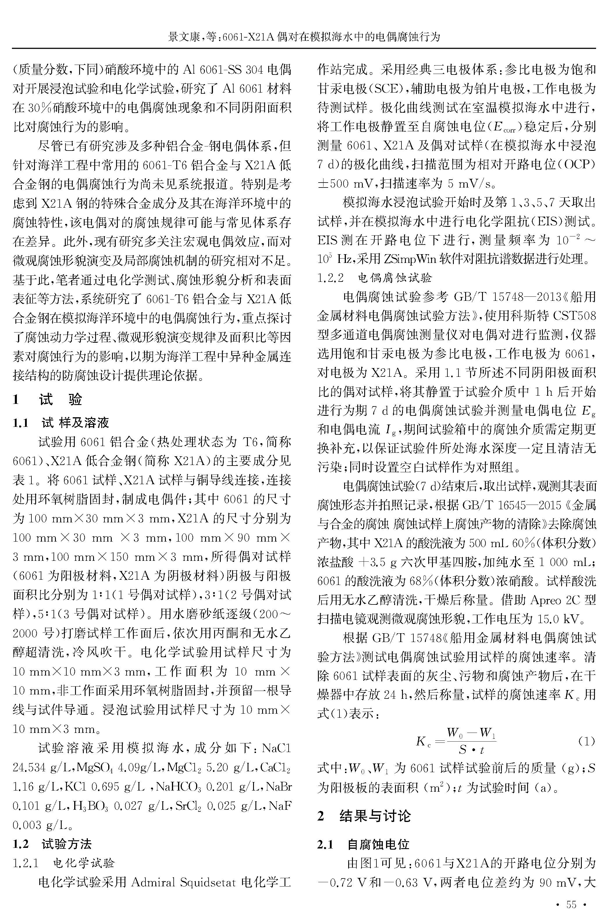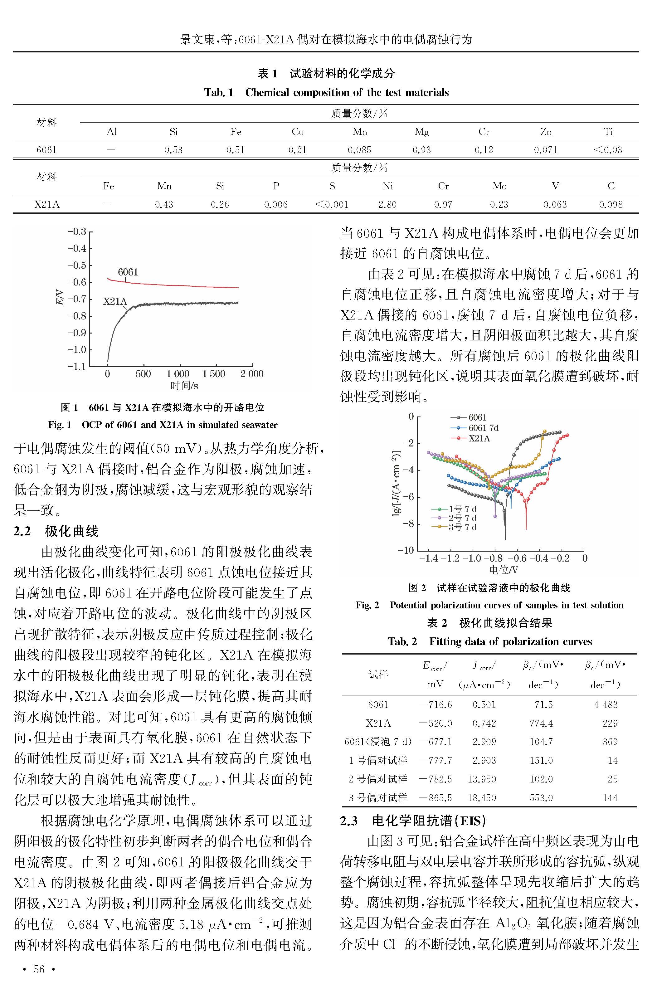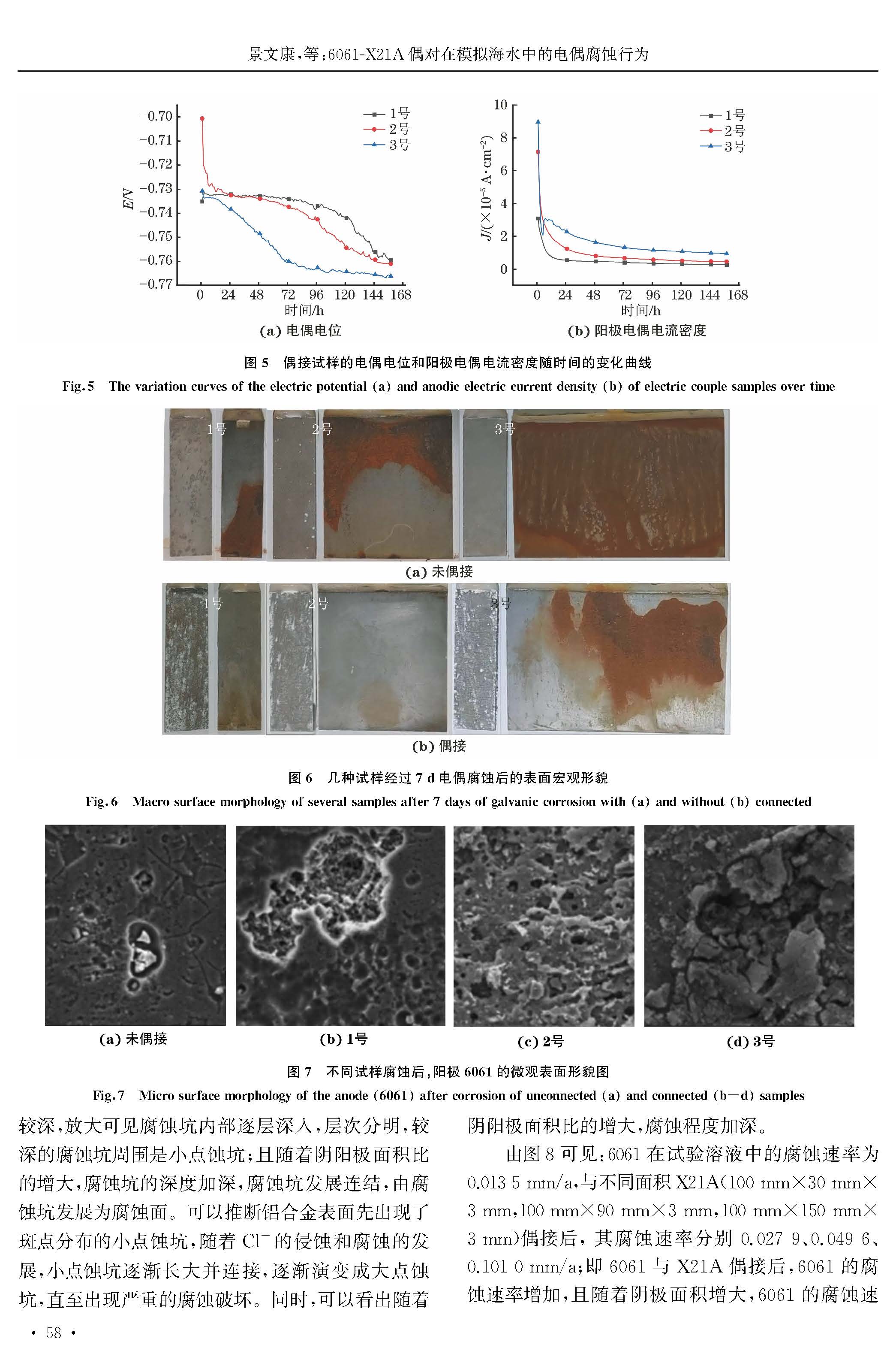 6061-X21A偶对在模拟海水中的电偶腐蚀行为