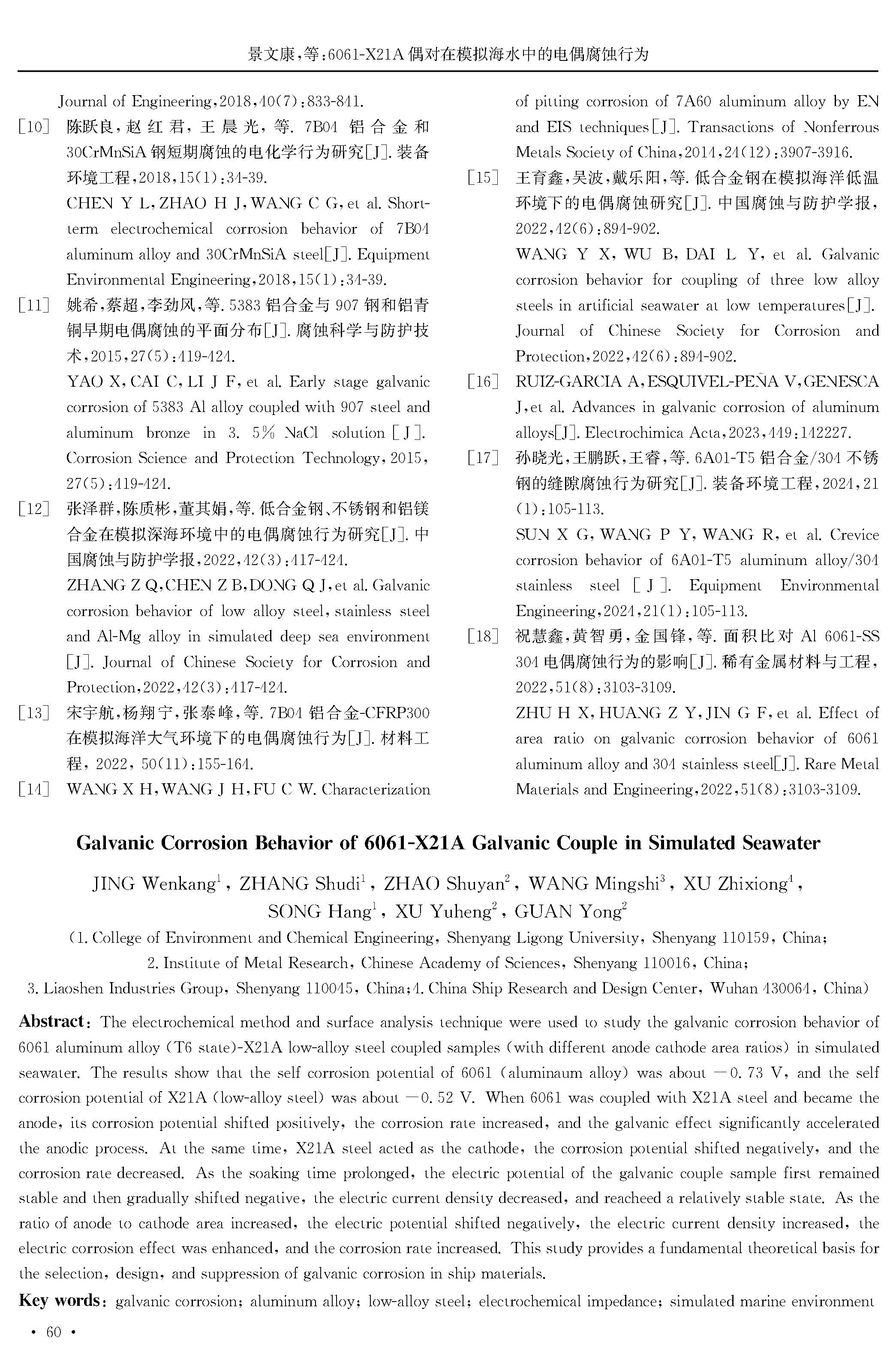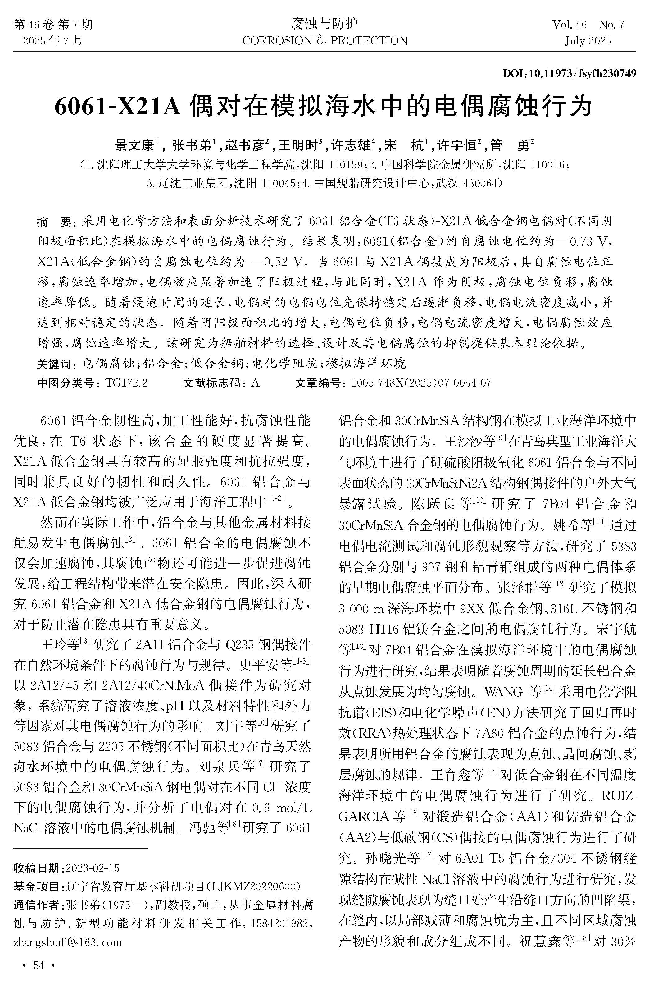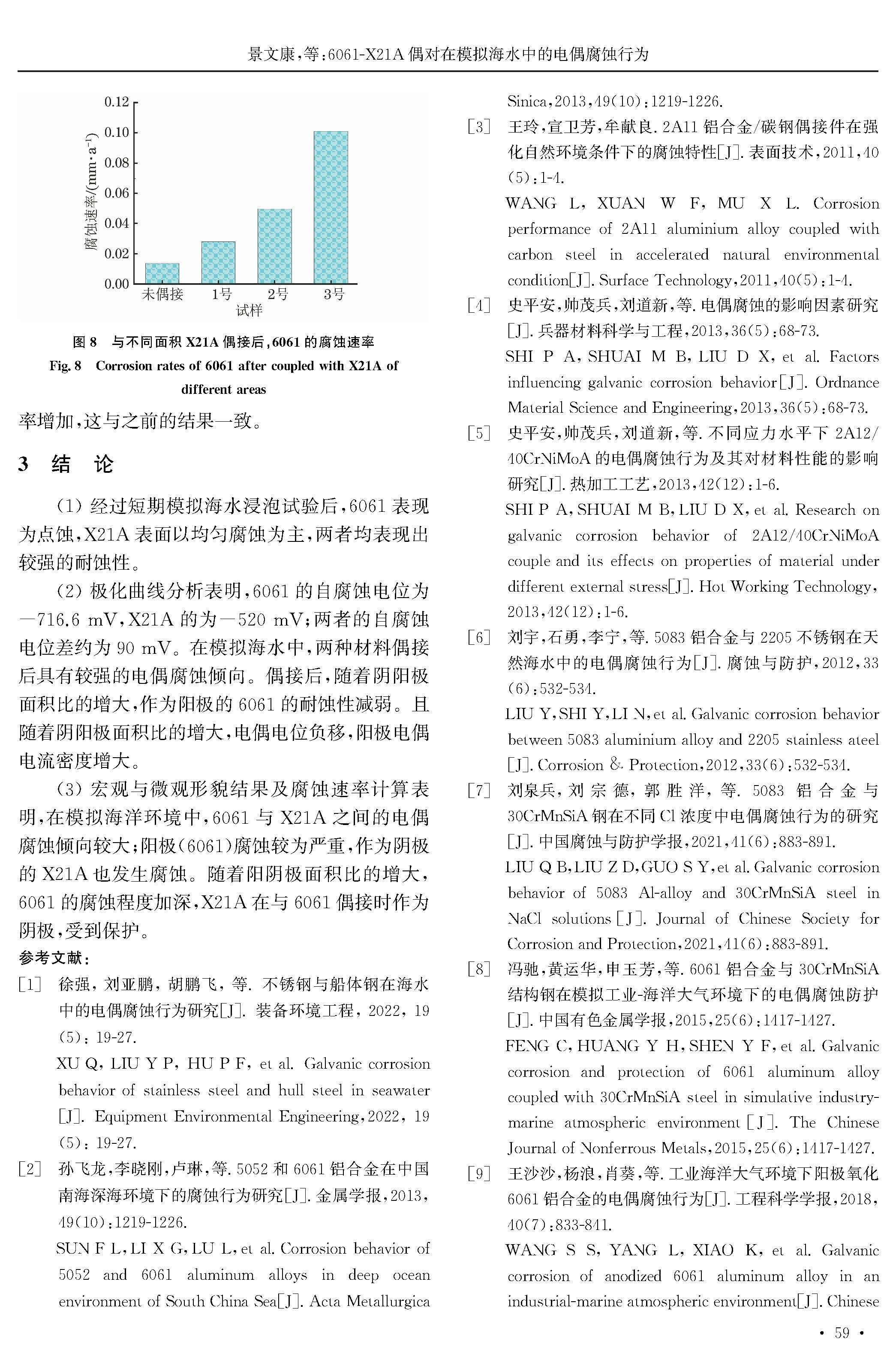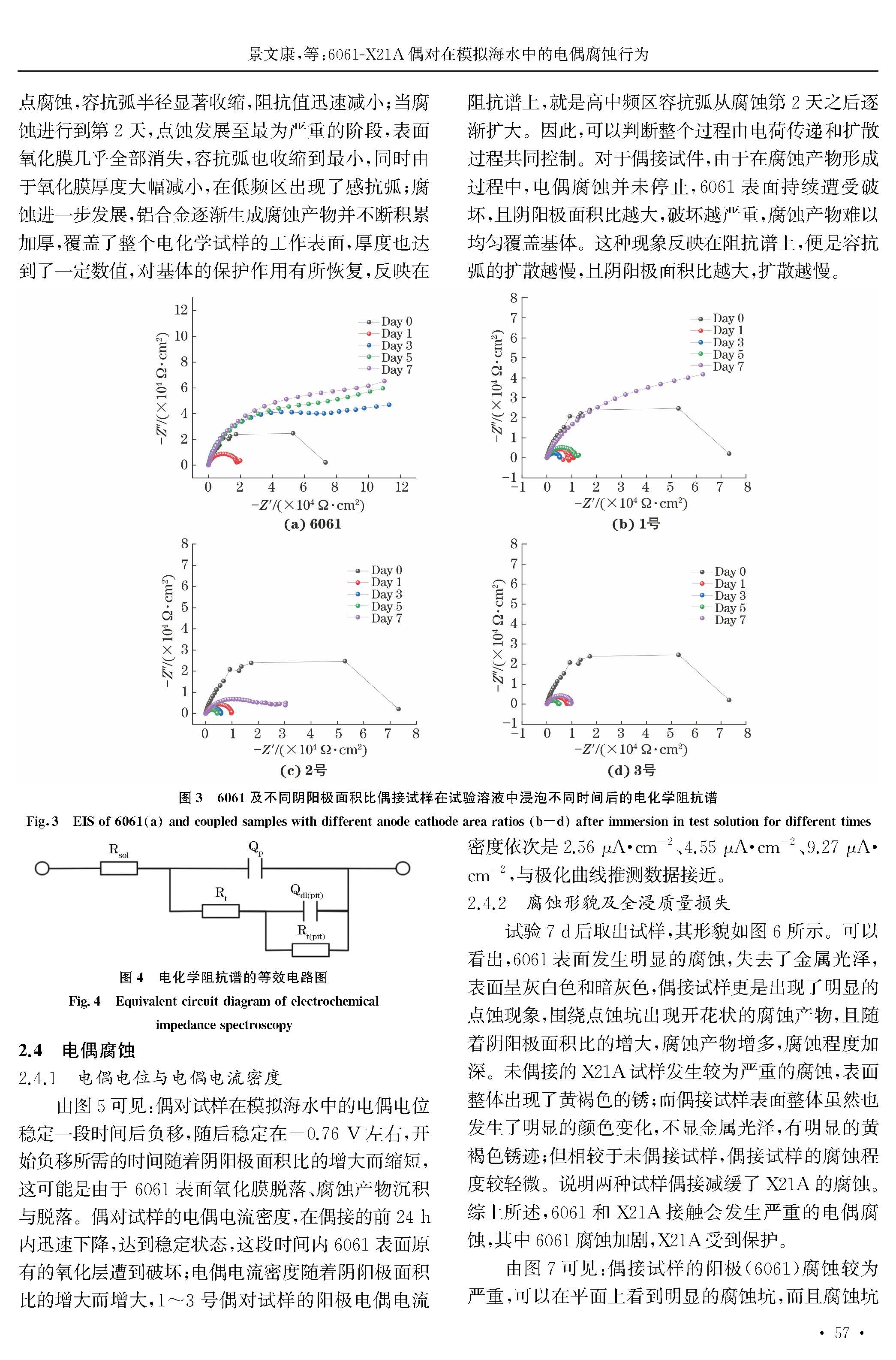 6061-X21A偶对在模拟海水中的电偶腐蚀行为