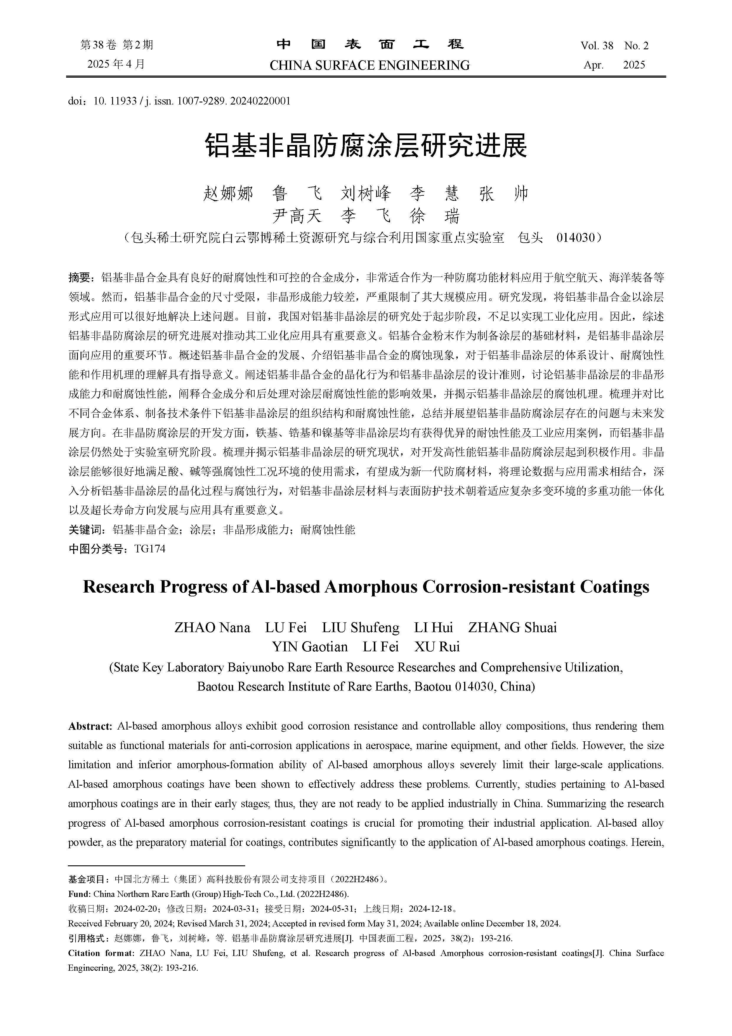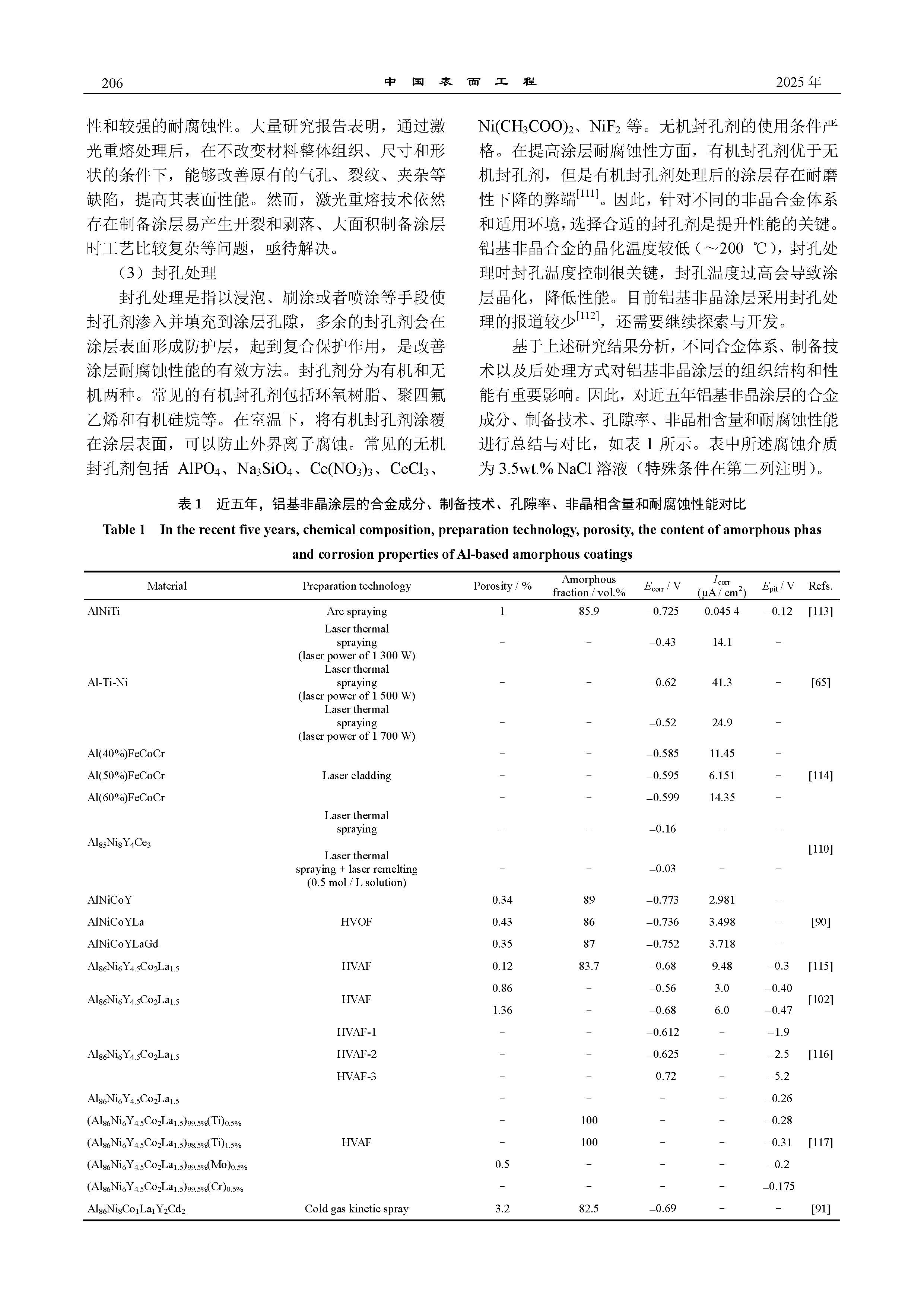 铝基非晶防腐涂层研究进展