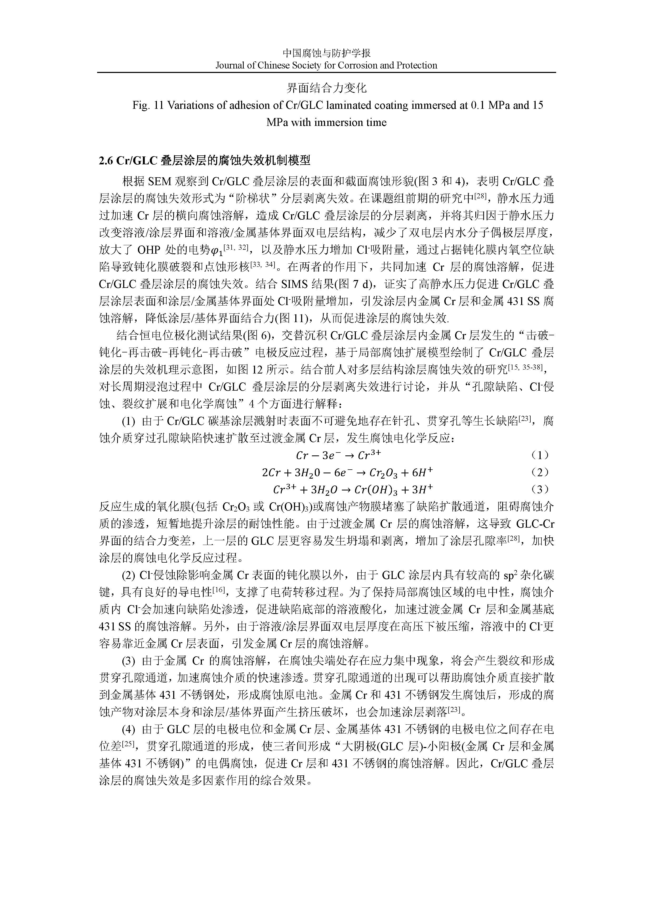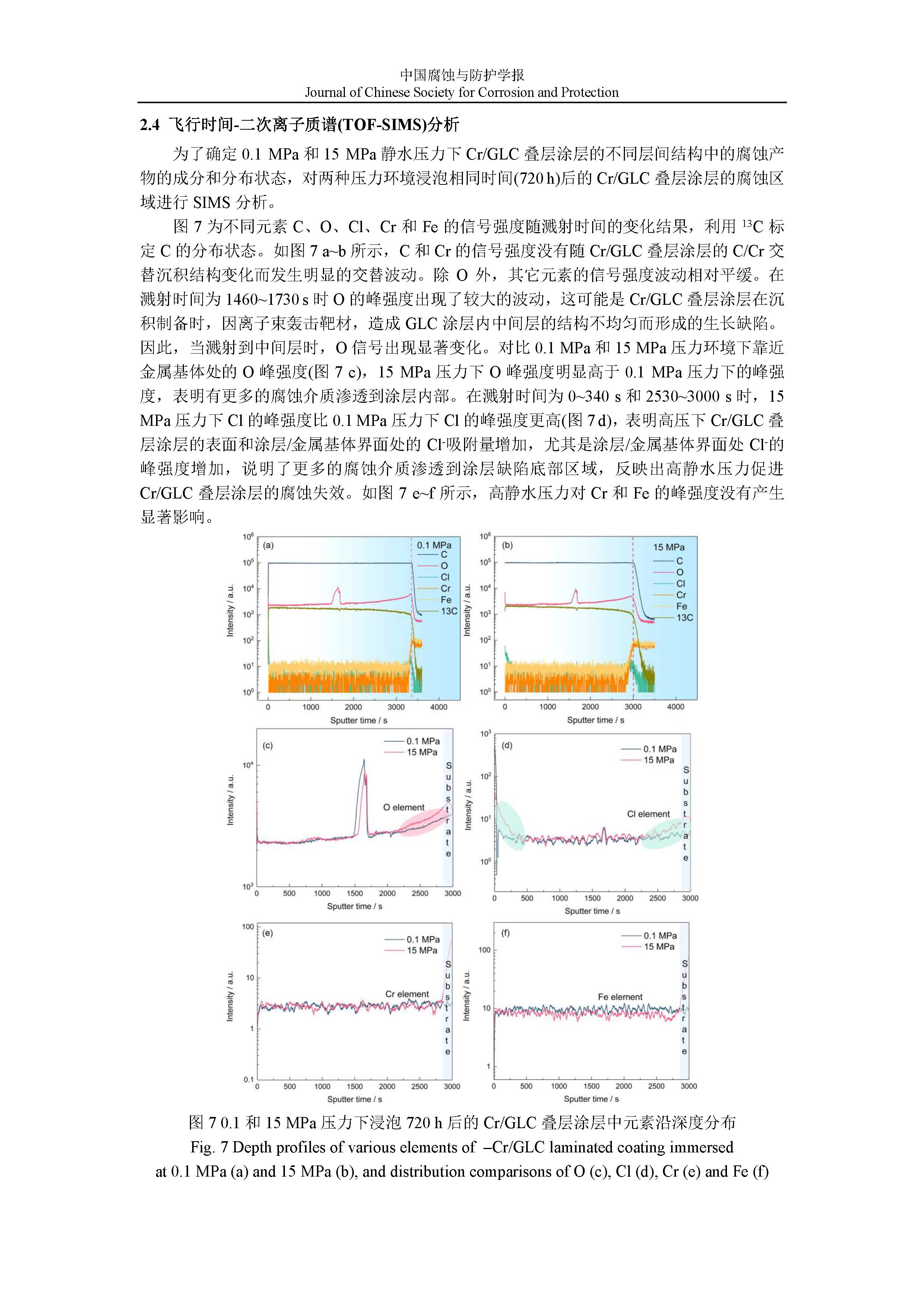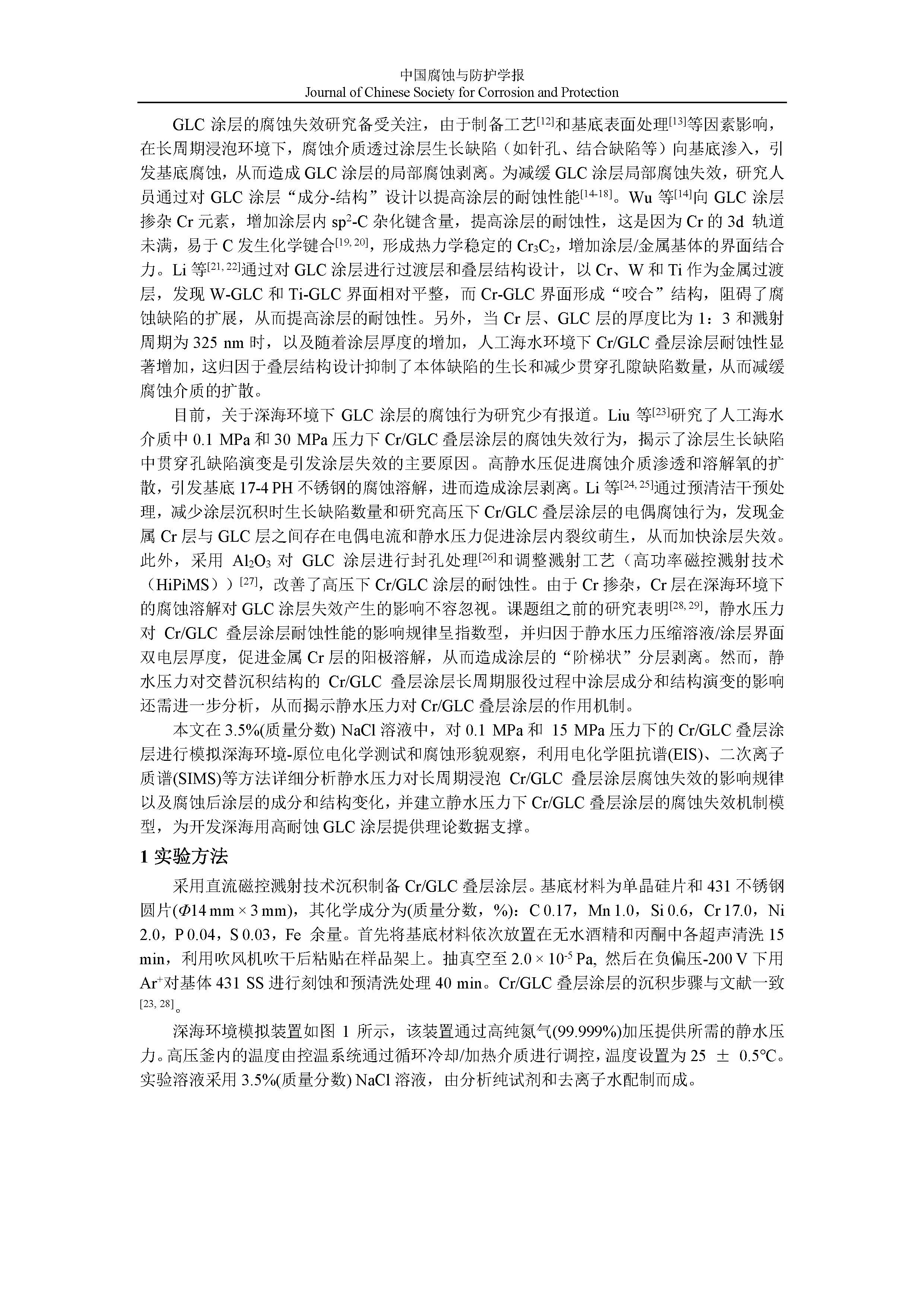 静水压力对Cr/GLC叠层涂层腐蚀行为的影响
