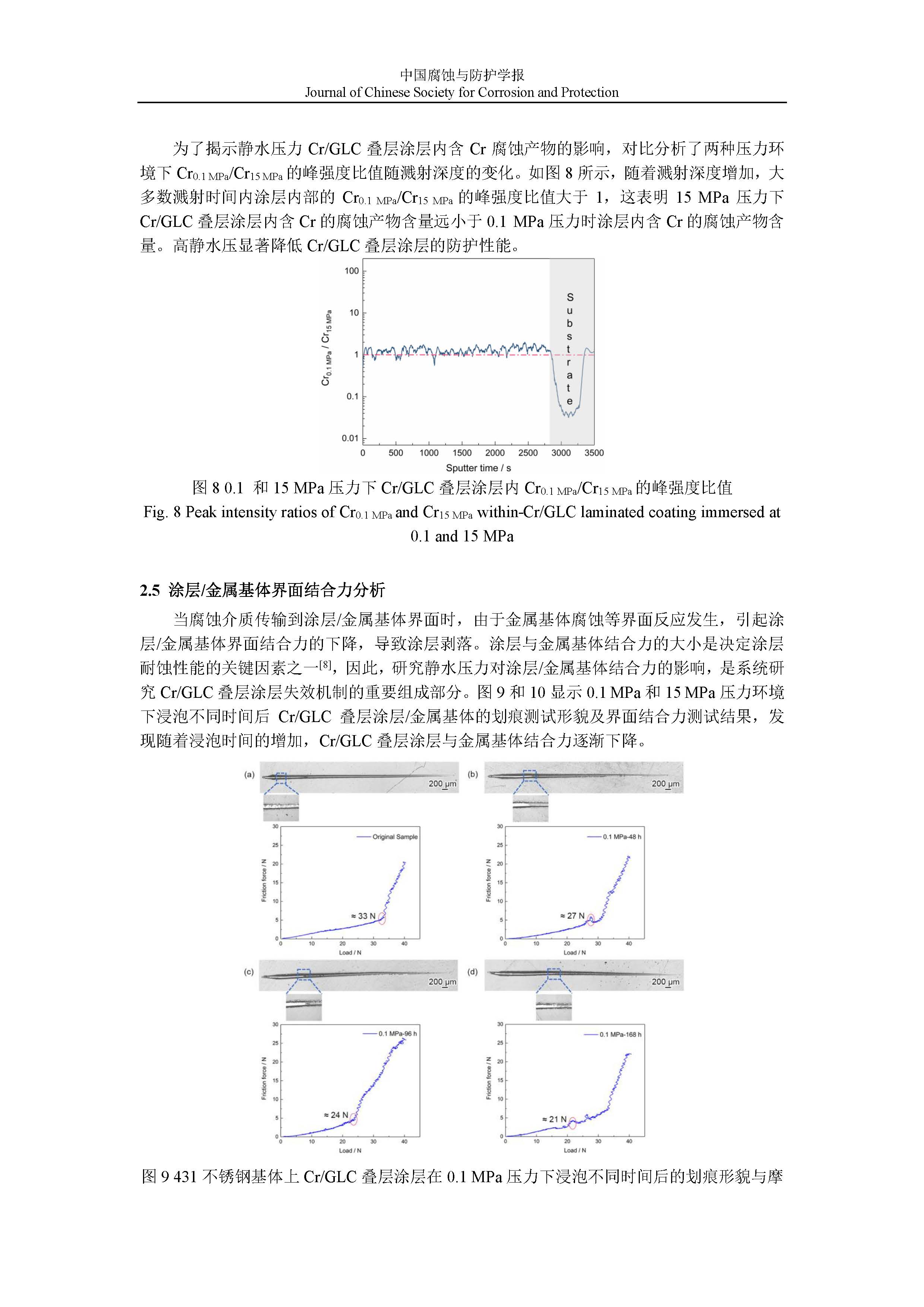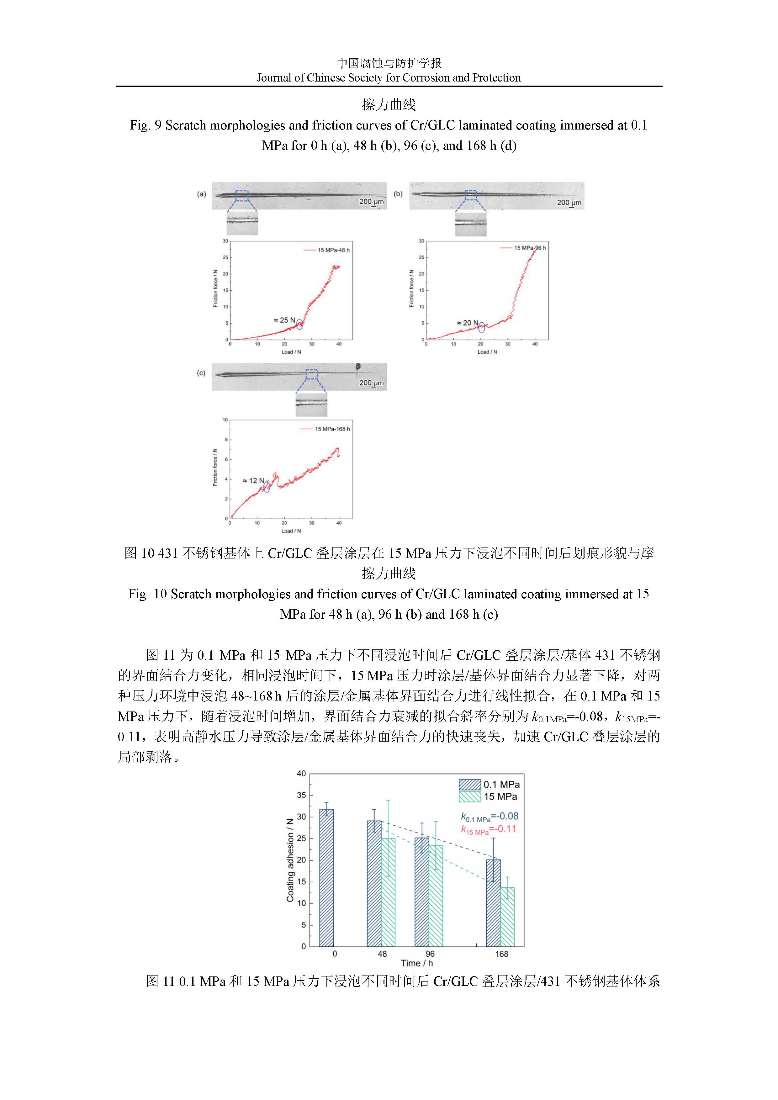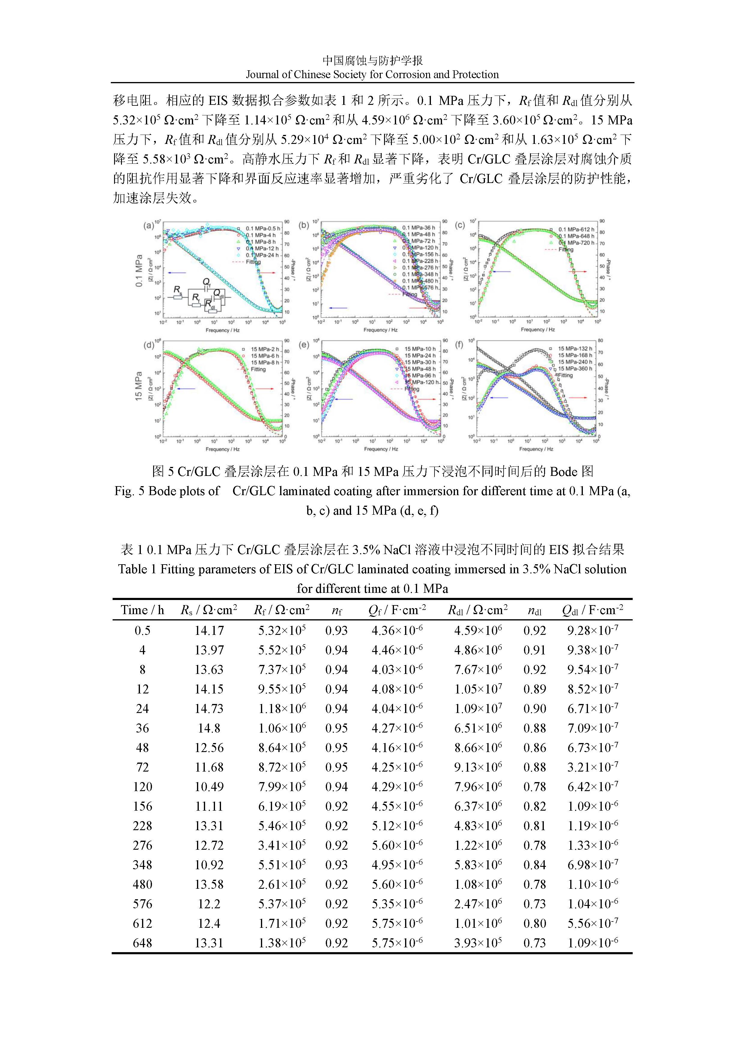 静水压力对Cr/GLC叠层涂层腐蚀行为的影响