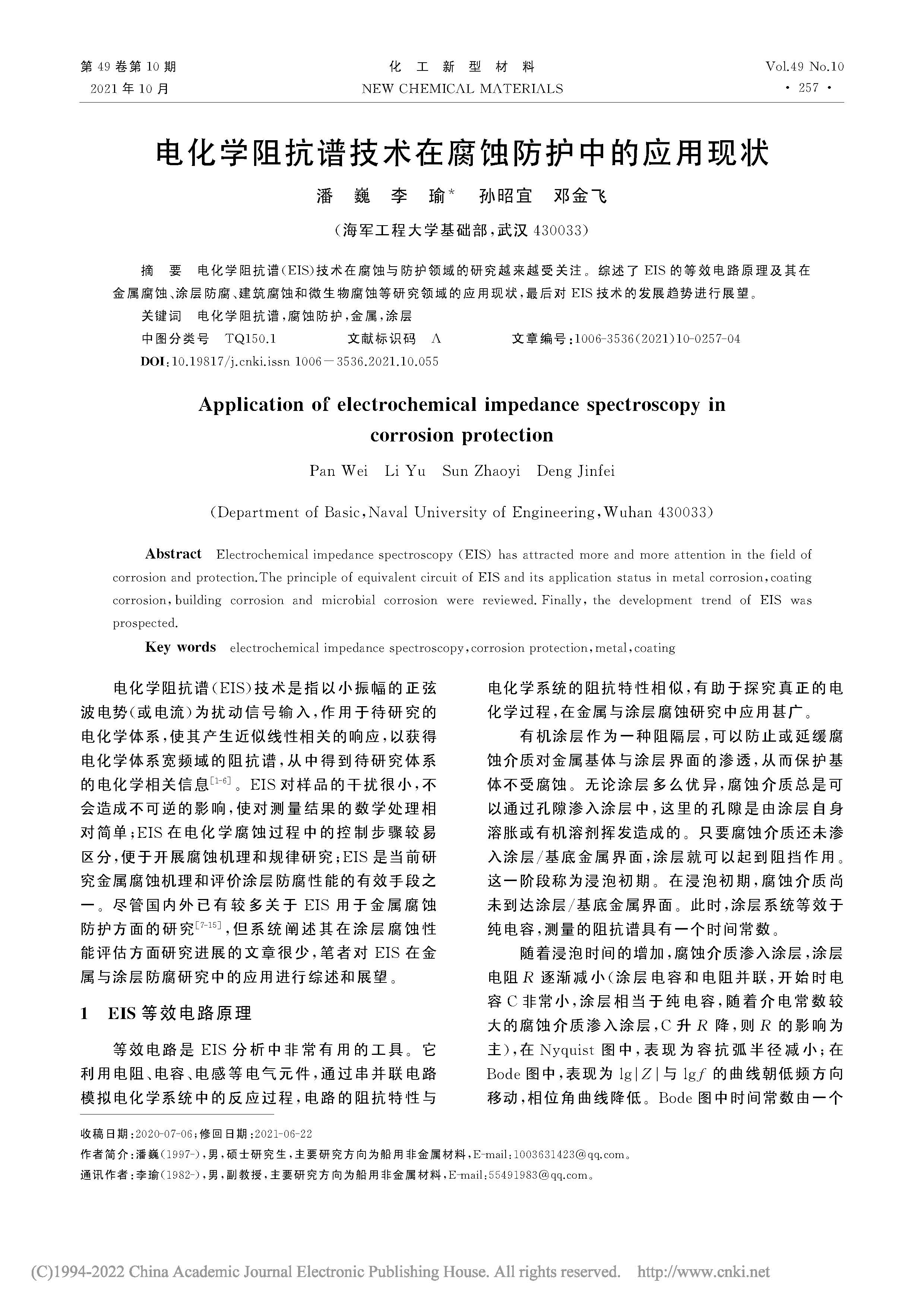 电化学阻抗谱技术在腐蚀防护中的应用现状