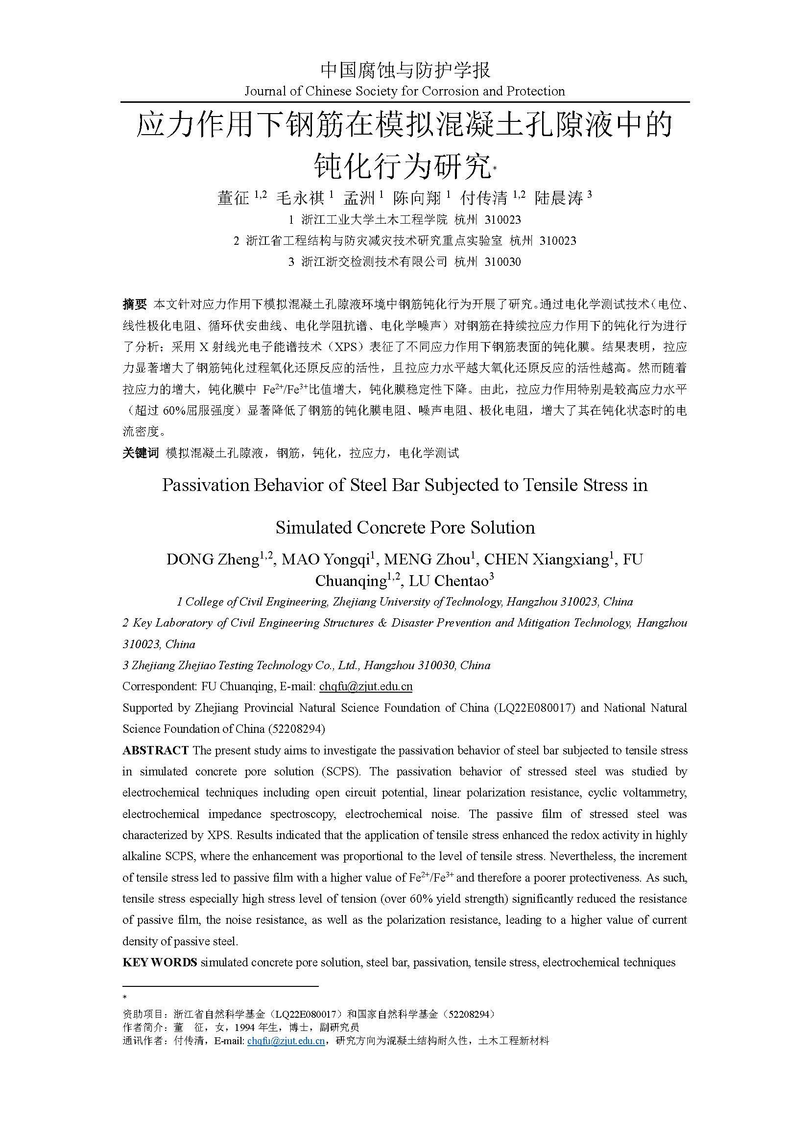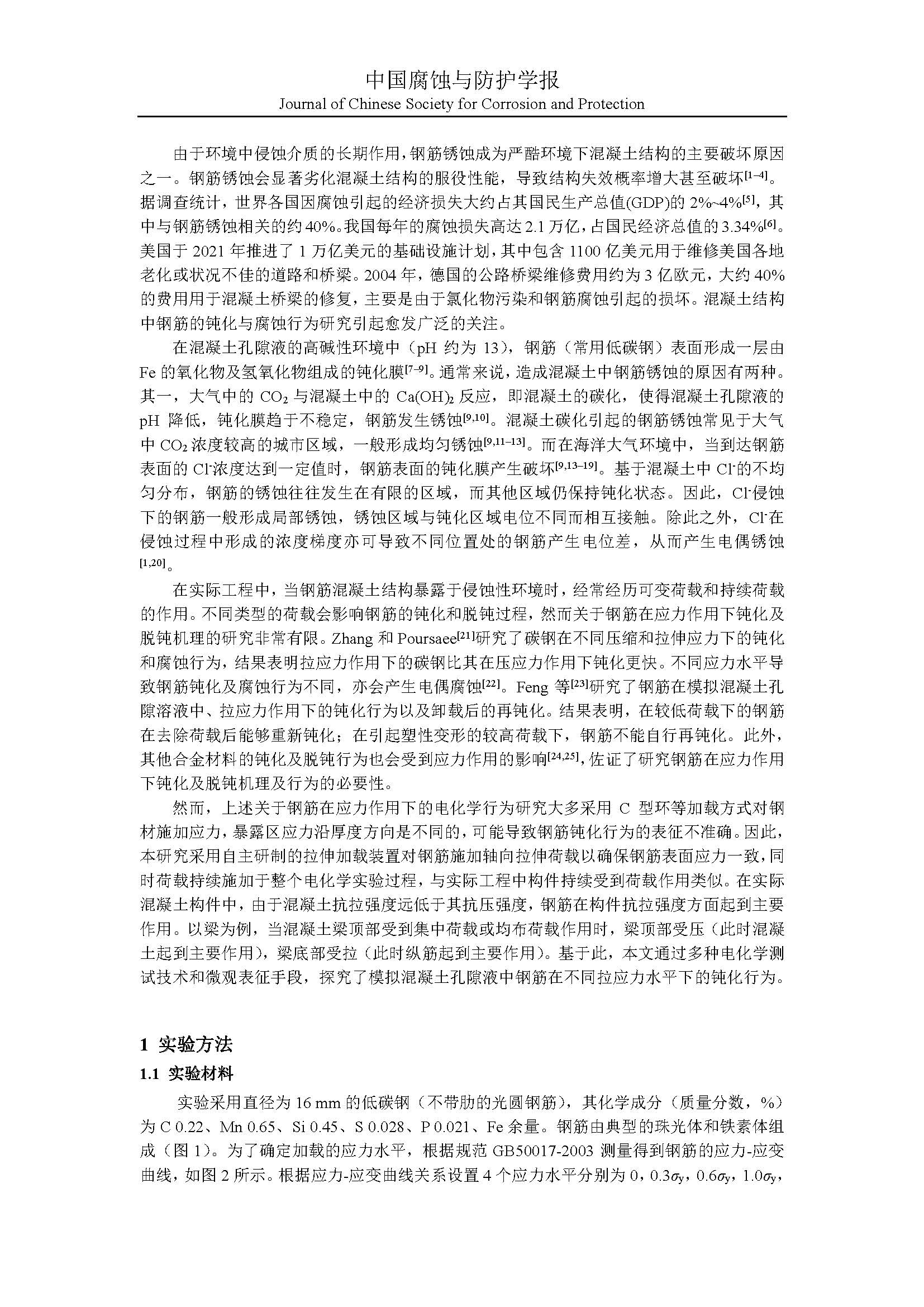 应力作用下钢筋在模拟混凝土孔隙液中的钝化行为研究