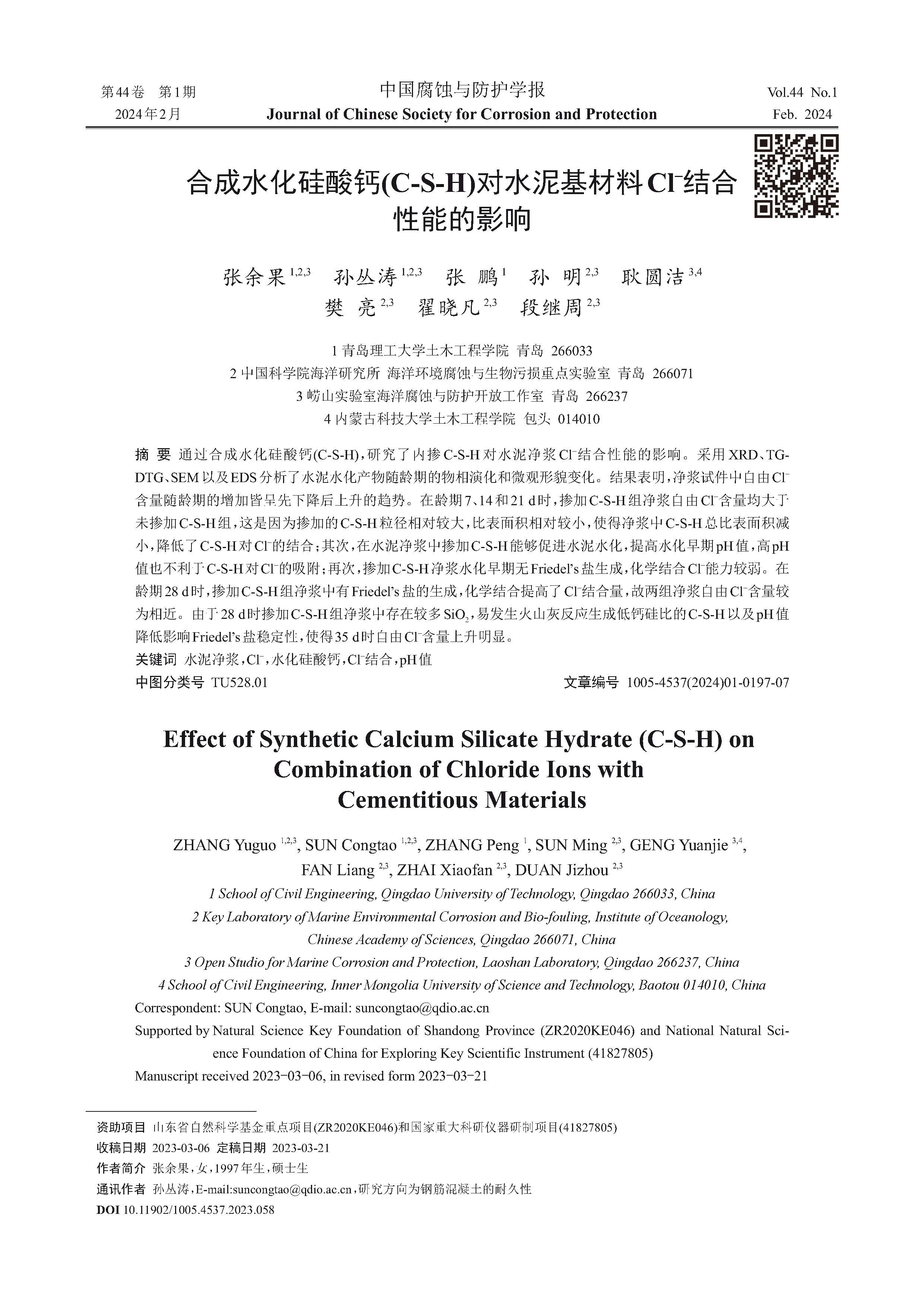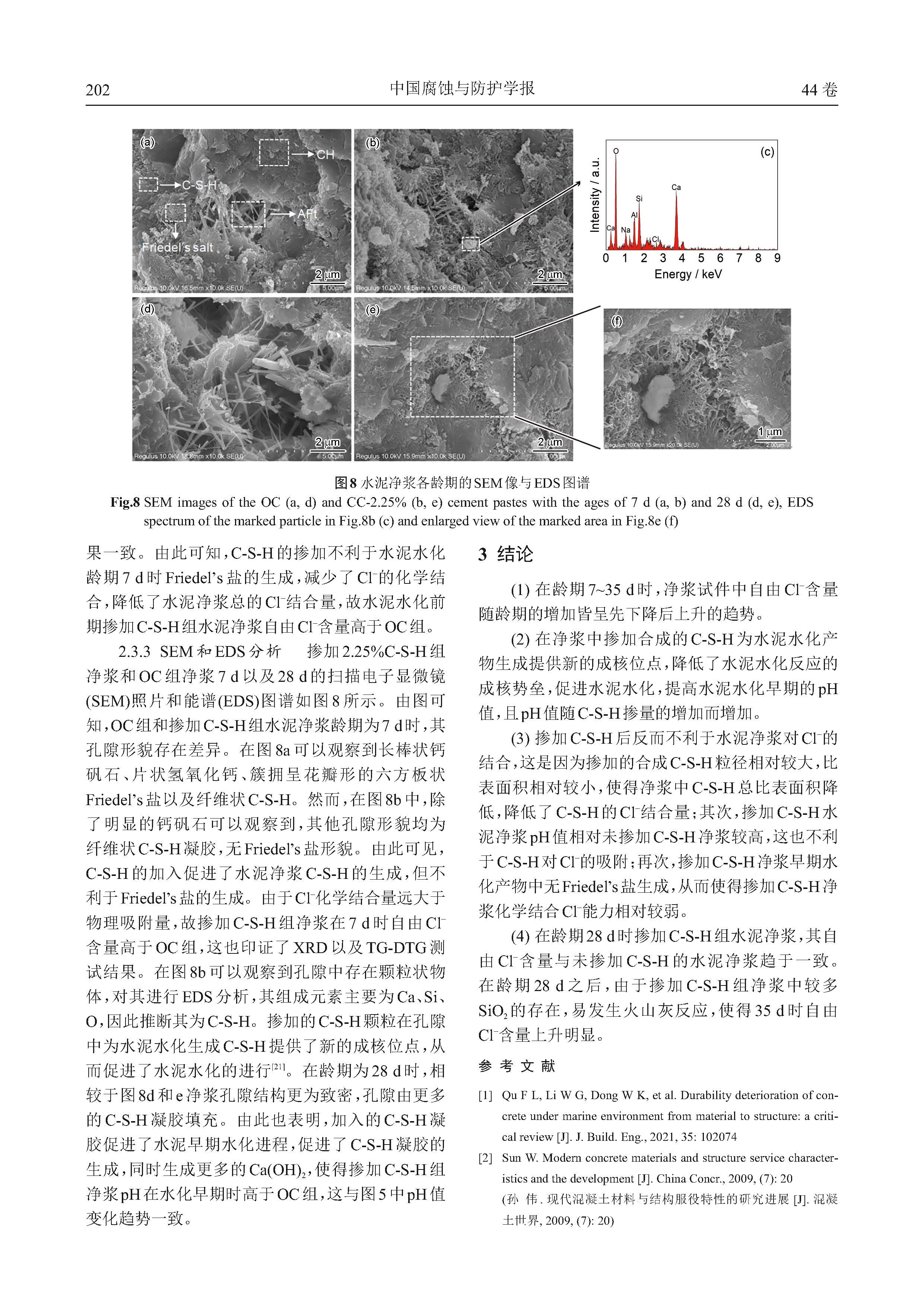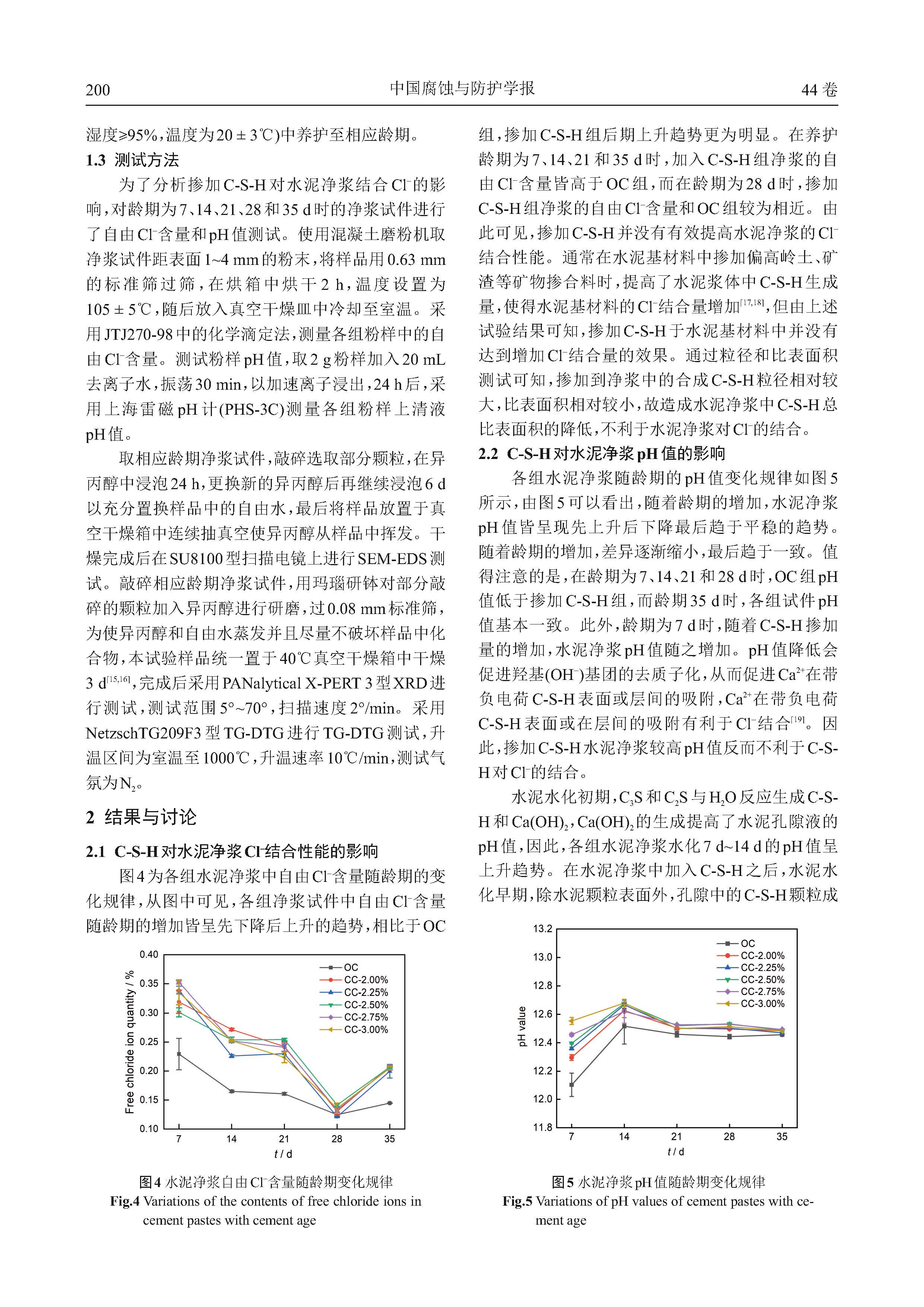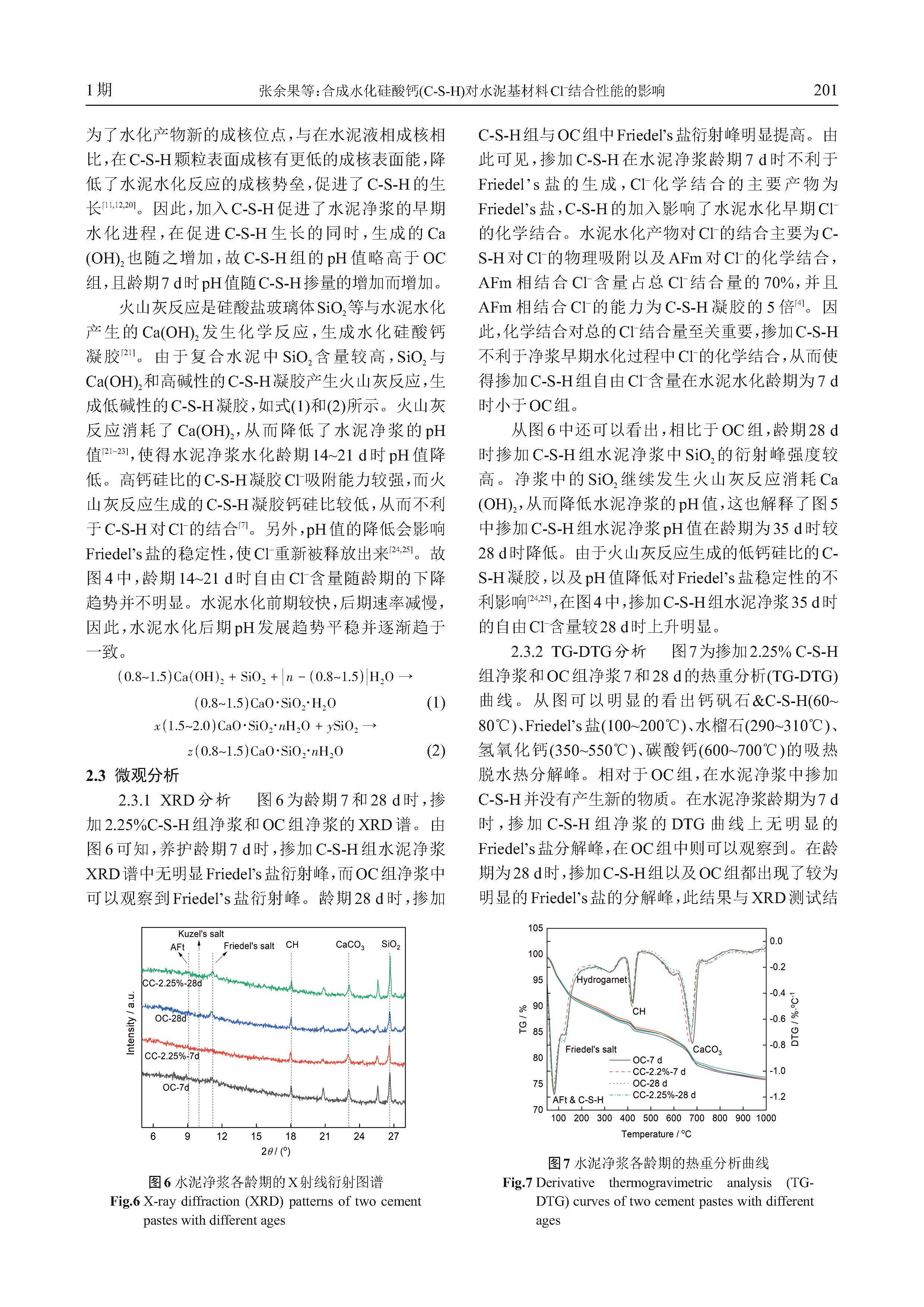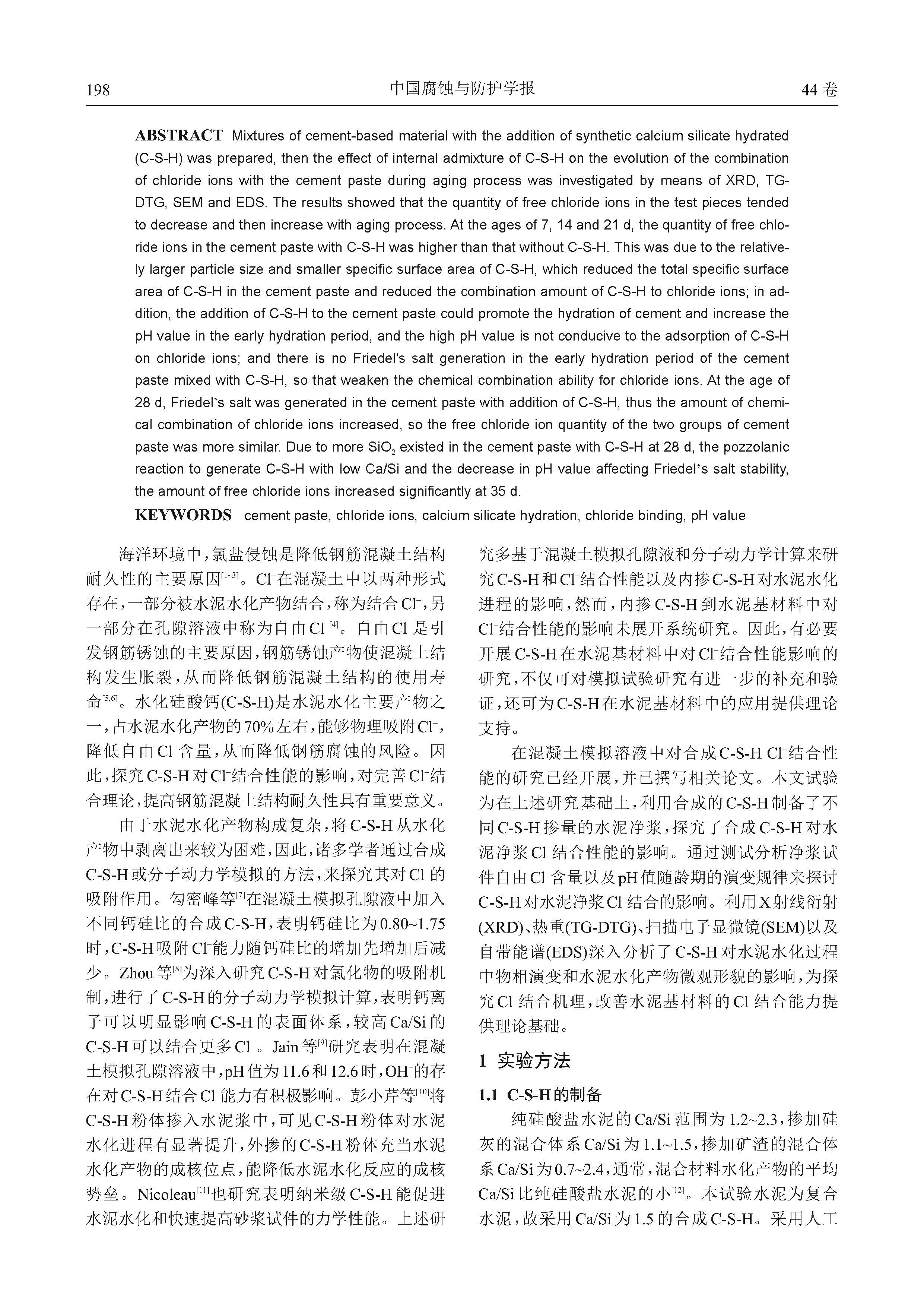 合成水化硅酸钙(C-S-H)对水泥基材料Cl- 结合性能的影响