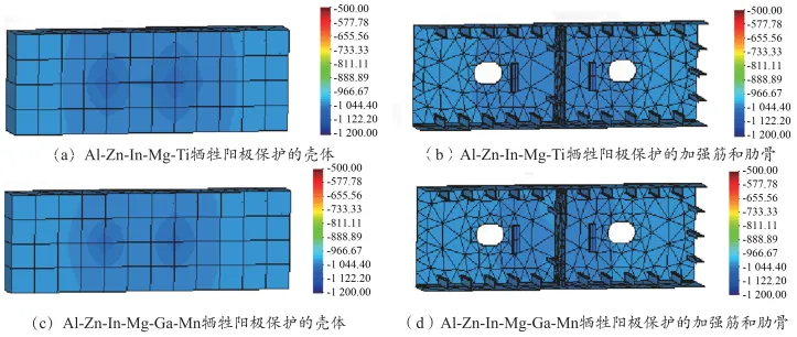 典型铝合金牺牲阳极对 海洋船舶压载舱阴极保护 效果仿真研究 孙建刚1,赵铭钰1,张 迪1,许志雄2,张 宇1,刘广义1 (1.中国船舶集团有限公司第七二五研究所 海洋腐蚀与防护全国重点实验室,山东 青岛266237;2.中国舰船研究设计中心,湖北 武汉430064) 摘 要:海洋船舶压载舱的服役环境恶劣,腐蚀问题十分突出,为解决该问题,本研究采用数值仿真方法对比了Al-Zn-In-Mg-Ti和Al-Zn-In-Mg-Ga-Mn铝合金牺牲阳极在不同服役阶段对压载舱的阴极保护效果。结果表明:2种铝合金牺牲阳极在服役初期对压载舱的阴极保护效果较好,但是随着干湿交替次数增加,Al-Zn-In-Mg-Ti铝合金牺牲阳极性能下降,导致压载舱局部区域出现欠保护现象;Al-Zn-In-Mg-Ga-Mn铝合金牺牲阳极表现出更强的活性,在服役期内能为压载舱提供良好的阴极保护。 关键词:数值仿真;阴极保护;压载舱;铝合金牺牲阳极 文中主要图表 (序号为文中序号) 图1 压载舱局部结构数值模型 图2 牺牲阳极在压载舱上位置的三视图 图3 压载舱钢材的阴极极化曲线 图4 铝合金牺牲阳极的阳极极化曲线 图5 服役初期压载舱腐蚀电位分布 表1 服役初期保护效果仿真计算结果 图6 服役初期压载舱腐蚀电流密度分布 图7 服役末期压载舱腐蚀电位分布 图8 服役末期压载舱腐蚀电流密度分布 表2 服役末期保护效果仿真计算结果 结 论 通过数值仿真的方法研究了Al-Zn-In-Mg-Ti和Al-Zn-In-Mg-Ga-Mn铝合金牺牲阳极对船舶压载舱的阴极保护效果,结果表明: (1)服役初期,涂层破损率为2%的全浸工况下, Al-Zn-In-Mg-Ti和Al-Zn-In-Mg-Ga-Mn铝合金牺牲阳极均能使压载舱各位置腐蚀电位负于-1 015 mV,压载舱处于良好的阴极保护状态。 (2)随着服役时间延长至服役末期,压载舱涂层破损率达到10%时,Al-Zn-In-Mg-Ti铝合金牺牲阳极无法为压载舱提供良好阴极保护,局部区域腐蚀电位正于-800 mV,压载舱处于欠保护状态;而Al-Zn-In-Mg-Ga-Mn铝合金牺牲阳极可保持压载舱各位置腐蚀电位负于-875 mV,使其处于良好保护状态。2种牺牲阳极保护效果的差异与Al-Zn-In-Mg-Ti铝合金牺牲阳极在干湿交替工况下发生的表面结壳现象有关。