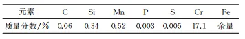 试验用430不锈钢试片购自扬州科力环保设备有限公司,其化学成分如表1所示。试片原始尺寸为100mm×50mm×2mm,经线切割加工成试验所需大小。试验前,使用不同型号的砂纸打磨试样表面至光滑,再依次用去离子水、无水酒精和丙酮冲洗,最后将试样表面擦拭干净后用滤纸包裹置于干燥器中备用。