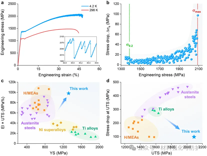 该研究证明了通过集成高晶格摩擦和相干L12纳米析出相可以在4.2K下实现超高强度和高延展性的优异性能组合,这一成果不仅解决了低温下强度与稳定性的权衡问题,而且为未来深冷工程、航天结构等极端环境应用提供了全新的合金设计思路和理论依据。