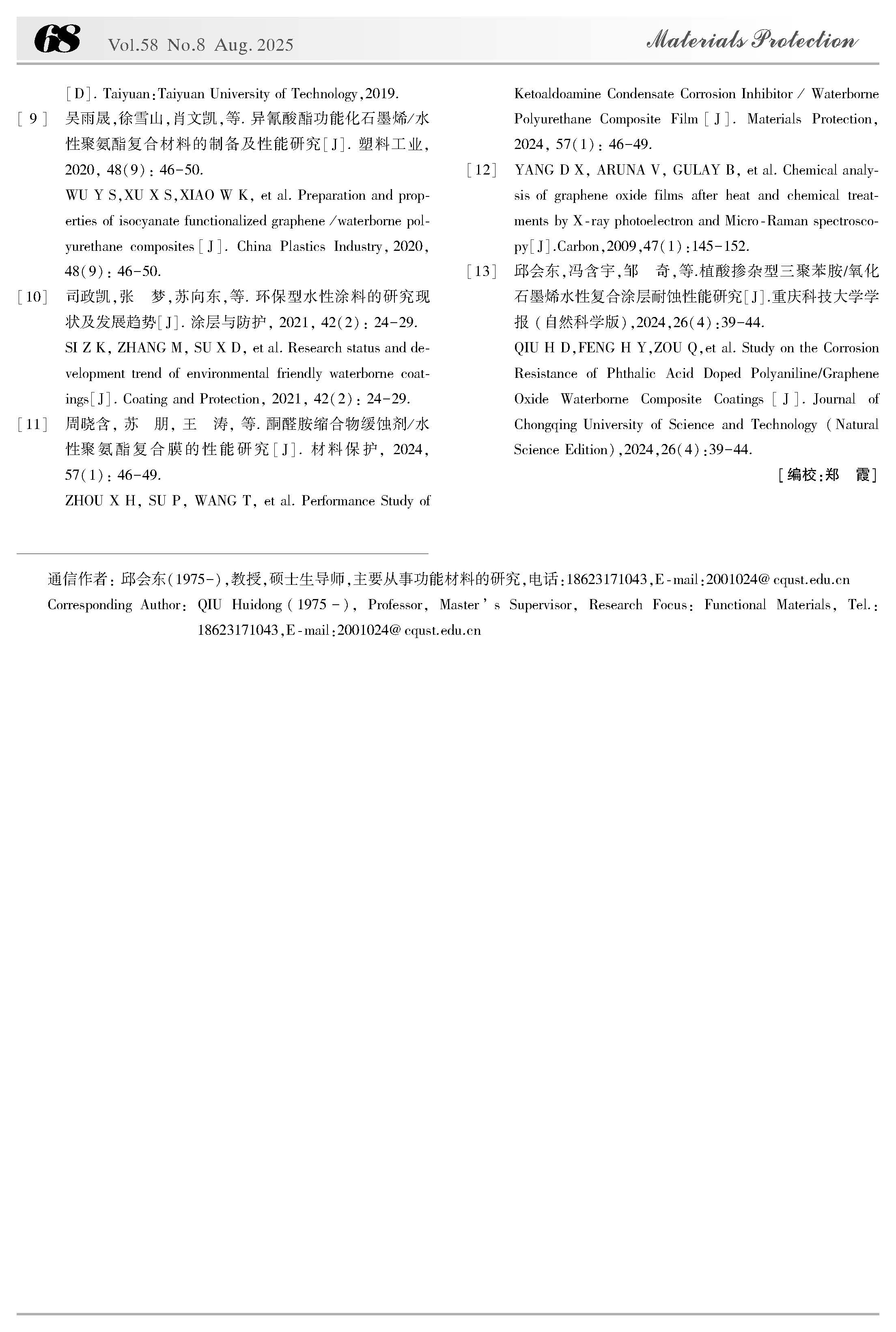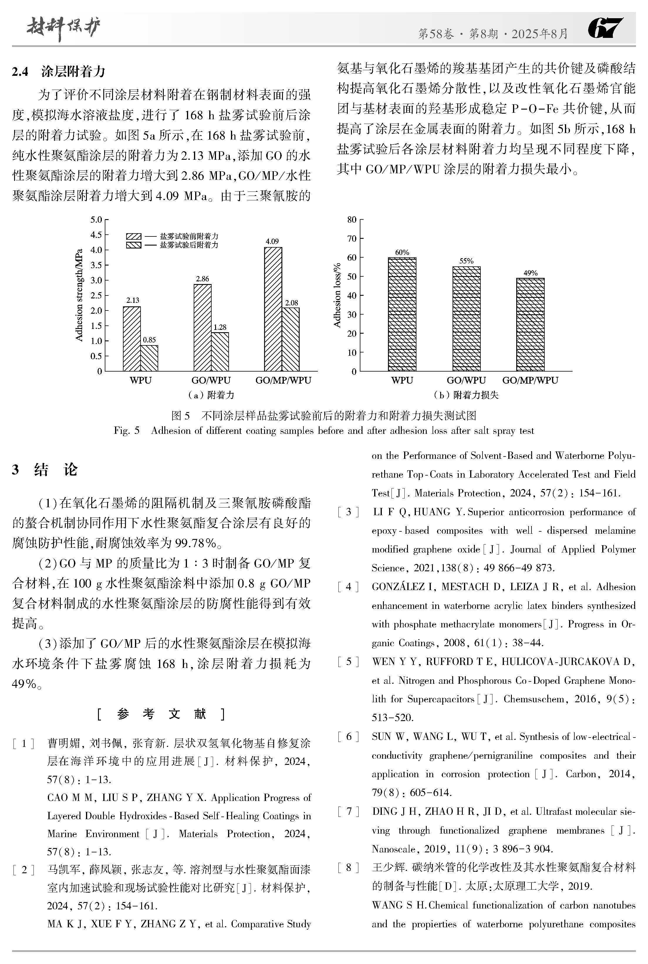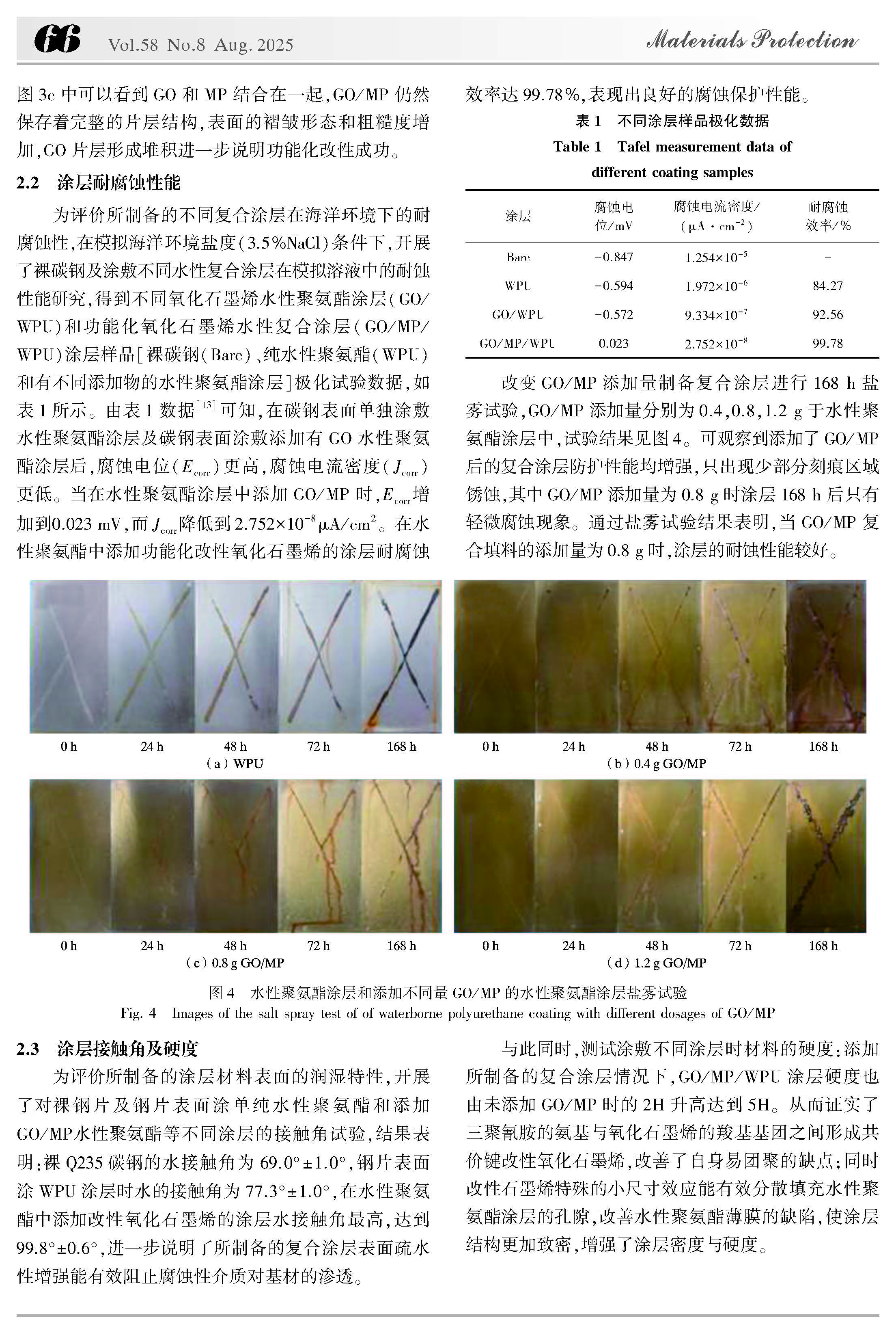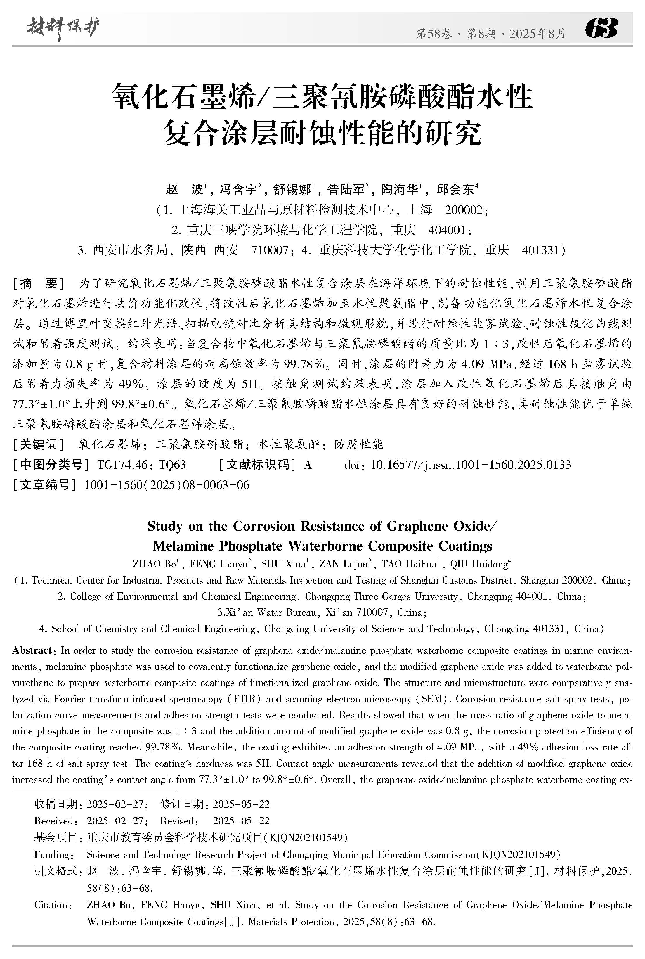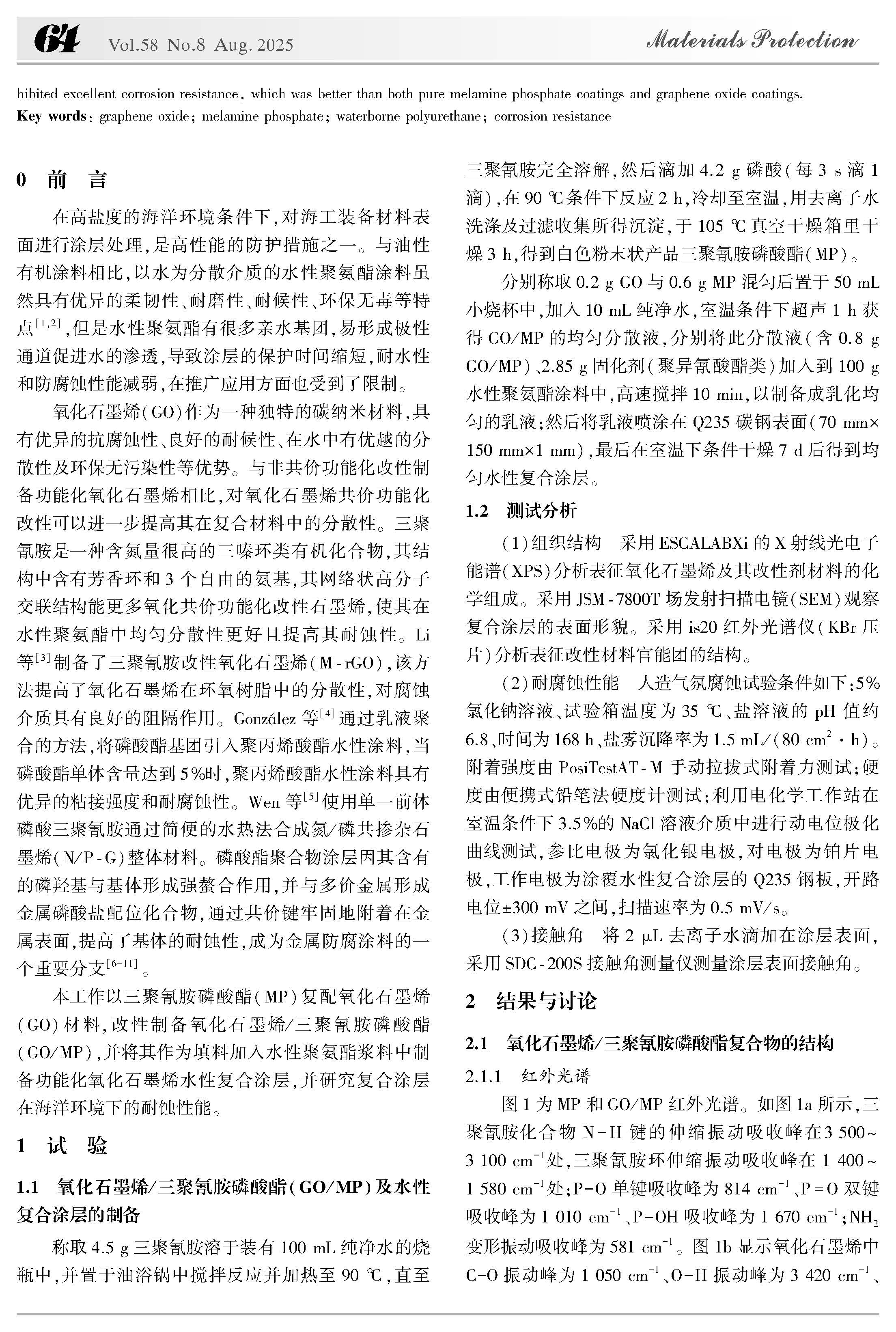 氧化石墨烯 / 三聚氰胺磷酸酯水性复合涂层耐蚀性能的研究