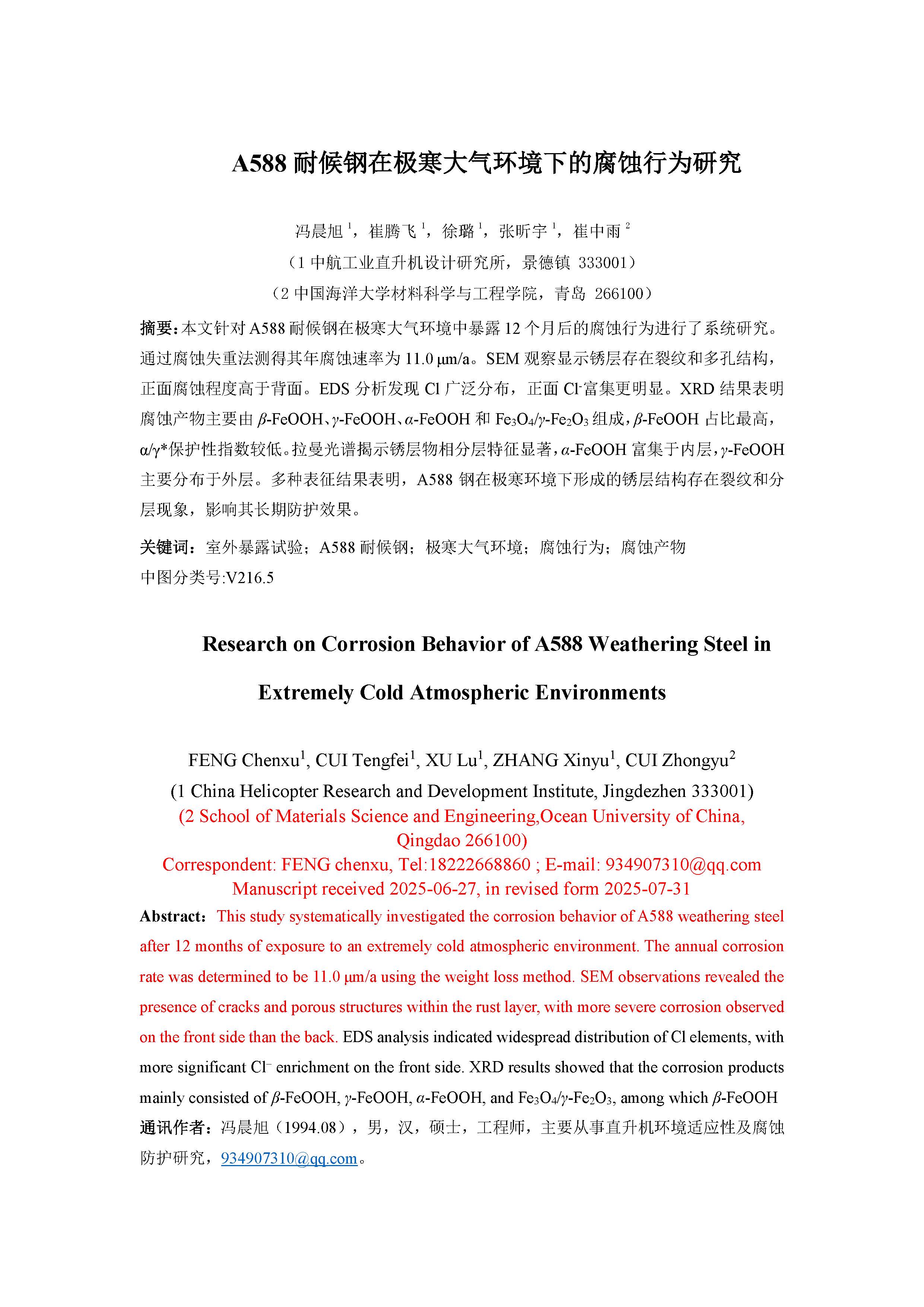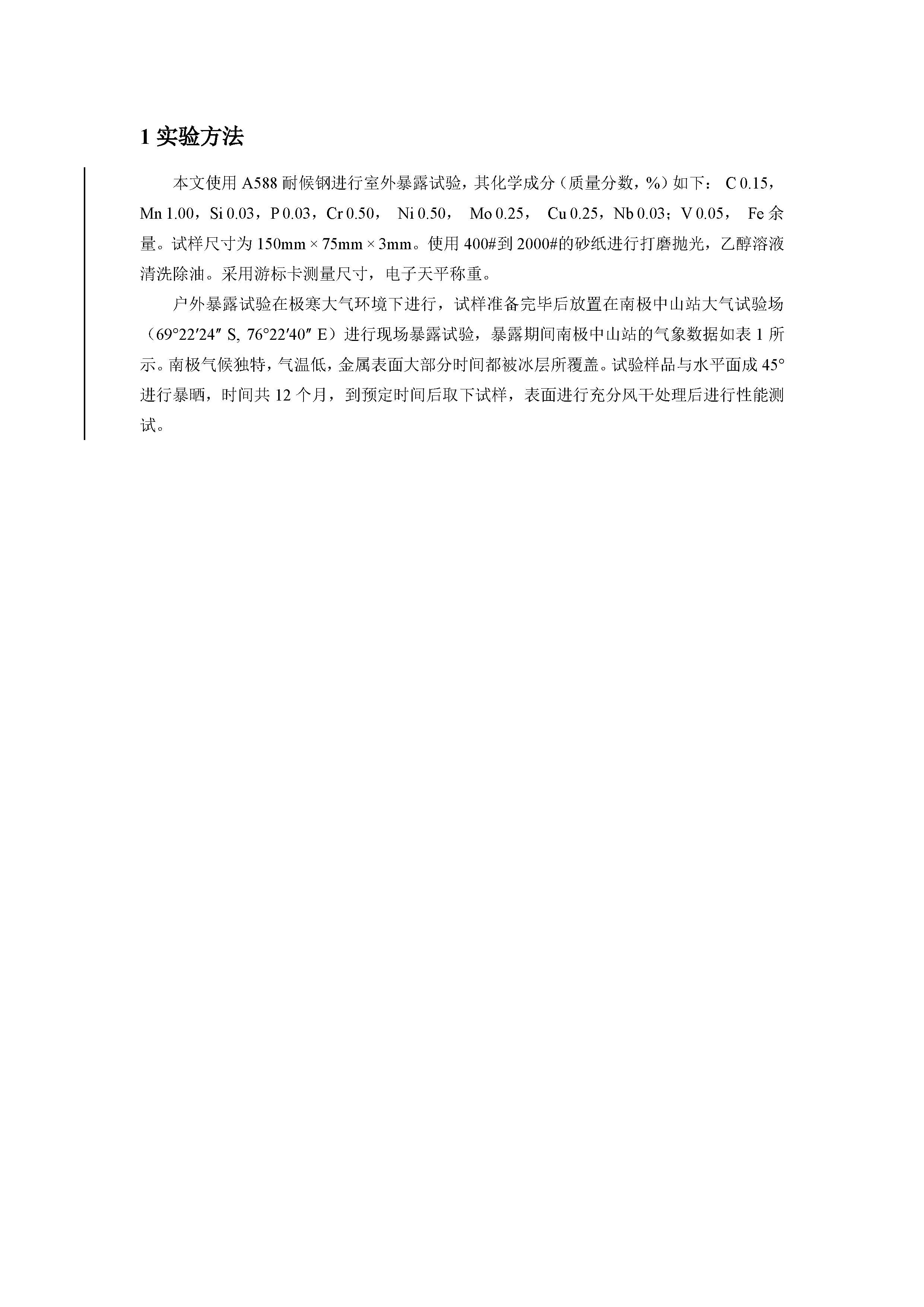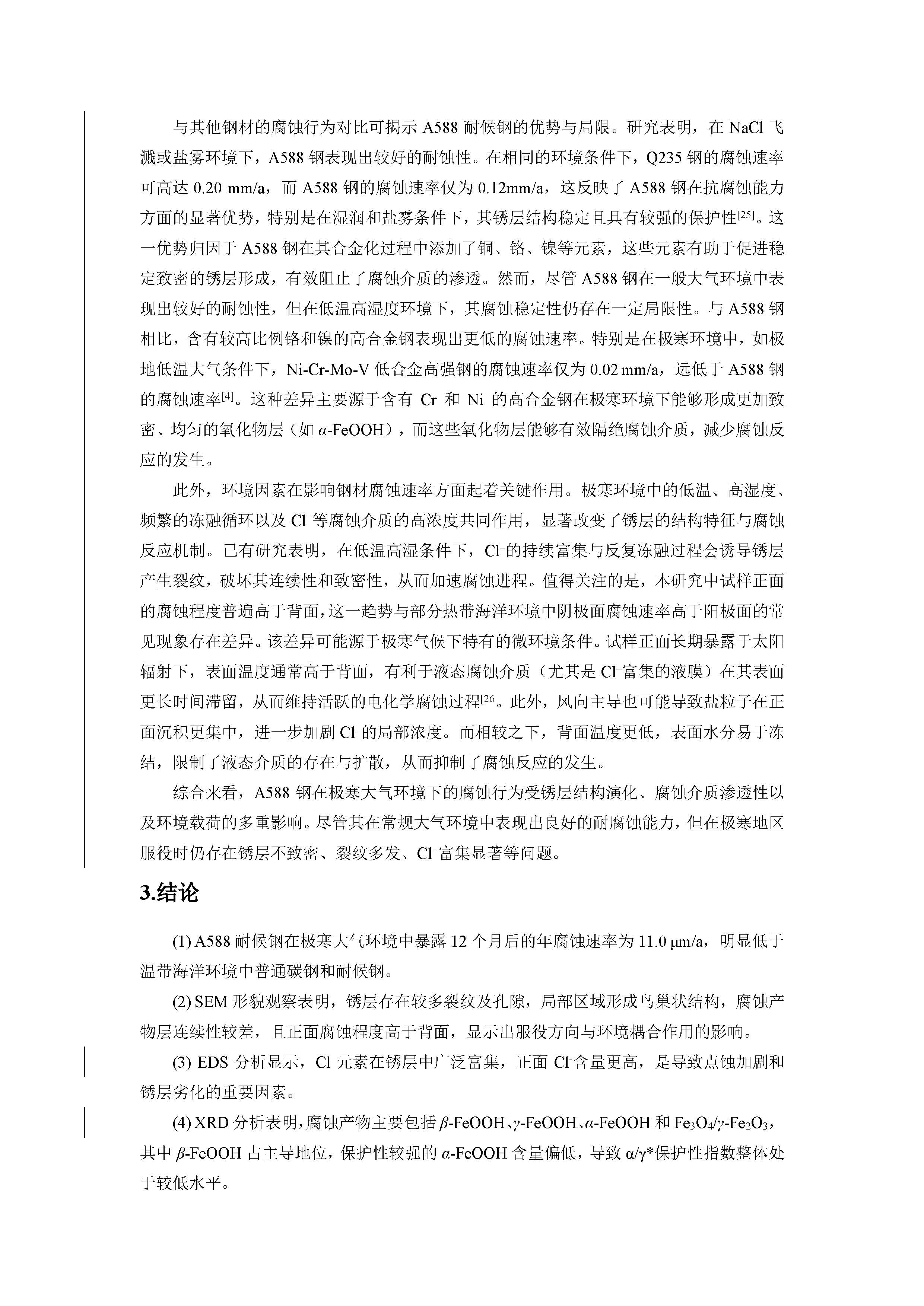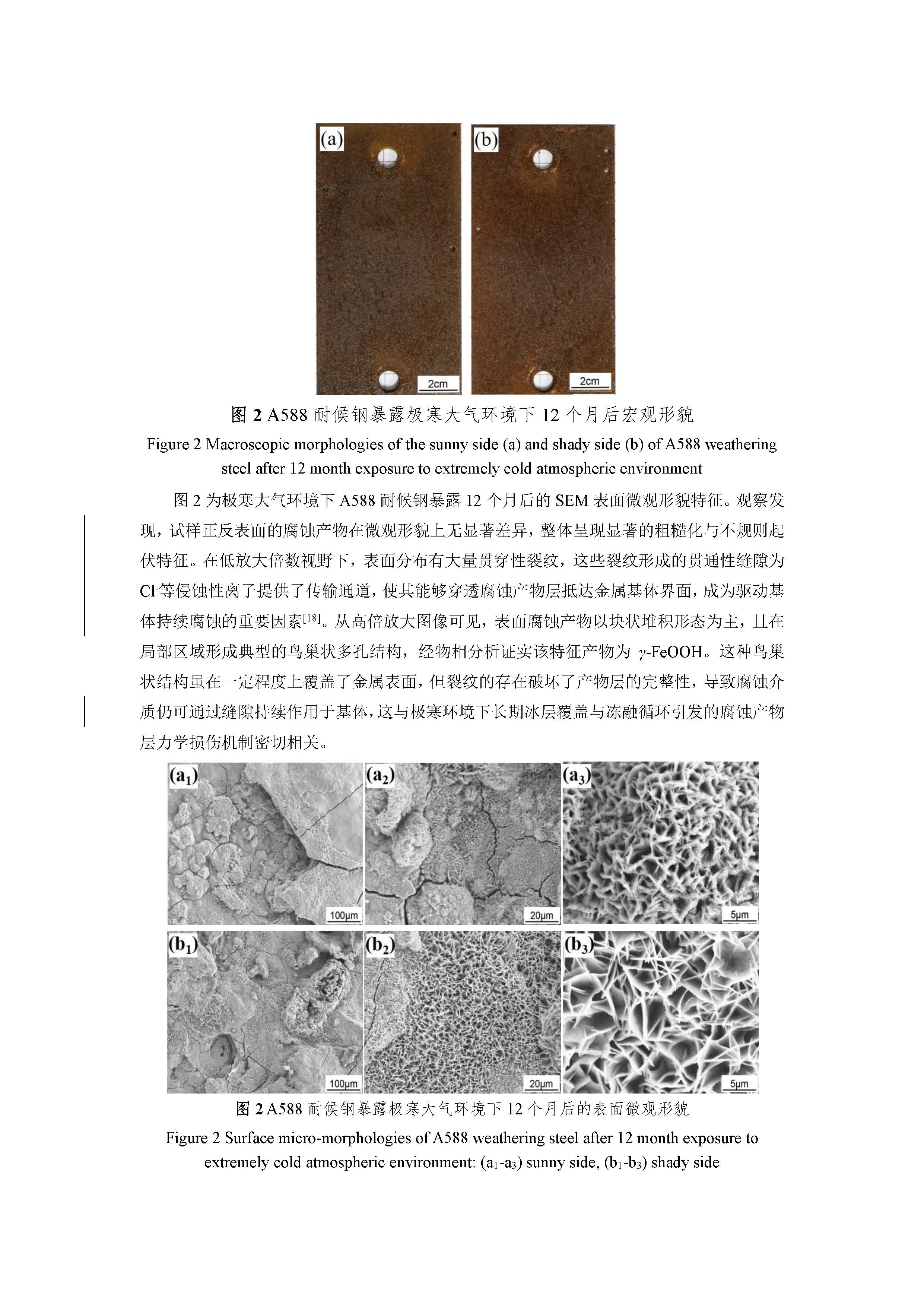 A588 耐候钢在极寒大气环境下的腐蚀行为研究
