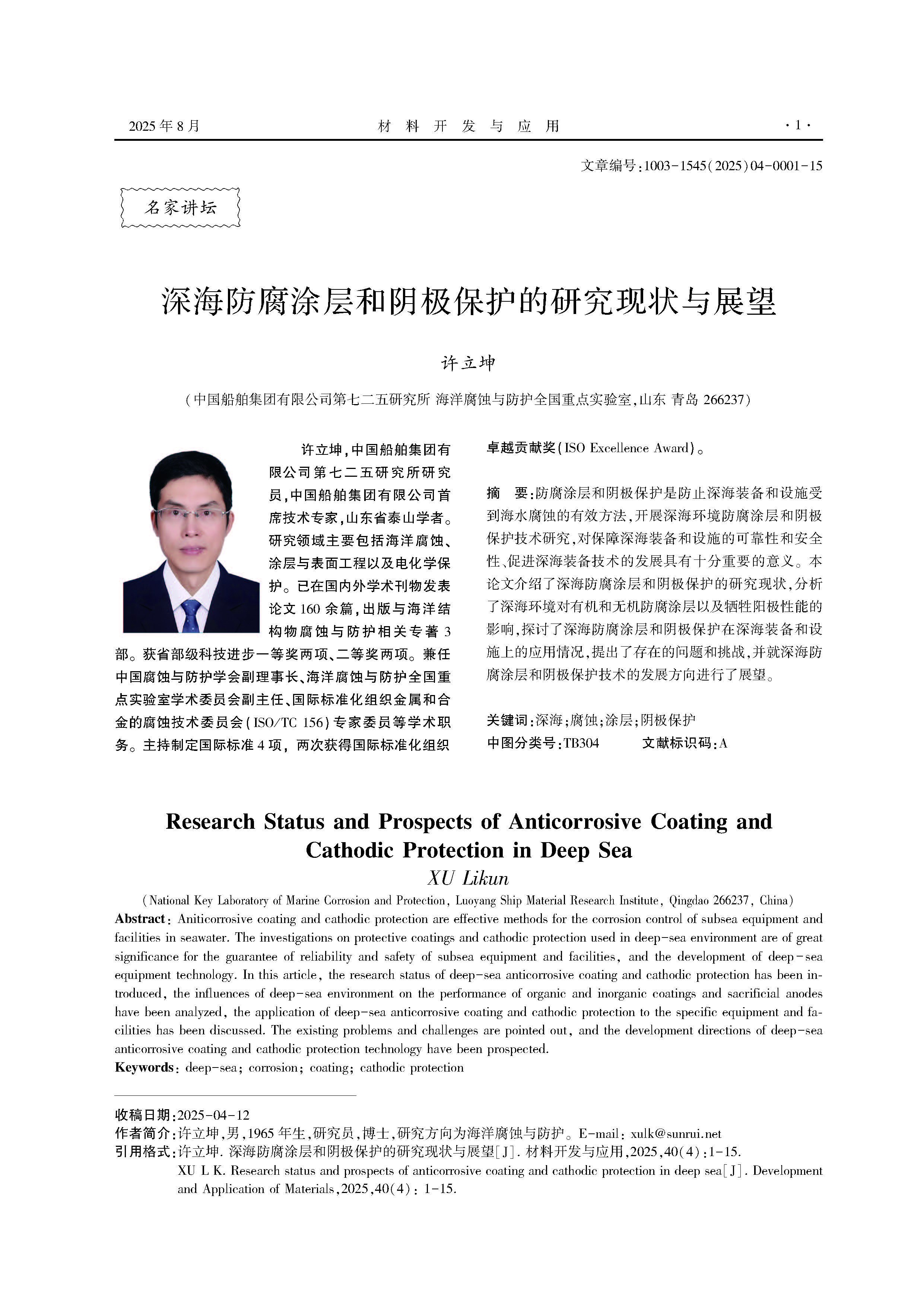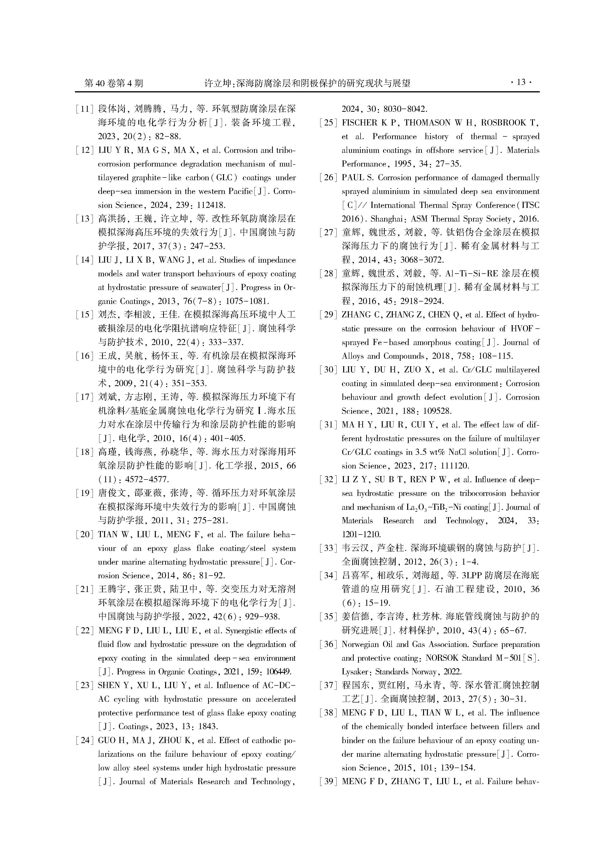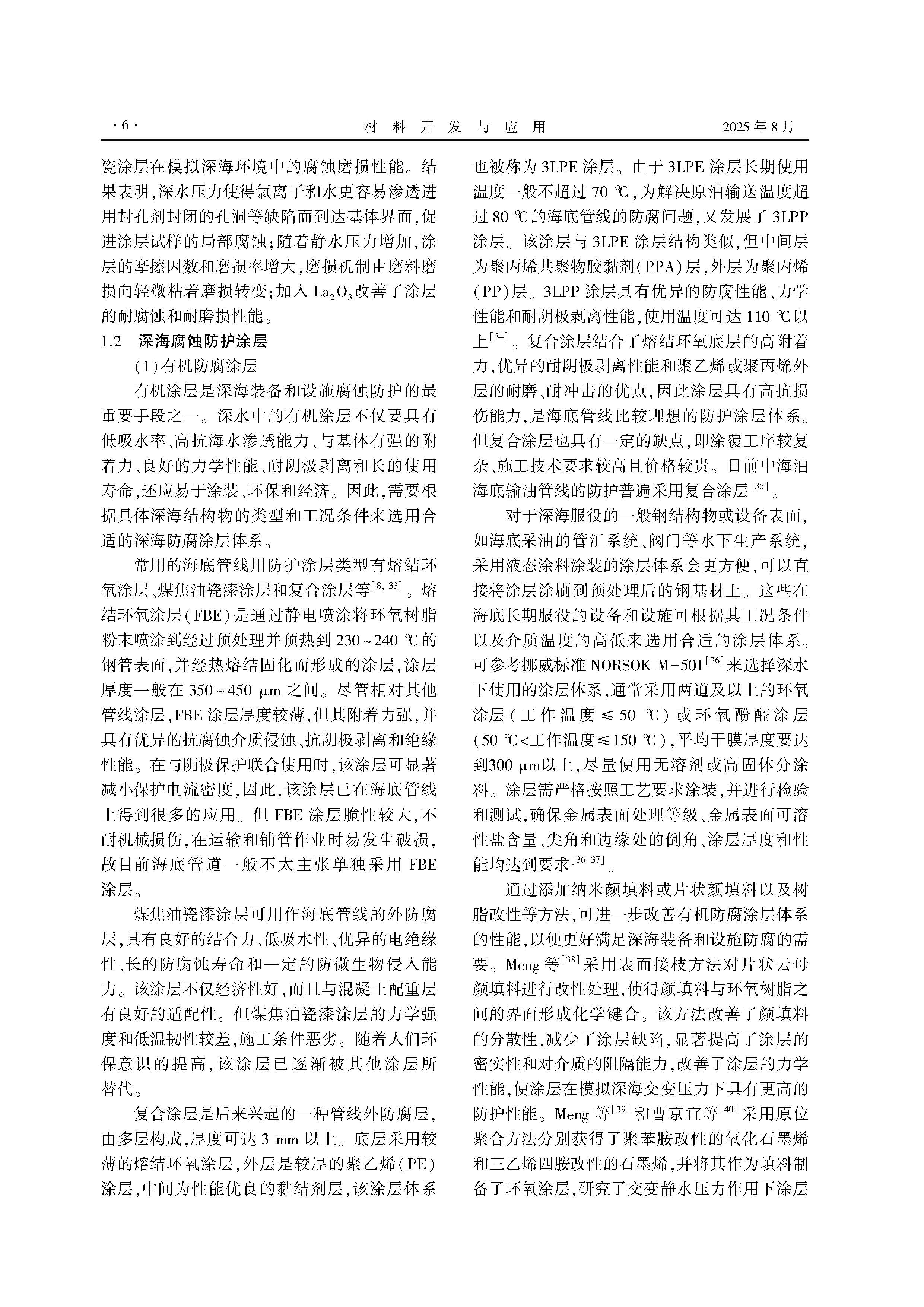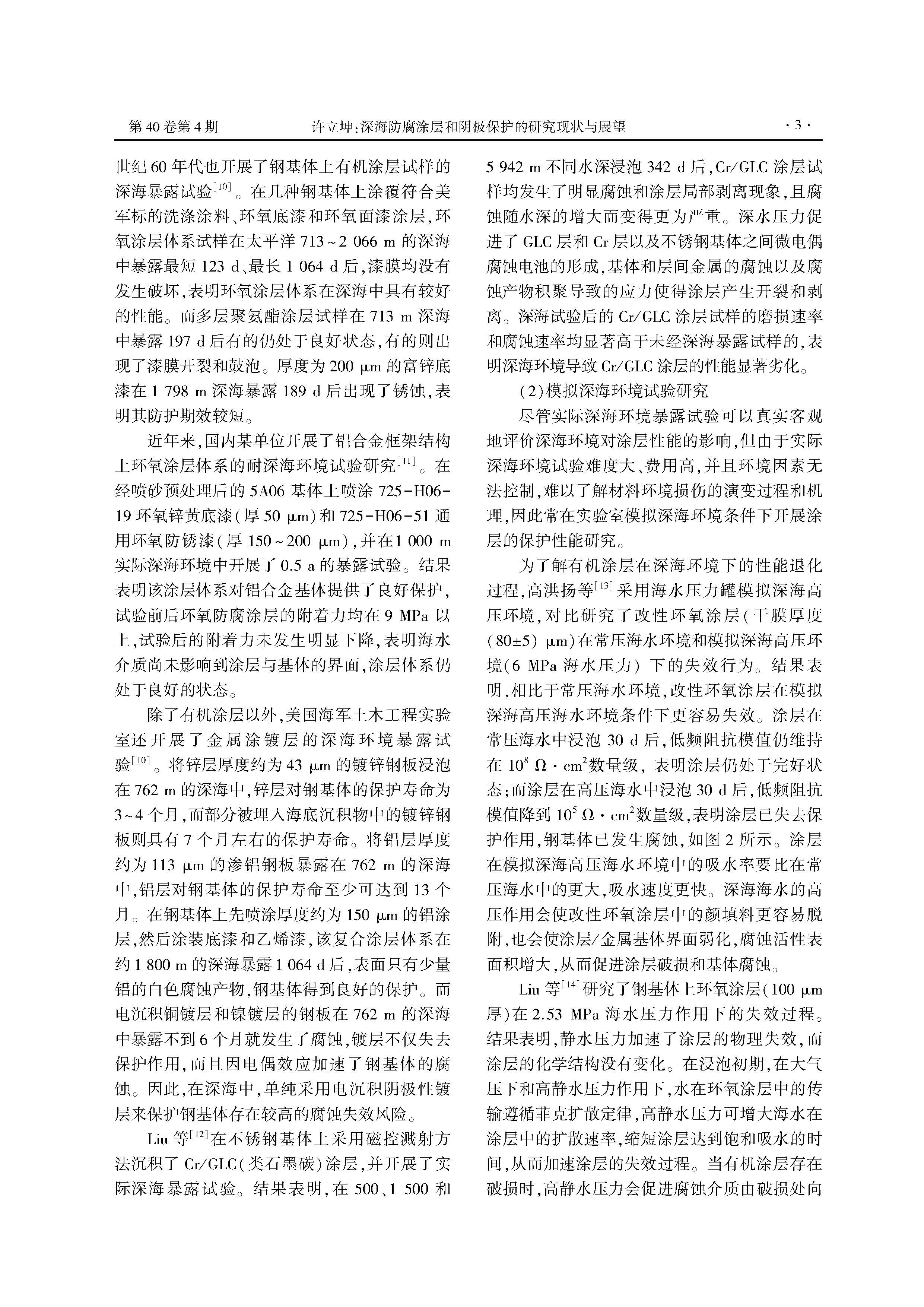 深海防腐涂层和阴极保护的研究现状与展望