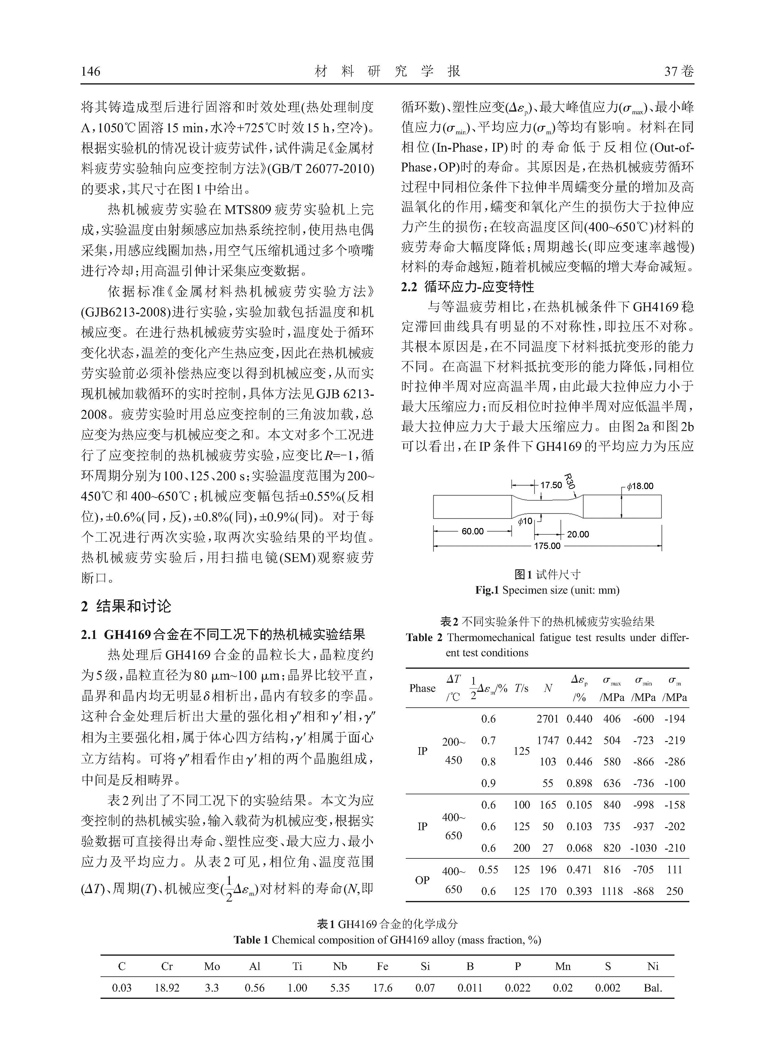 镍基高温合金GH4169的热机械疲劳行为