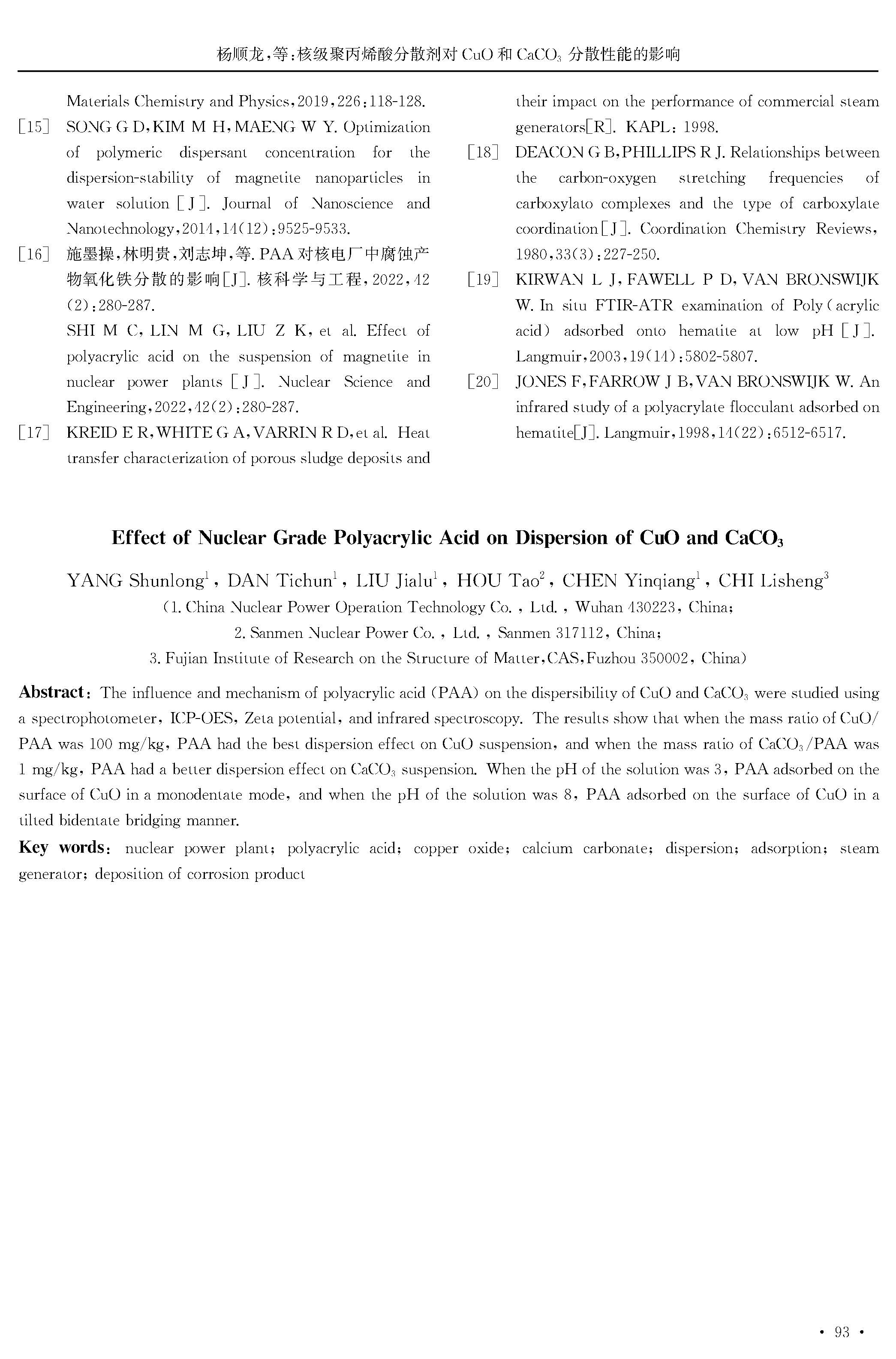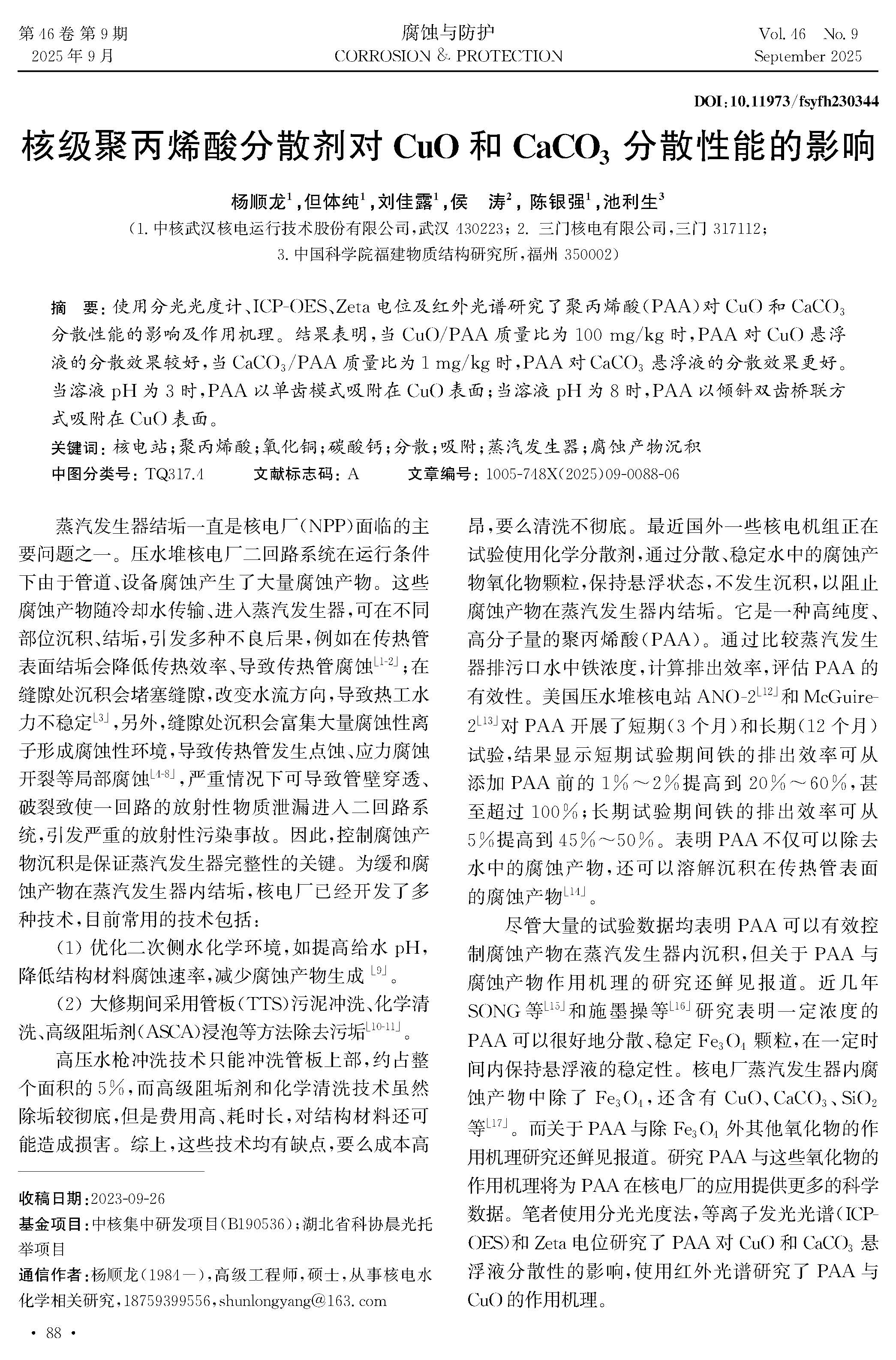 核级聚丙烯酸分散剂对CuO和CaCO3分散性能的影响