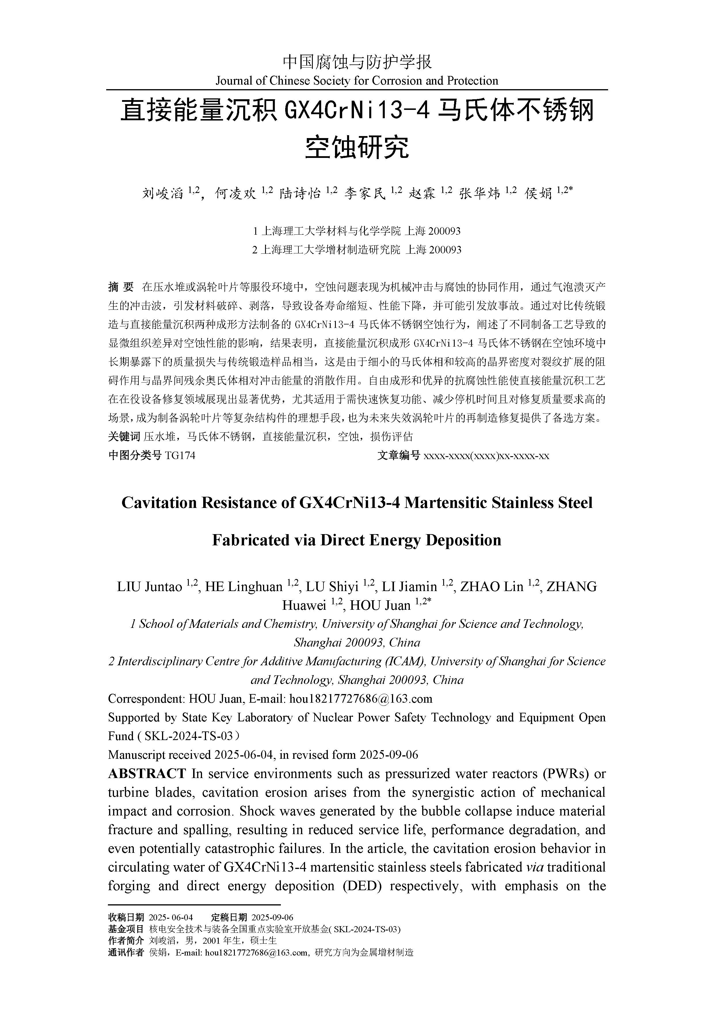 直接能量沉积GX4CrNi13-4马氏体不锈钢空蚀研究