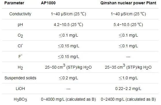 表1 压水堆机组一回路冷却剂系统水质要求