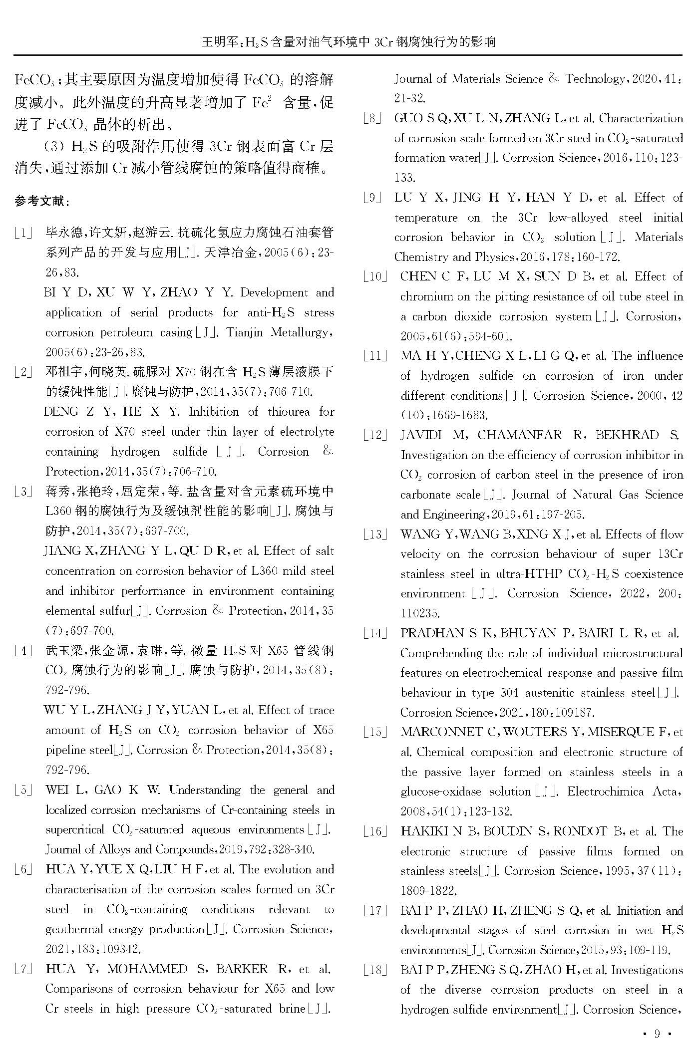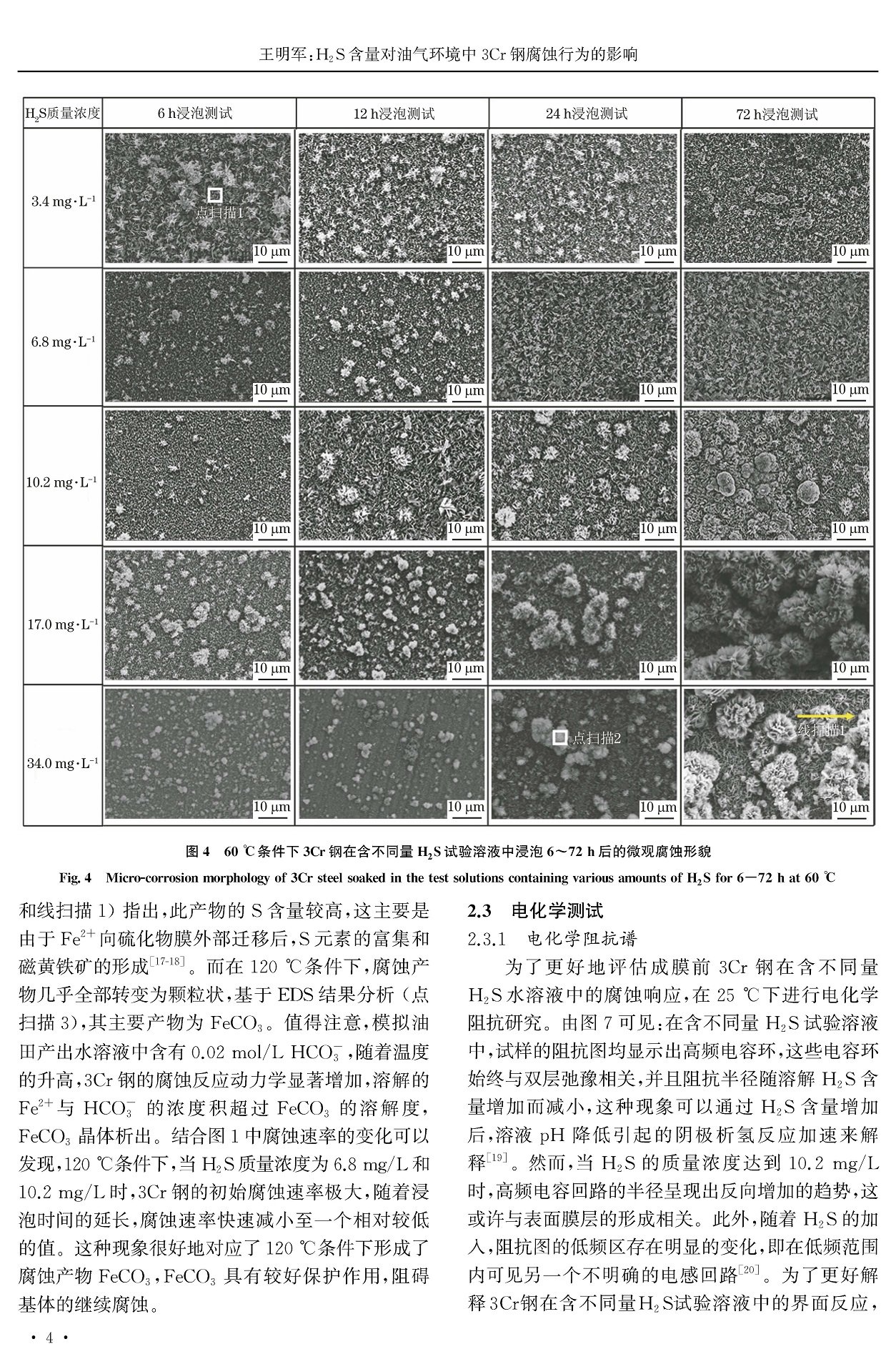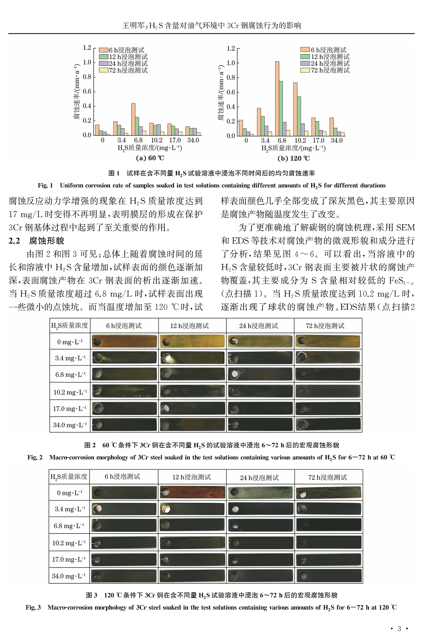 H2S含量对油气环境中3Cr钢腐蚀行为的影响