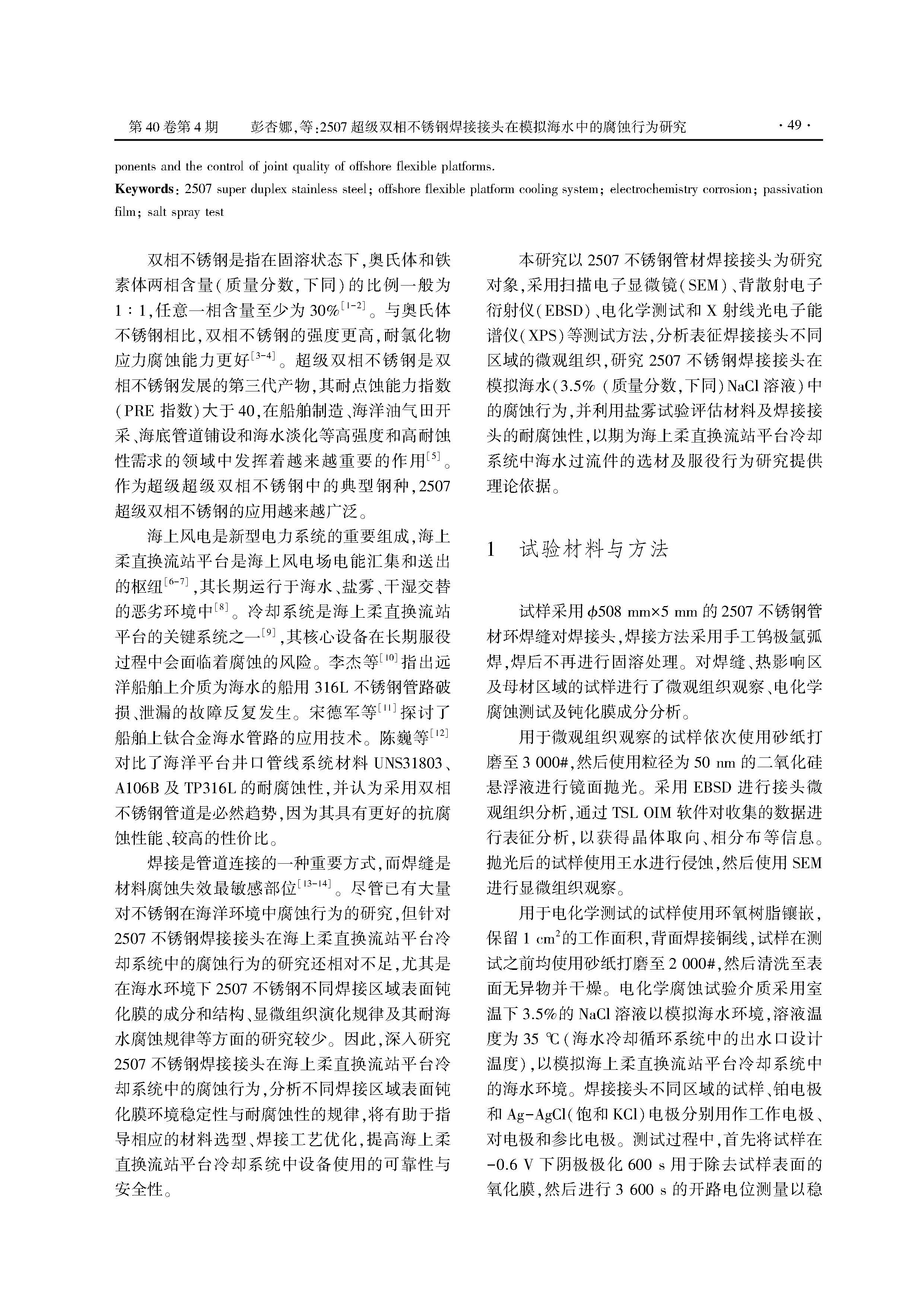 2507超级双相不锈钢焊接接头在模拟海水中的腐蚀行为研究